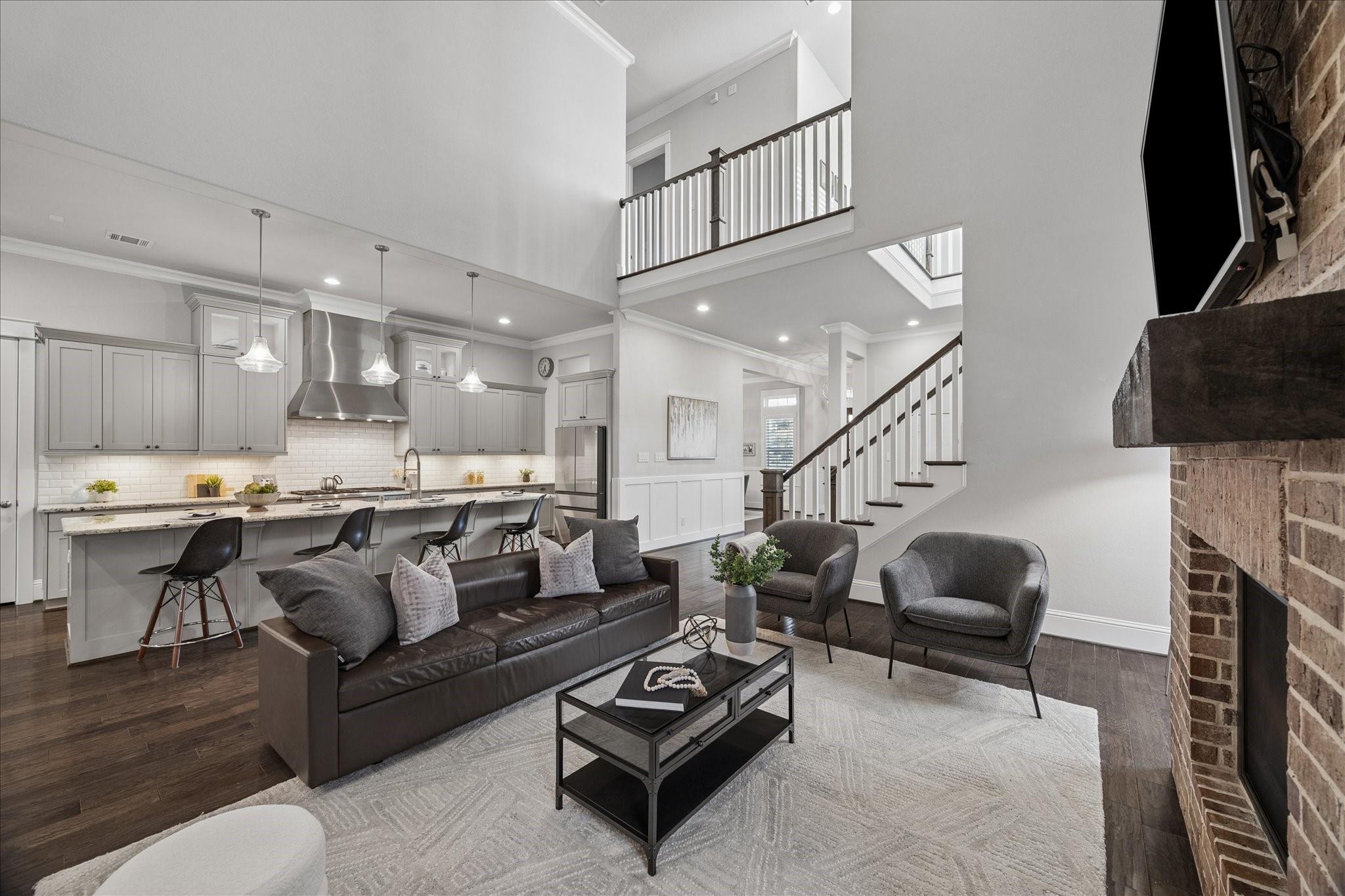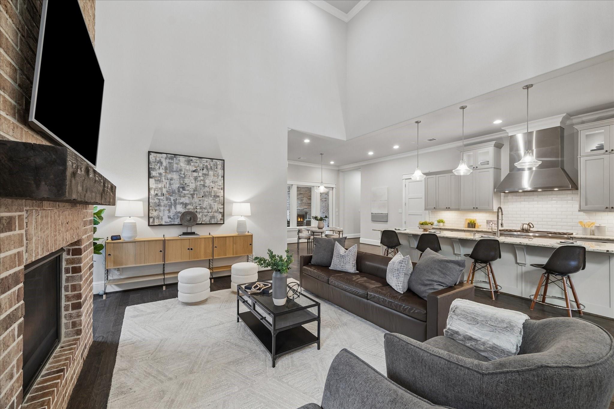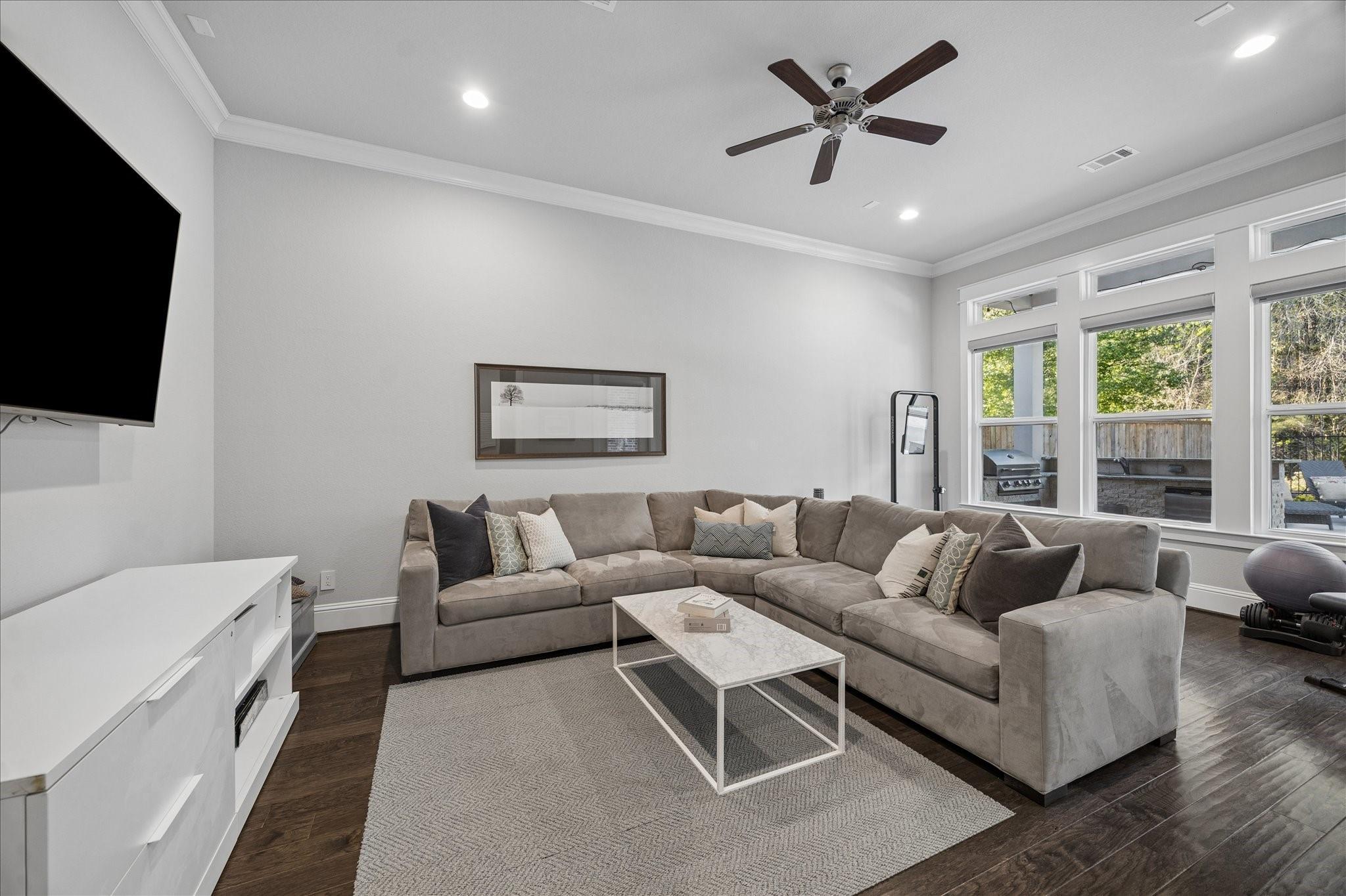 Luxury high performance custom home on a rare -acre lot with mature trees, just minutes from Market Street and The Woodlands Mall, Exceptionally low tax rate and zoned to Woodlands schools. Now under construction, this custom home features 11 ceilings on the first floor and 1011 ceilings upstairs the grand living room has an impressive 23ft ceiling. Oversized windows, and an expansive backyard. Exterior includes HDZ Timberline Pewter Gray shingles, Alabaster stucco, and Grasslands board and batten siding. Interior highlights: Seashell Long Leaf solid hardwoods, premium carpet in bedrooms, Luxe Sand matte porcelain tile, Taj Mahal quartzite kitchen countertops, light quartz baths, and Dark Galaxy granite in the primary bath. Custom white oak and painted cabinetry, brass hardware, designer brass chandeliers, and wall-mounted black plumbing fixtures. High-efficiency HVAC, ERV, and whole-home dehumidification. Viking appliance package. Exceptional design, comfort, and location.