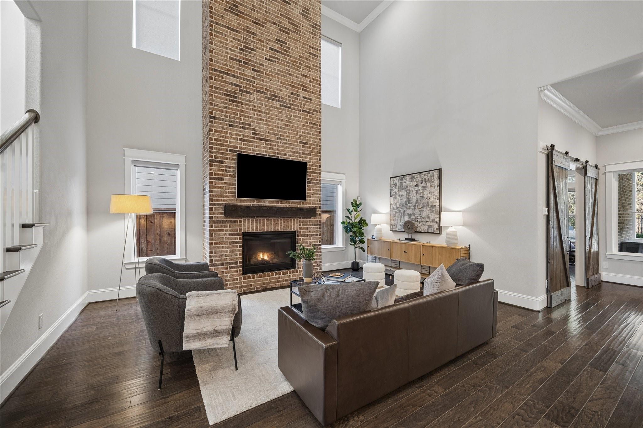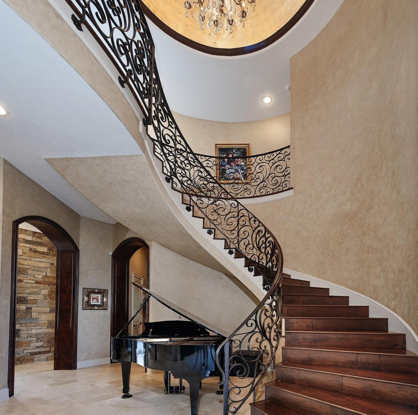 Spectacular custom home in 24-hour guard-gated Carlton Woods! Located on the largest lot on the street, this Mediterranean showstopper was designed for luxe entertaining and comfortable living! A 5-car garage ensures plenty of parking, and a spacious, brick paver driveway leads to the entrance, framed by manicured gardens.