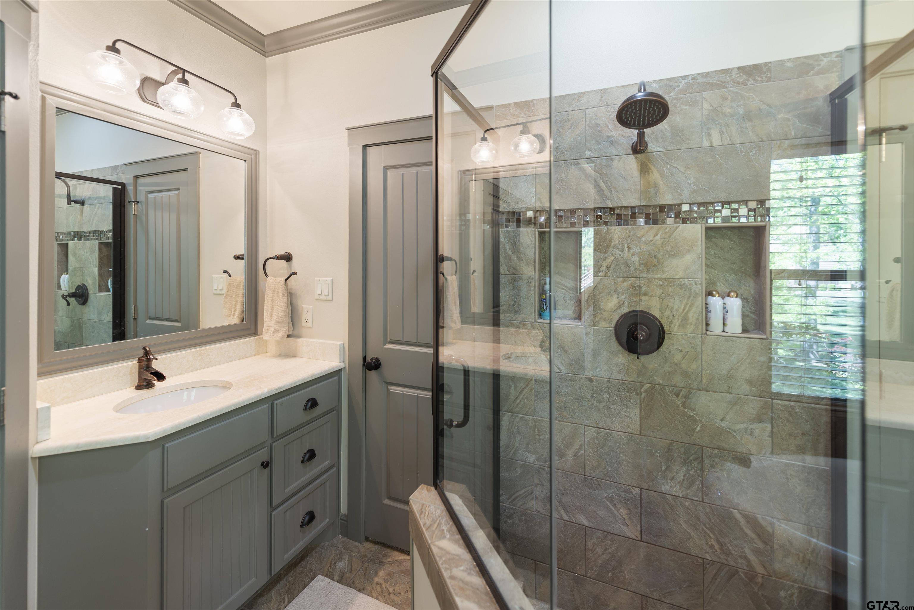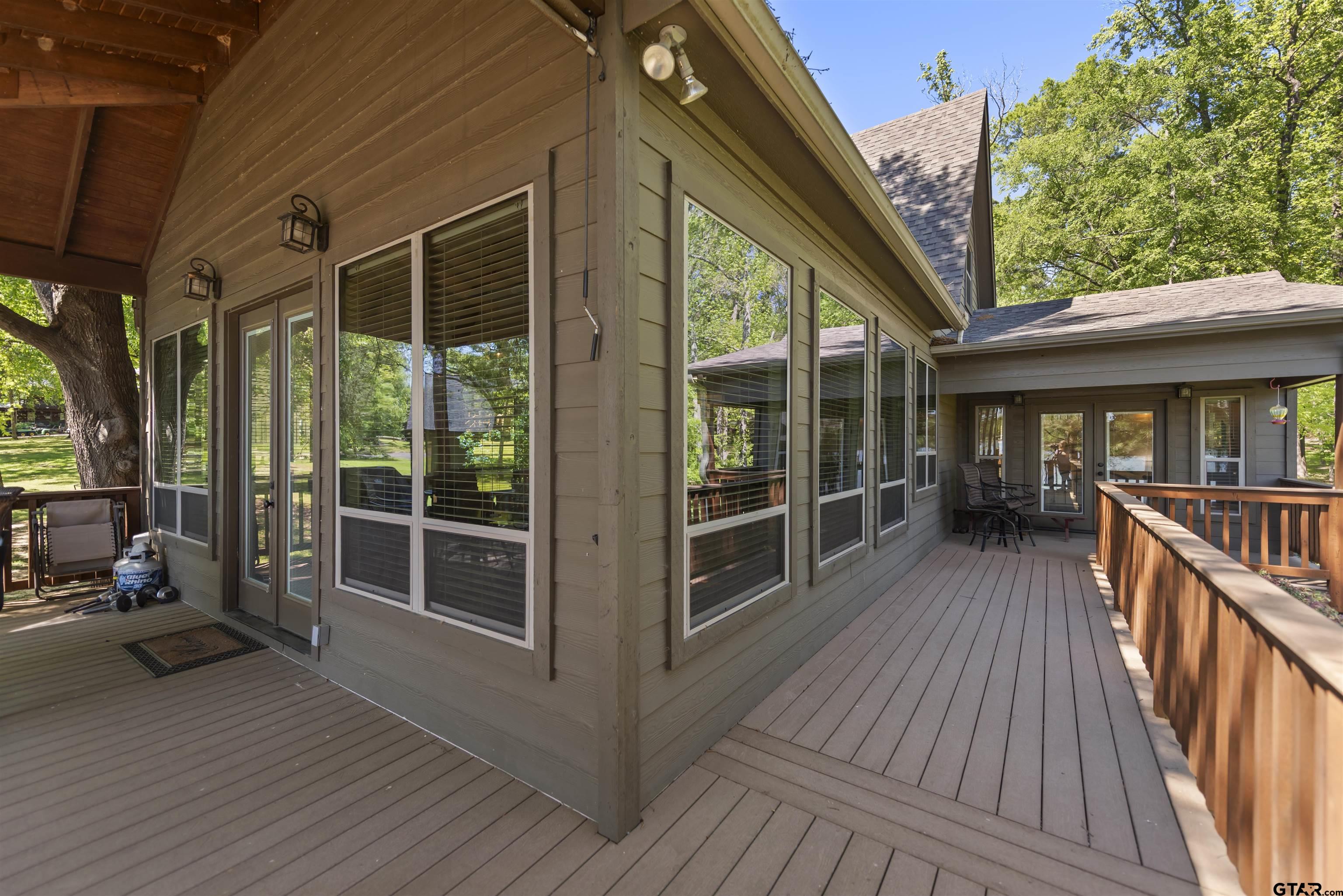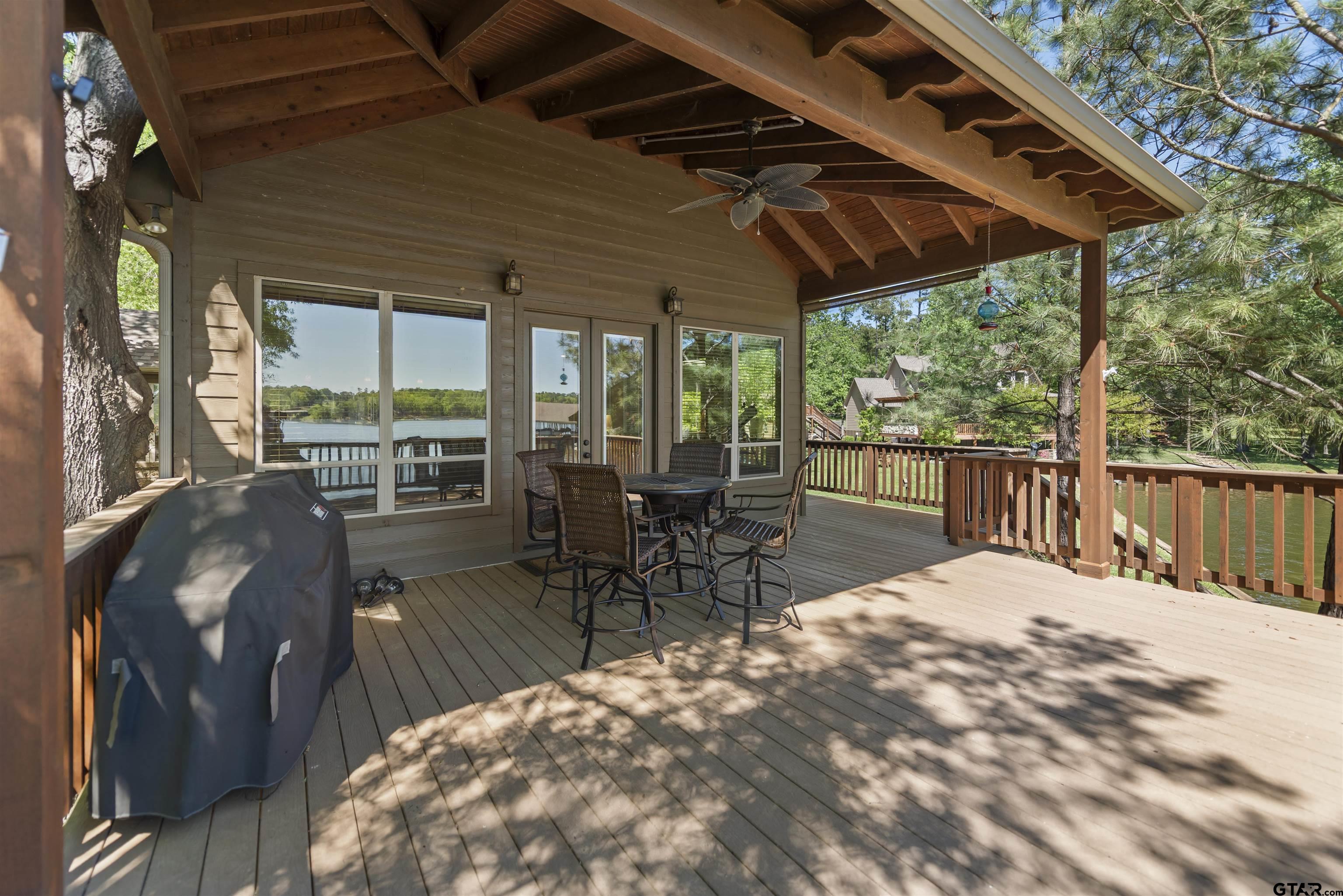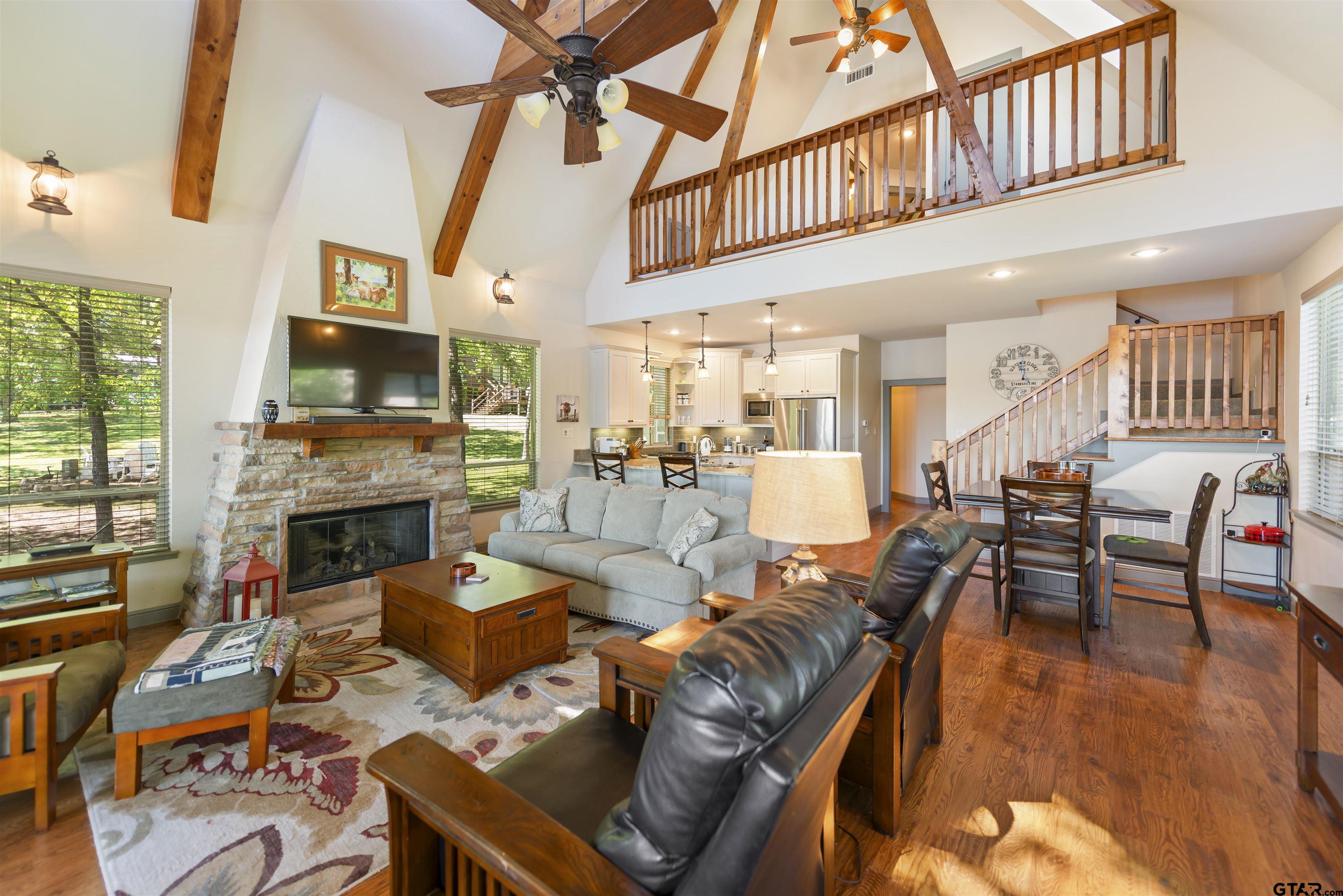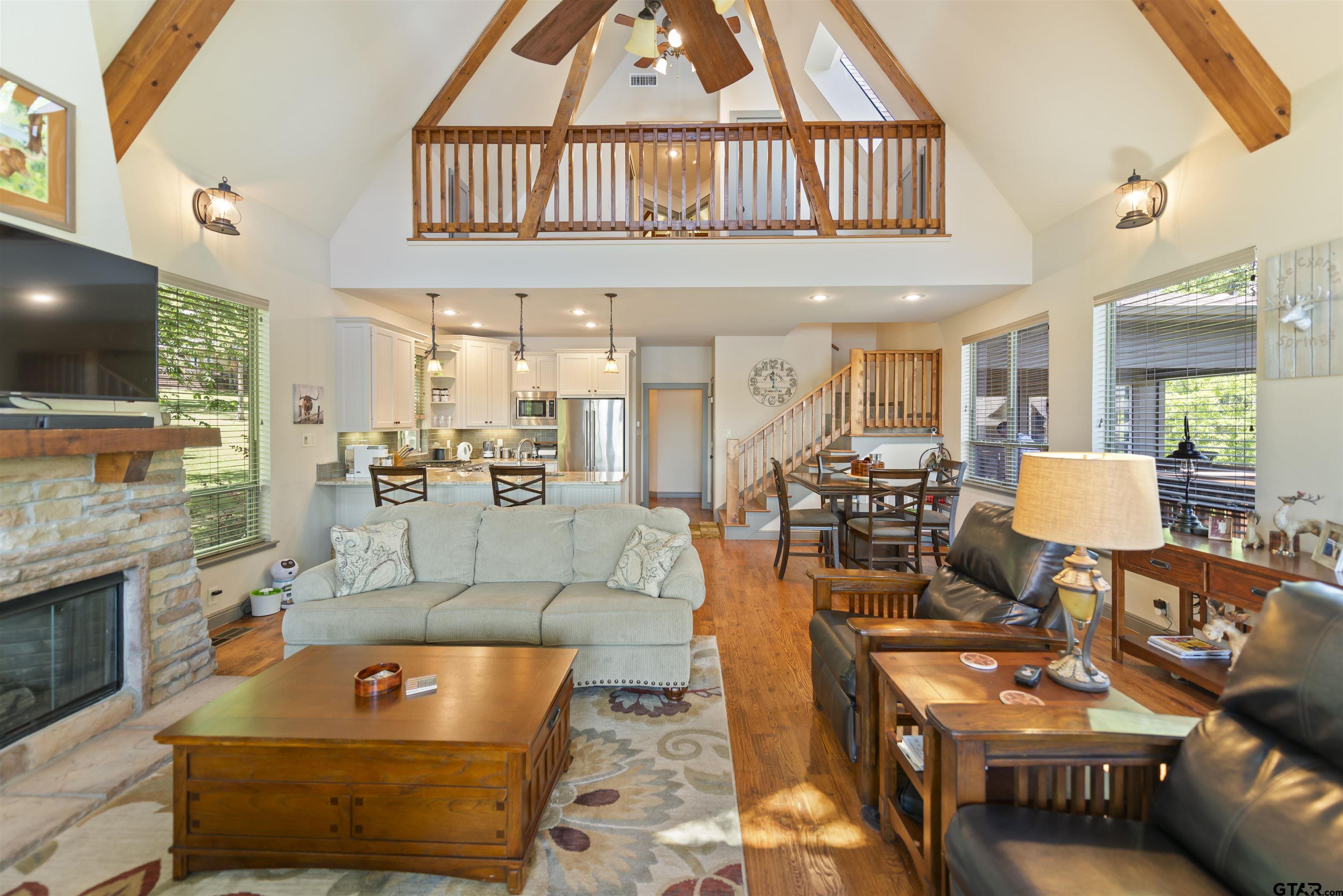 The one thing you can’t replace is the feeling of home and this one captures it from the very first look. Set on peaceful waterfront views yet only minutes from Celebration Plaza and I30 access, this property offers the RARE BALANCE of luxury, convenience, and total calm. As you step onto the oversized deck, the horizon opens up in front of you, creating a natural gathering place for morning coffee, family celebrations, and unforgettable sunsets. Inside, the layout is designed for real living. Split floor plan and open concept! The kitchen features gorgeous granite countertops, modern fixtures perfect for each setting, flowing effortlessly into the living area where custom windows bring the outdoors in and a gas-log fireplace adds warmth at the touch of a button. The primary suite feels like a getaway of its own, complete with a walk-through rainfall shower, jetted tub, and custom closet built-ins for everyday ease. Watch the news or your fav show on the Vanity Mirror TV while you get ready! This home is as smart as it is beautiful; with a Nest thermostat, WiFi-enabled garage door opener, energy-efficient LED lighting, whole-home tankless water heater, and high-speed fiber internet. A full Vivint security system with cameras and monitored fire, carbon detection provides reliable peace of mind for both owners and visiting family. Refrigerator, living-room couch, and patio TV convey, making move-in simple! The utility room offers a convenient drop zone, and the oversized fourth bedroom adapts easily to an office, playroom, media space, or home gym. Outdoors, the upper deck sets the stage for hosting, while the lower patio is ideal for game days, grilling, or quiet afternoons by the water. A generous workshop keeps tools, toys, and lake gear organized and out of sight. Homes with this combination of scenery, comfort, and longevity rarely become available. This is a place built for gathering, relaxing, and creating memories a home that welcomes every season of life!