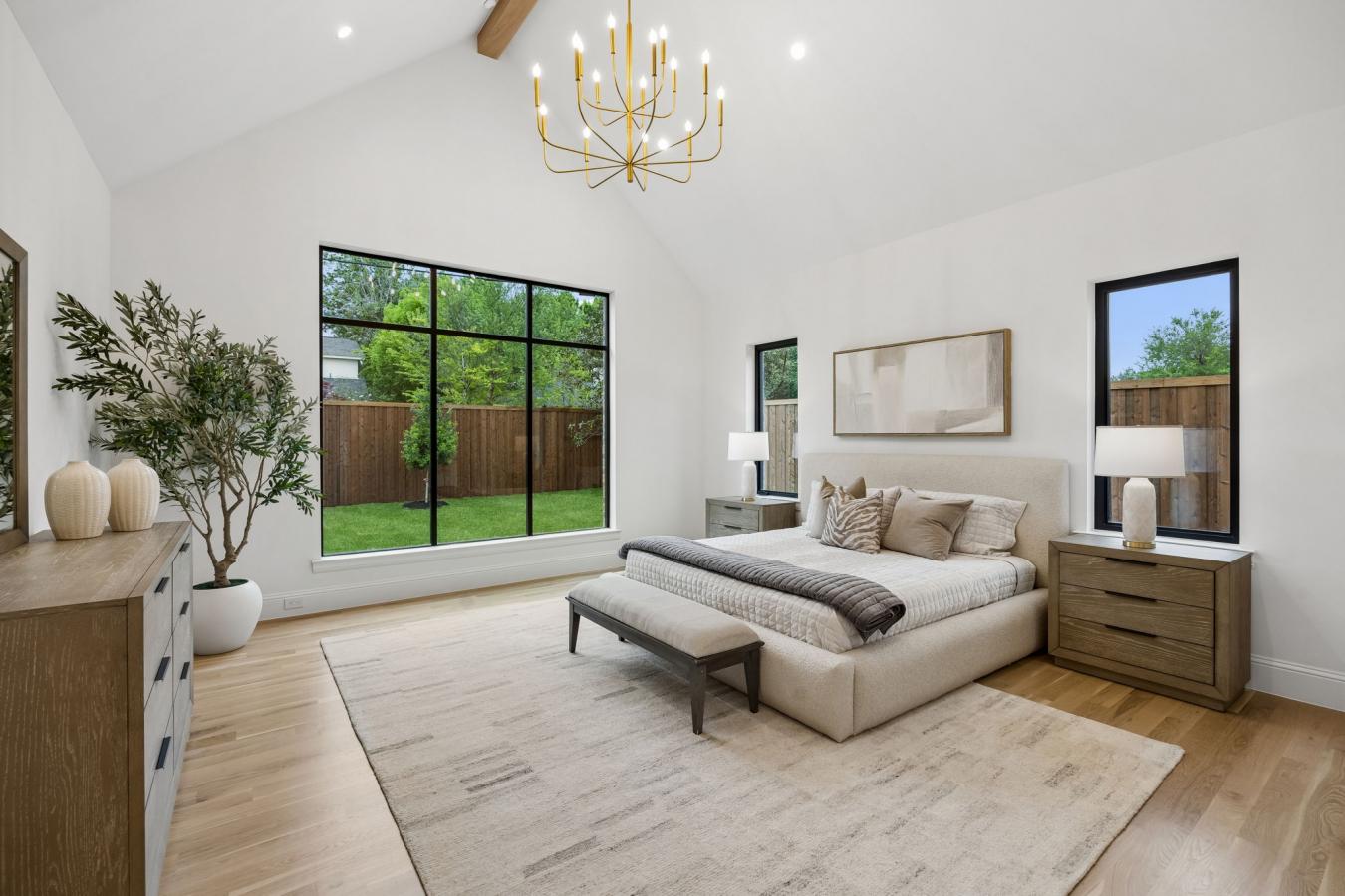 The GREY MANSION in Preston Hollow is a fully turfed modern 7bed, 6 bath masterpiece! The 1st level hosts the Primary Suite with a resort-style bath, massive his-hers closets, and a Junior ensuite. The Great Room features a crystal rock fireplace, twin cascading chandeliers illuminate the pool oasis, and Chefs kitchen as the homes centerpiece.