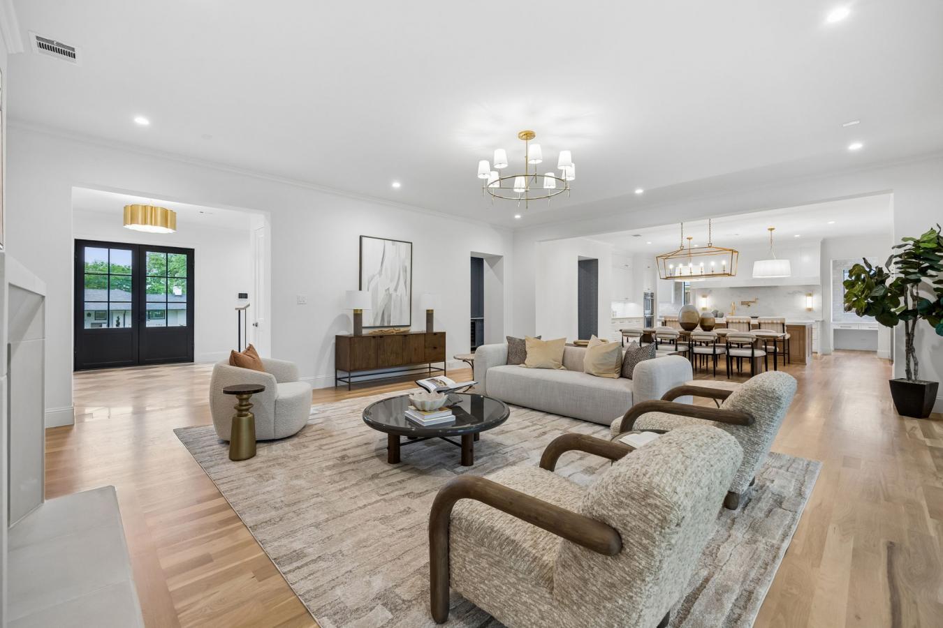 Stunning fully remodeled 4/3.5 mid-century ranch located just minutes from White Rock Lake and Trails and will not last long! This gorgeous sparkling 4-bedroom, 3.5-bath home in sought-after Merriman Park sits in a lush, tree-lined neighborhood between Lakewood and Lake Highlands, with quick access to NorthPark, Downtown, and the Tollway. Completely taken to the studs and re-imagined this home is the perfect mix of style, space and design. The modern open-concept layout features hardwood floors, gas fireplace, designer finishes, stainless steel appliances, spa-like bathrooms, dual-zone HVAC, and abundant indoor and outdoor spaces ideal for people, pets, kids, entertaining and everyday living. Step through the Modern Custom Entrance into a bright, open concept space with an oversized front window, sleek gas fireplace, custom built-in cabinetry and blinds and gleaming hardwood floors. The contemporary modern kitchen showcases a large quartz-topped island, chef-grade KitchenAid gas range, designer sink and faucet, custom soft-close cabinetry, and a built-in beverage and wine refrigerator-perfect for hosting or relaxing at home. Three (3) Spacious Primary Suites offer luxurious spa-inspired bathrooms with designer tilework, frameless showers, tankless water heating, oversized soaking tub, and walk-in closets. A fully equipped home office features an oversized custom-built-in modern wood desk, and additional amenities include an additional half bath and a dedicated laundry room. A large beautifully landscaped yard with sprinkler system includes lush green grass, mature trees, shrubs, covered patio with 2 outdoor powered fans, and a bonus 1212 open-air concrete patio beneath a mature pecan tree-ideal for workouts, gatherings, or quiet moments. Additional Amenities include a dual-unit HVAC, tankless water heater, updated plumbing, upgraded electrical systems, new interior and exterior doors, upgraded fixtures, upgraded lighting, and energy-efficient windows-creating a fresh, modern feel throughout. Modern dual-covered (2) multi-purpose carports on the back with secure gated access can accommodate multiple large vehicles, offering flexibility for parking, dining, pets, kids, exercise, and entertainment. Equipped with mounted fans, sunshades, and outdoor lighting, the carport area enhances year-round usability and ambiance. Additional amenities include a secure built-in climate controlled storage space for equipment, tools, sporting goods, bikes, coolers and more. Professionally installed Exterior lighting wraps the home in a clean, modern aesthetic while boosting evening ambiance and security. Durable metal gutters, gutter guards, and an in-ground drainage system ensure dependable all-weather protection and usage. Located a block from highly regarded L.L. Hotchkiss Elementary School and steps from the White Rock Lake and Trails, this home offers convenient access to parks, recreation, dining, shopping, with easy connections to Lakewood, Downtown, US-75 and the Tollway.