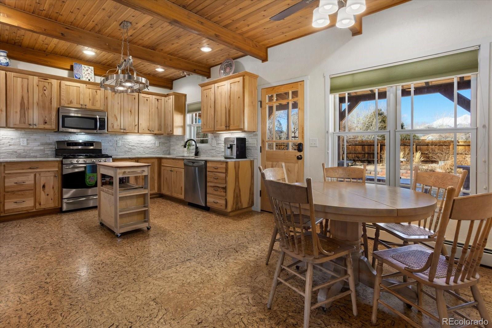 Welcome to this beautifully updated 3-bedroom, 2-bath home set on an oversized .36-acre lot in Little River Ranch, offering exceptional outdoor living, mature landscaping, and stunning views of the Collegiate Peaks. The light-filled kitchen features quartz countertops, new stone backsplash, cork flooring, an oversized pantry, kitchen island & dining area.