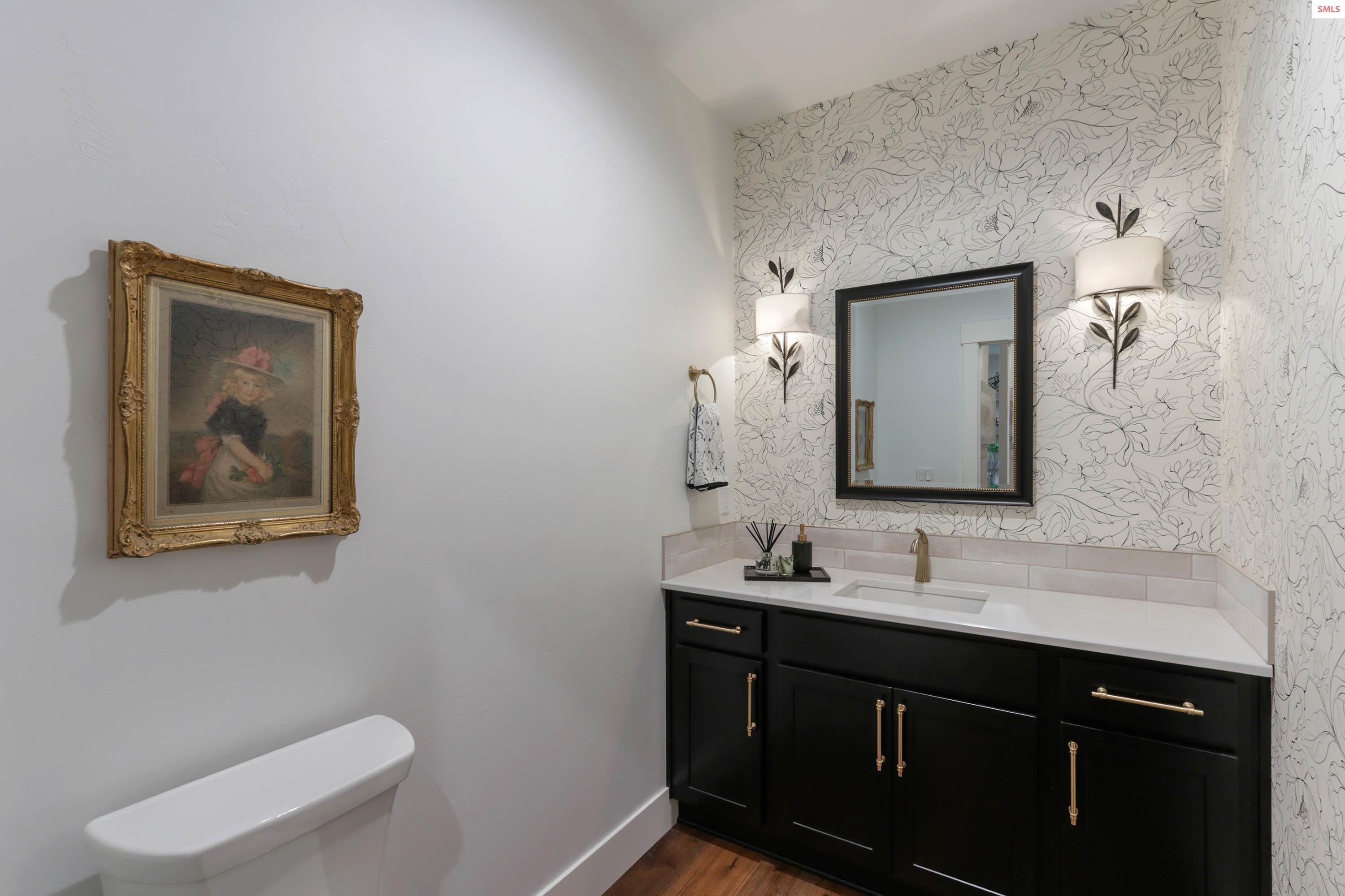 Experience exceptional design and superior craftsmanship in this stunning Dover Bay residence, perfectly positioned just one tier from the water. A spacious, level entry with unique rock wall opens to an airy floor plan with vaulted ceilings, a custom fireplace, and views of the Pend Oreille.
