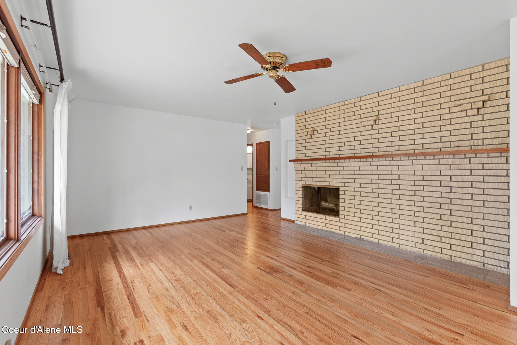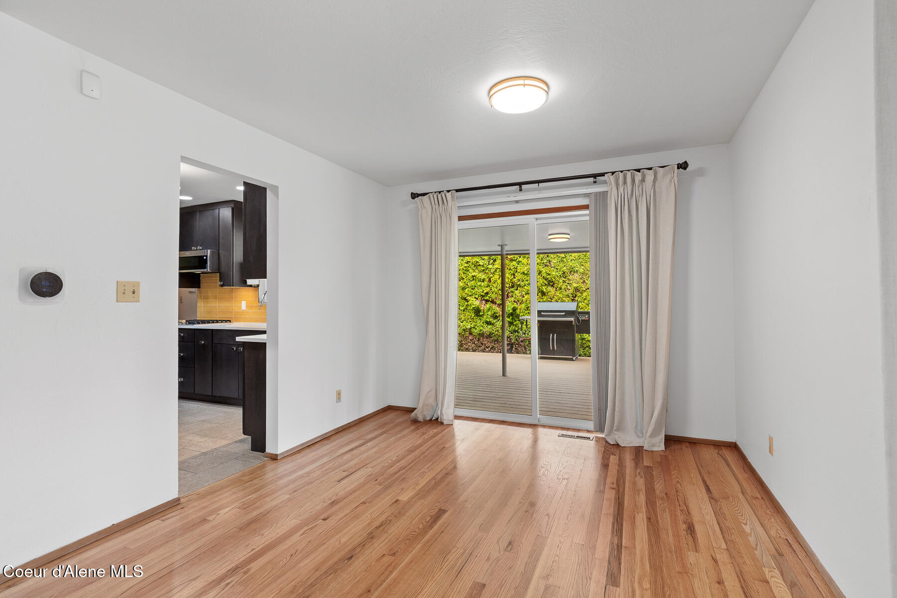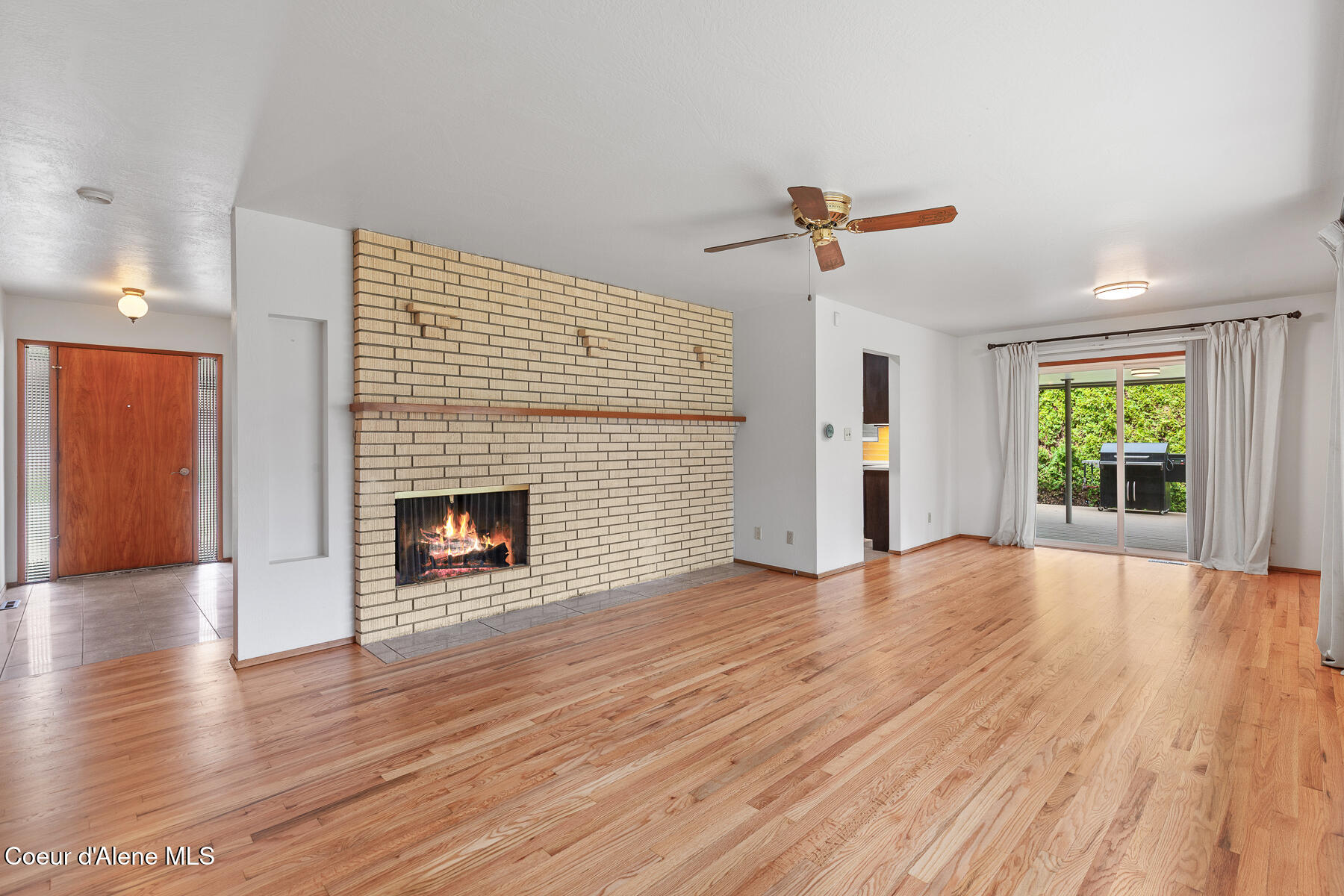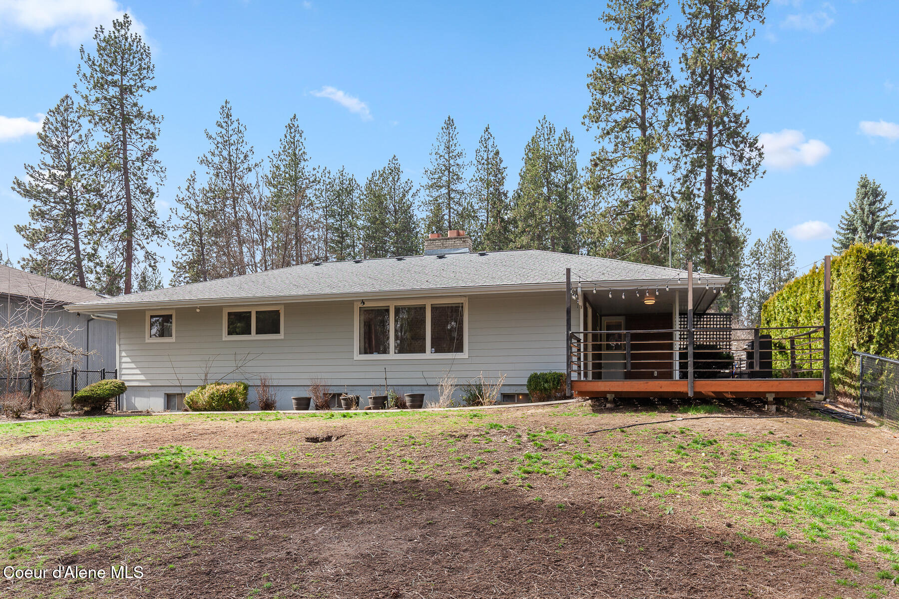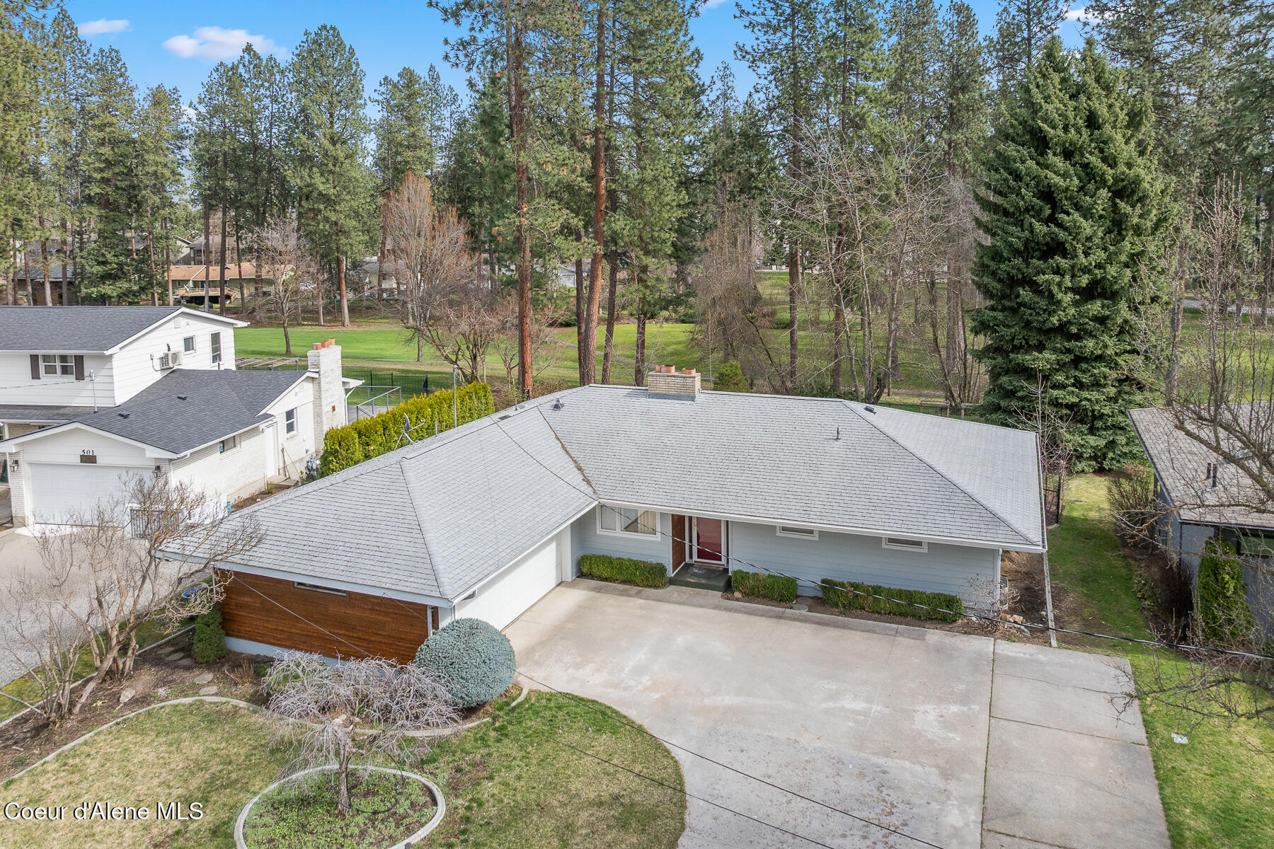 This stunning Mid-Century Modern home is located on the quiet loop of Vista Dr., overlooking the 12th green on the Coeur d'Alene Public Golf Course. Just a short distance to the KROC Center and the CDA Public clubhouse and driving range, this location has limited traffic, which is perfect for families or those looking for a peaceful setting that is still close to everything Coeur d'Alene has to offer. The single-level home on a basement showcases traditional character and thoughtful updates. With two original brick fireplaces and refinished, original hardwood floors, this 1963 build is a wonderful example of the high-quality craftsmanship and design of its time. An updated kitchen with double ovens, a gas cooktop, beautiful quartz countertops, and tile floors is a focal point of the home. Other recent updates include new James Hardie Color Plus fiber cement siding with wood tone accents and a new composite deck in the backyard. The home offers 3 bedrooms and 2.5 bathrooms on the main level, a comfortable living room with large picture windows to the backyard and golf course. The property has mature trees including a massive Cherry tree in the center of the backyard. The mostly unfinished basement is an open canvas offering lots of potential for 3 more bedrooms, another bathroom, a man cave or game room, or other possible uses. The golf course access is perfect for the avid golfer or someone looking for a home with no rear neighbors. Close to the Centennial Trail for walking or biking to Riverstone and downtown Coeur d'Alene, shopping, restaurants, medical care, and freeway access, this is arguably one of the best locations to live in Coeur d'Alene if you are looking for a low traffic neighborhood with close proximity to local amenities.