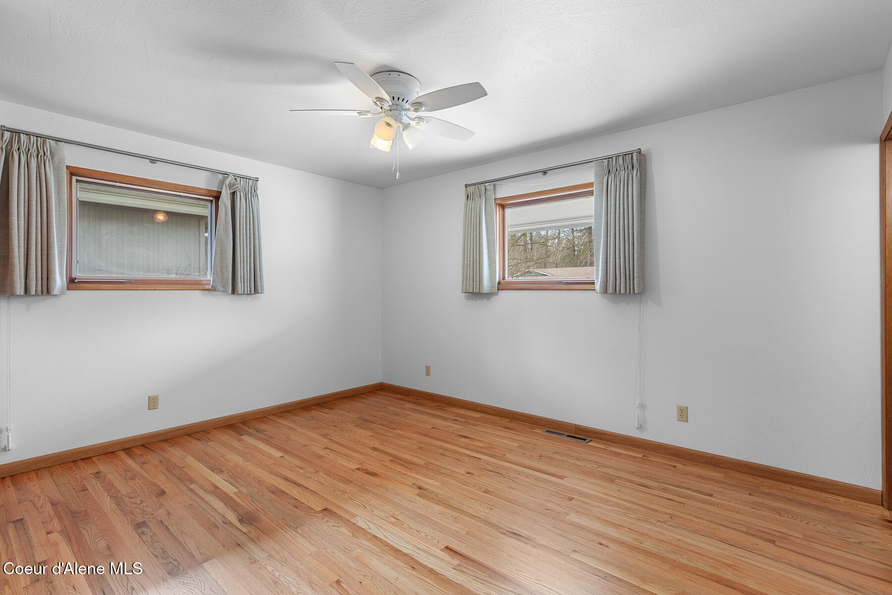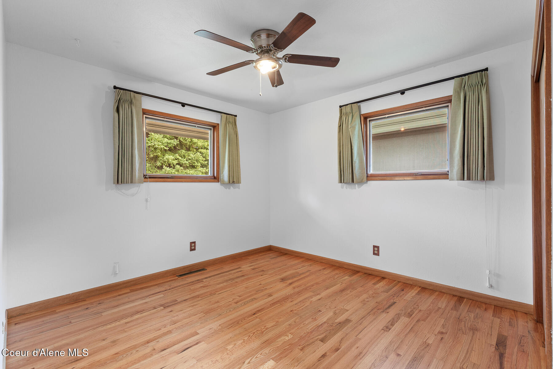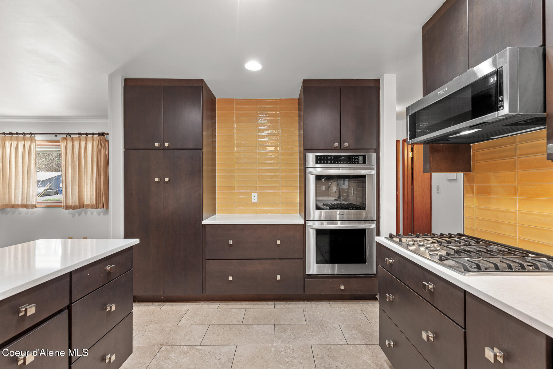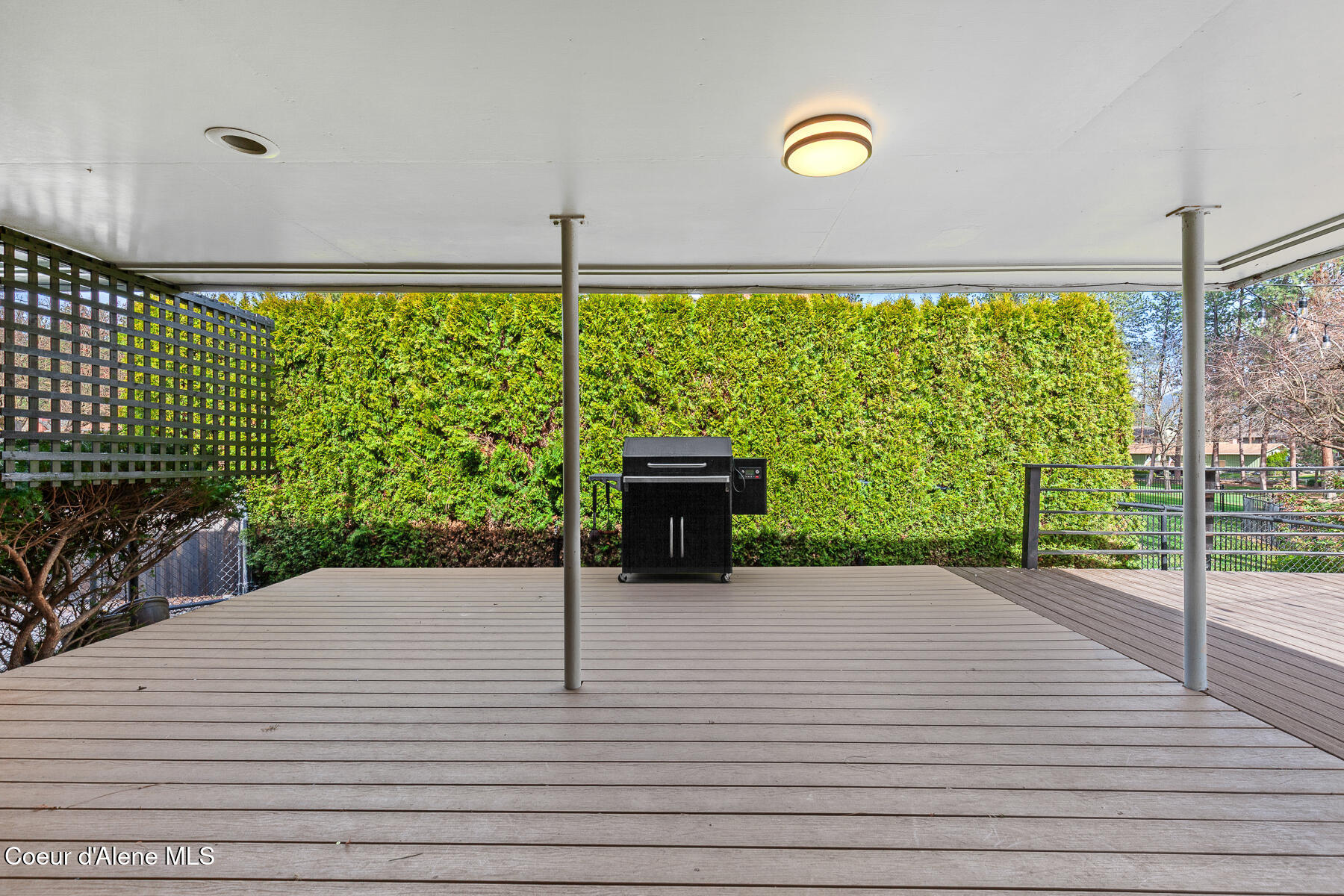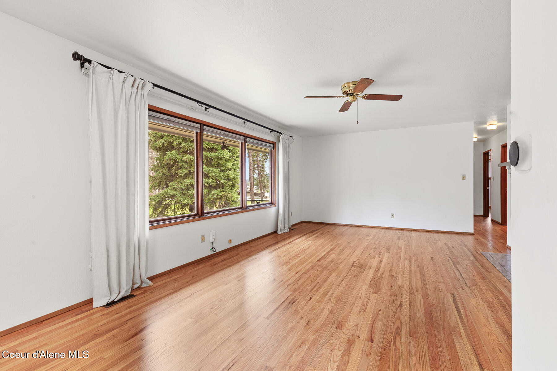 This stunning Mid-Century Modern home is located on the quiet loop of Vista Dr., overlooking the 12th green on the Coeur d'Alene Public Golf Course. Just a short distance to the KROC Center and the CDA Public clubhouse and driving range, this location has limited traffic, which is perfect for families or those looking for a peaceful setting that is still close to everything Coeur d'Alene has to offer. The single-level home on a basement showcases traditional character and thoughtful updates. With two original brick fireplaces and refinished, original hardwood floors, this 1963 build is a wonderful example of the high-quality craftsmanship and design of its time. An updated kitchen with double ovens, a gas cooktop, beautiful quartz countertops, and tile floors is a focal point of the home. Other recent updates include new James Hardie Color Plus fiber cement siding with wood tone accents and a new composite deck in the backyard. The home offers 3 bedrooms and 2.5 bathrooms on the main level, a comfortable living room with large picture windows to the backyard and golf course. The property has mature trees including a massive Cherry tree in the center of the backyard. The mostly unfinished basement is an open canvas offering lots of potential for 3 more bedrooms, another bathroom, a man cave or game room, or other possible uses. The golf course access is perfect for the avid golfer or someone looking for a home with no rear neighbors. Close to the Centennial Trail for walking or biking to Riverstone and downtown Coeur d'Alene, shopping, restaurants, medical care, and freeway access, this is arguably one of the best locations to live in Coeur d'Alene if you are looking for a low traffic neighborhood with close proximity to local amenities.