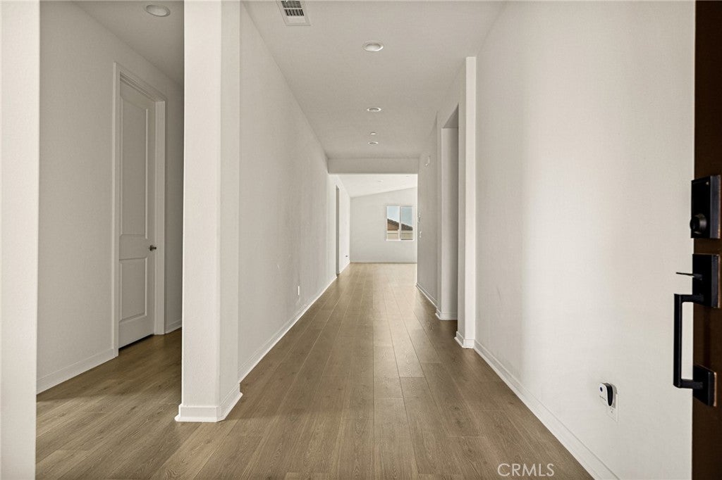 Single-story home located on a corner lot in Vista Verde at Mediterra in Highland, built in 2023 and in pristine condition. This spacious residence offers four bedrooms plus a den and three bathrooms, featuring a desirable open floorplan designed for modern living. The kitchen flows seamlessly into the family room and showcases a large center island, eat-in dining area, stainless steel appliances, and plenty of space to make it your own. The primary suite includes a walk-in closet and an ensuite bathroom with dual sinks, a separate shower, and soaking tub. The backyard is a blank canvas ready for your personal touch. Additional highlights include owned solar for energy efficiency. Nestled at the base of the foothills, the community offers amenities including a pool and park, providing both comfort and convenience.