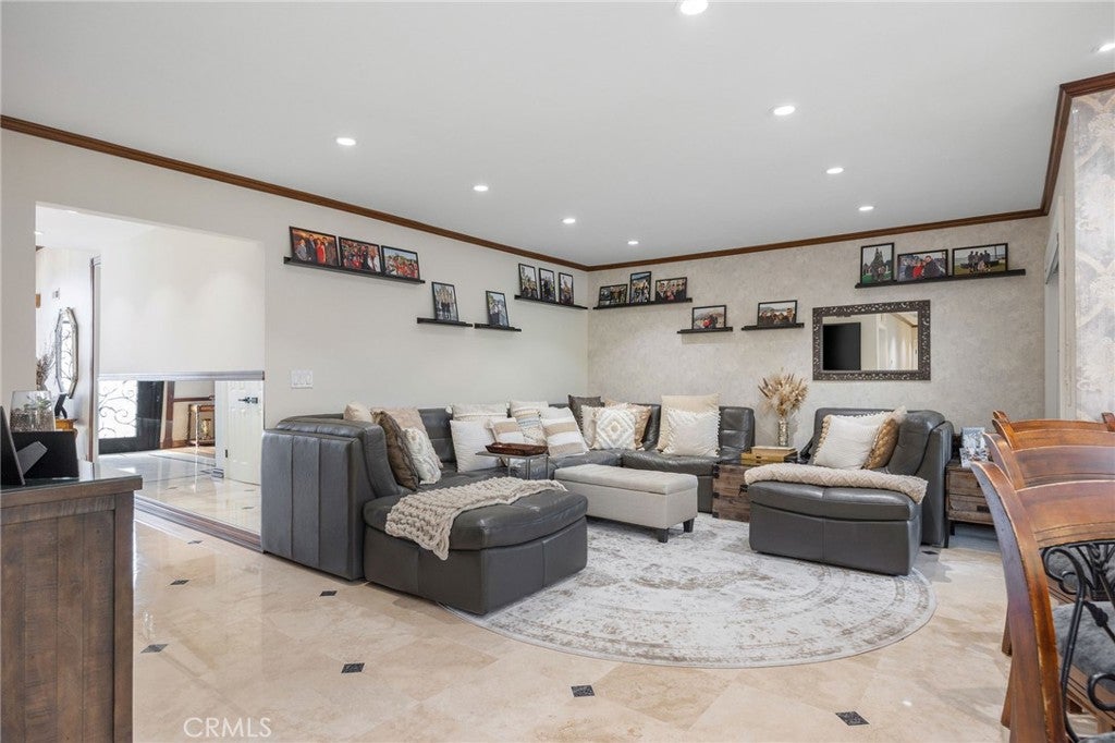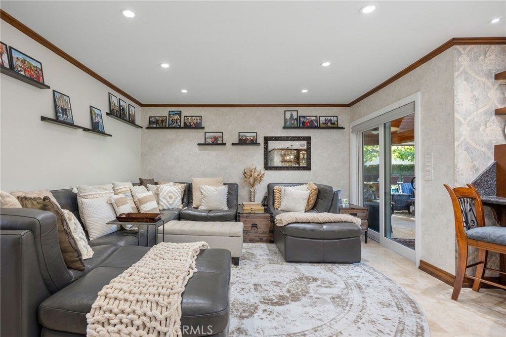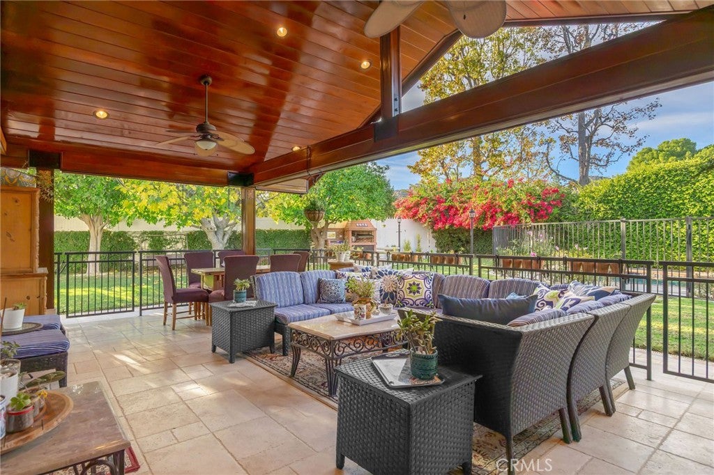 Located in the highly desirable Carriage Estates community west of Topanga, this exceptional single-story home offers the perfect blend of elevated everyday living and true entertainers appeal. Situated on a nearly half-acre, fully usable lot, properties like this...with space, privacy, and flexibilityrarely come to market.The home features a bright and open floor plan with soaring ceilings, abundant natural light, and hardwood flooring throughout. Thoughtfully upgraded with custom cabinetry throughout the home, including the kitchen, along with extensive storage and a striking double-sided fireplace, the residence blends warmth, functionality, and design. An integrated indoor and outdoor sound system enhances both daily living and entertaining.Designed with lifestyle in mind, the layout flows seamlessly to a private resort-style backyard featuring a gated pool and spa, an expansive covered patio spanning the entire rear of the home, and a built-in barbecue with refrigerator;ideal for hosting, outdoor dining, and enjoying warm California evenings under mature shade trees with stunning sunset views of the Chatsworth Hills.A true highlight of the property is the fully finished four-car garage, complete with high-quality built-in cabinetry. This versatile space offers incredible flexibility...perfect for a car enthusiast, workshop, home gym, creative studio, or additional lounge space.The spacious primary suite offers a large walk-in closet and a beautifully updated bathroom, while the additional bedrooms are generously sized and complemented by tastefully renovated bathrooms. Additional features include potential RV access and a setting that delivers both privacy and scenic beauty.Lovingly maintained and offered for the first time in over 20 years, this is a rare opportunity to own a standout home in one of Chatsworths most sought-after neighborhoods.
