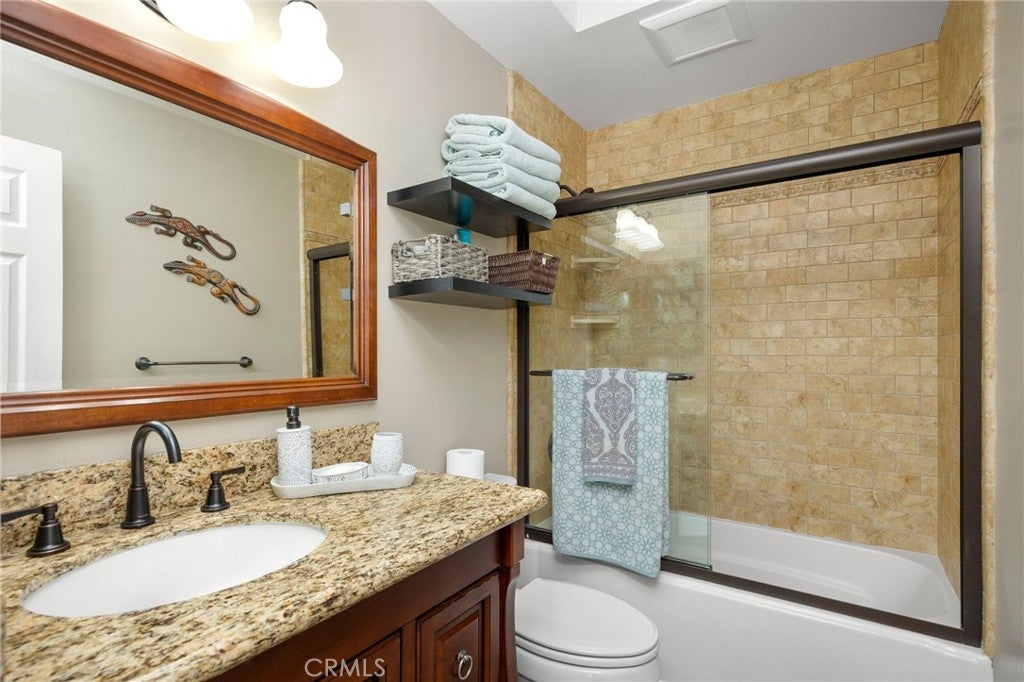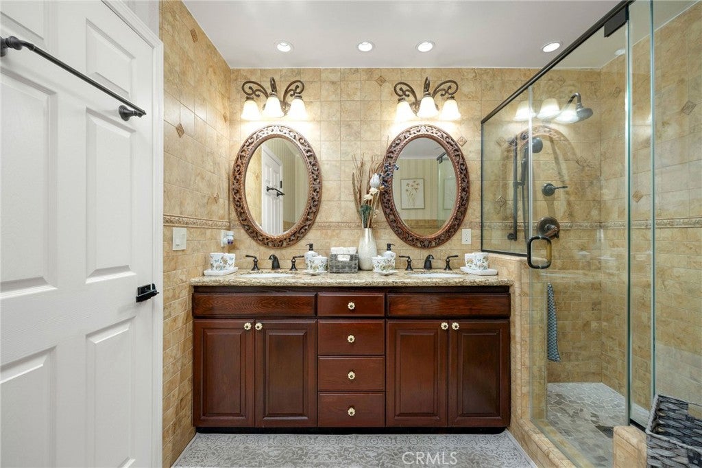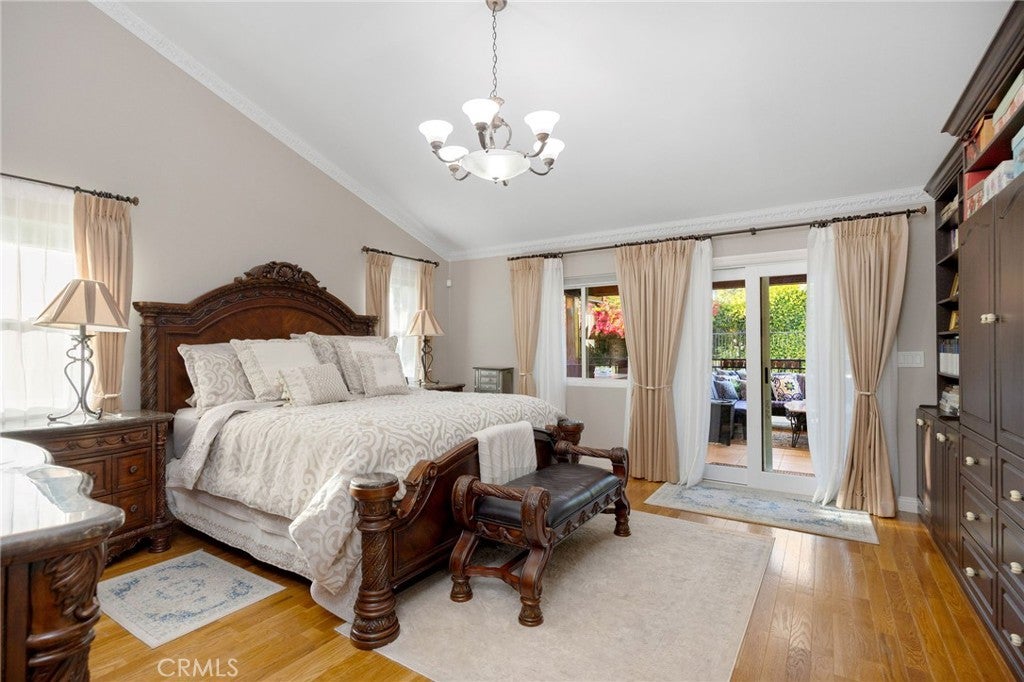 Stunning, contemporary estate located in a prestigious Chatsworth neighborhood. This home showcases 5 bedrooms and 5.5 bathrooms with over 5,400 sq ft of living space on a 17,499 sq ft flat lot. Featuring architectural details throughout, soaring two story ceilings, recessed lighting, high end tile flooring, impressive step-down living room with two story ceilings and windows overlooking the ample back yard. Plenty of natural light throughout. The remodeled kitchen boasts top of the line Viking appliances, a center island with bar seating and a spacious eating area that connects to the bright and airy family room, which features high ceilings and large windows with plantation shutters. A large office, powder room, bedroom, bathroom and dedicated laundry room complete the downstairs. Access the upstairs via two separate stairways at opposite sides for maximum convenience. The master bedroom showcases vaulted ceilings, and a separate seating area/office. A two-sided fireplace separates the bedroom and the large, spa-like bathroom that features a soaking tub, a glass enclosed shower, double sink vanity and two walk in closets. In addition, there are three other bedrooms each one with its own ensuite bathroom. Outside you will find a large patio with a pergola covered seating area, mature trees and plants and plenty of space to use as you desire. Limited access makes this a quiet neighborhood. Close to trails, bike paths, supermarkets, restaurants, coffee shops and all the conveniences that the Vineyards have to offer. Newly installed solar panels are paid off.