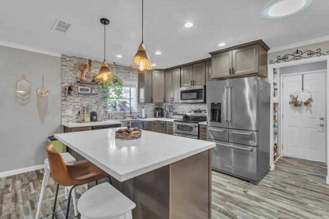 Located in the highly sought-after neighborhood of Granite Hills, this beautiful move-in ready home with a crystal clear pool offers comfort, style, and thoughtful upgrades throughout. The home features a fully remodeled kitchen and both bathrooms have been tastefully updated. Recent improvements include fresh paint and upgraded flooring throughout, creating a clean and modern feel. Enjoy added convenience with an alkaline water filtration system, complete with a dedicated front faucet. Natural light fills the home through two large skylights and four sun tunnels, enhancing the bright and airy atmosphere. Additional features include a newer pool vacuum, two storage sheds on the side of the home, and a spacious driveway with parking for up to three cars. Ideally located near shopping, restaurants, and schools, this Granite Hills gem offers both comfort and convenience in one of El Cajon's most desirable neighborhoods.