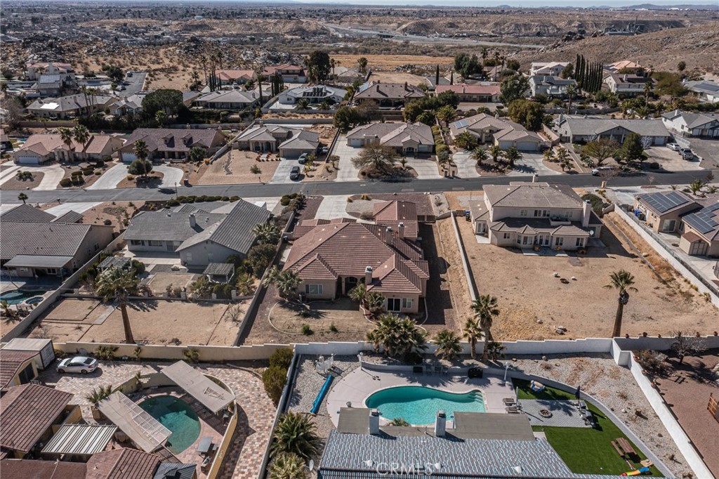 Modern Desert Oasis with Income Potential & Luxury Upgrades! Welcome to your private retreat in the heart of Apple Valley! This beautifully upgraded single-family home offers resort-style living on a fully fenced 1-acre lot, packed with features and flexibility. The main home boasts 3 spacious bedrooms and 2 luxurious bathrooms, adorned with gleaming marble floors throughout, a custom fireplace, and a modern kitchen with quartz countertops—perfect for entertaining or everyday living. Step outside to your personal paradise: a sparkling pool with waterfall and slide, soothing jacuzzi , lush landscaping, and a covered patio designed for year-round enjoyment. Love to host or need space for extended family? Two studio ADUs offer endless potential—one permitted and one unpermitted—each with its own A/C unit. One even includes a private entrance , carport , and septic tank. With over 150,000 in upgrades, including a built-in speaker system, security cameras throughout, and RV access and parking, this home checks every box. The lot is uniquely divided by vinyl fencing—ideal for privacy, pets, or future expansion. Don’t miss this rare opportunity to own a stunning home with income potential and room to grow. Schedule your private tour today and experience Apple Valley living at its finest!