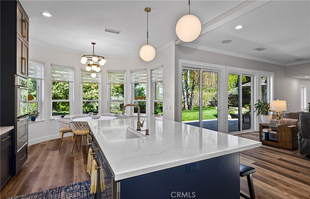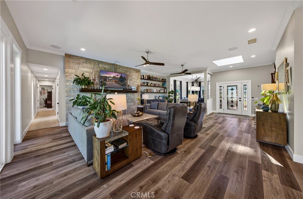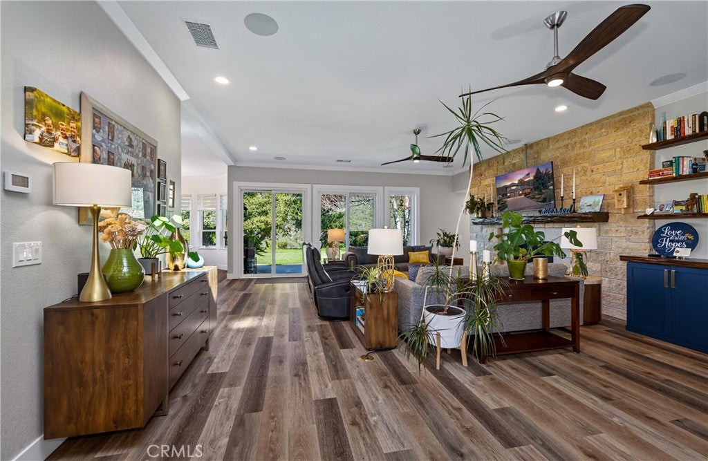 Beautifully updated single-story home on a quiet street in desirable upper Yucaipa. The inviting living room with cozy fireplace flows into the open eat-in kitchen and enclosed patio/sunroom, creating a bright and functional layout. The kitchen features freshly painted cabinetry, modern appliances, and sleek countertops.