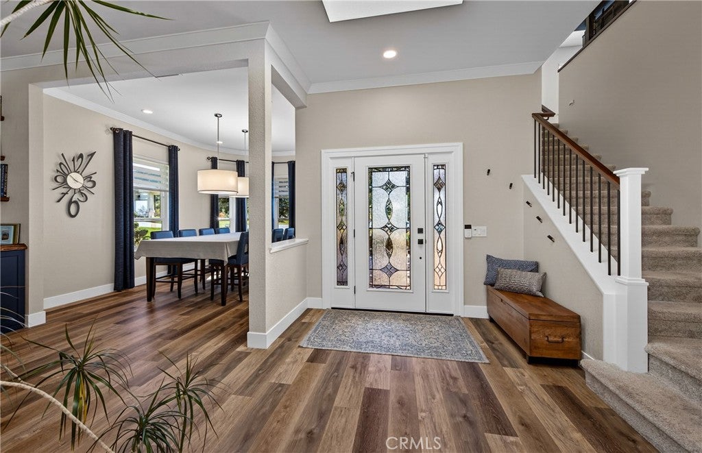 Welcome to this BEAUTIFULLY UPDATED HOME ideally situated on a corner lot and on a CUL-DE-SAC with NO HOA. With high ceilings and abundant natural light, the home offers a bright and inviting atmosphere from the moment you step inside. The main level features both a living room with high ceilings and a family room, connected by a striking see-through fireplace that creates warmth and character throughout the space. The kitchen has quartz countertops and a refrigerator that stays with the property if needed. Downstairs a guest bathroom, indoor laundry room, and direct access to the two-car garage add everyday convenience. Upstairs, all bedrooms are thoughtfully located, including the spacious primary suite with a double-door entry tucked down the hall. The primary bath suite offers dual sinks, large mirrors, and generous counter and cabinet space. The upstairs guest bathroom between the two guest rooms has been beautifully updated with a new deep tub and classic white subway tile shower. The upstairs hallway provides a large linen closet and boasts an amazing view of the downstairs living room. Step outside to the backyard with a patio cover, and orange and peach fruit trees, providing a great setting for relaxing, entertaining, or enjoying the outdoors. The back yard has a gas hookup for a fire pit and the water heater is less than a year old. Positioned perfectly to take in Yucaipa’s beautiful sunsets, this home offers both comfort and desirability in this cul-de-sac neighborhood.