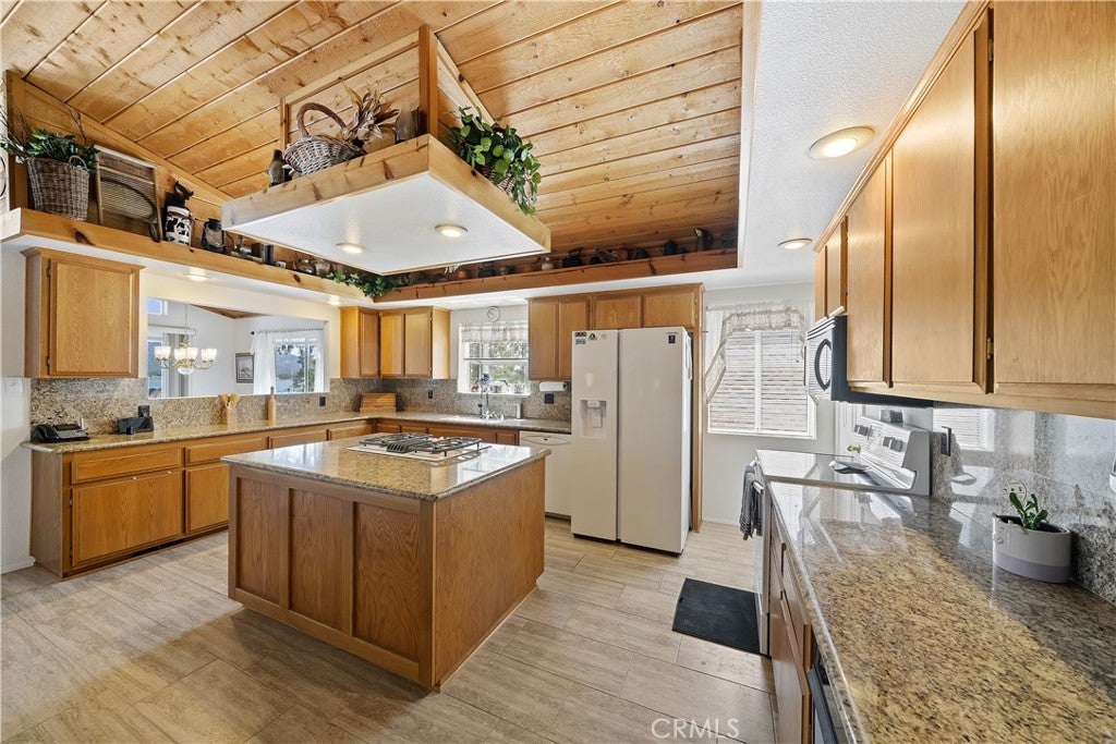 Luxurious Log Home nestled in the prominent Castle Glen Estates; this exquisite three-story log home offers the perfect blend of rustic charm and modern luxury. Featuring 5 spacious bedrooms, 3.5 bathrooms, a den, separate office, and loft, the residence is designed for comfort and versatility.The oversized gourmet kitchen is a chefs dream, equipped with JennAir stainless steel appliances and ample counter space. Stone flooring with radiant heating ensures warmth and elegance throughout. The master suite serves as a tranquil retreat, boasting an expansive shower and a generous walk-in closet.Enjoy panoramic mountain views from multi-level decks, quintessential for entertaining or peaceful relaxation. An attached three-car garage provides ample storage for vehicles and outdoor gear. Located just minutes from Big Bear Lake, ski resorts, and local dining, this home offers both seclusion and convenience.Experience mountain living at its finest in this exceptional Castle Glen property.