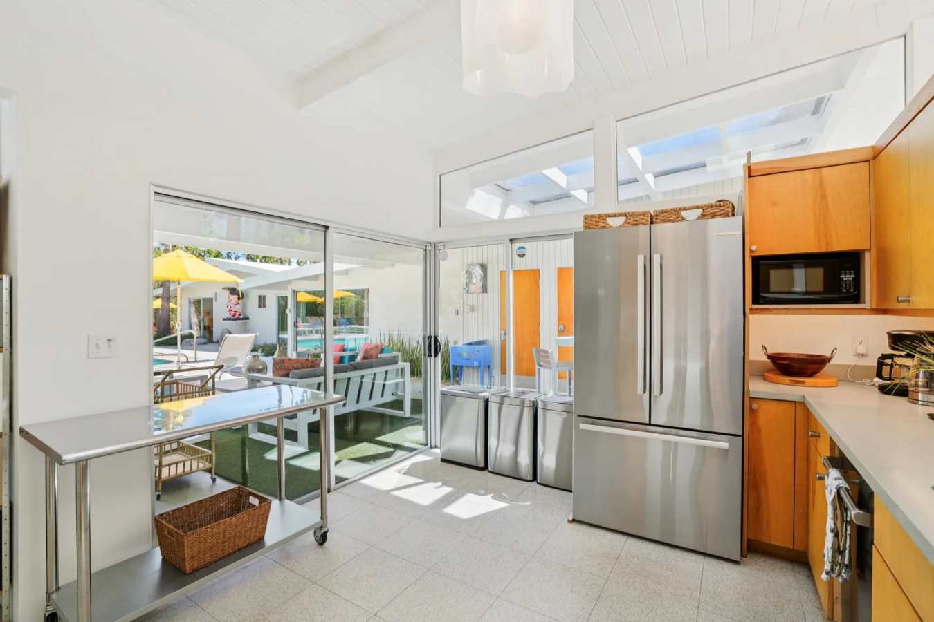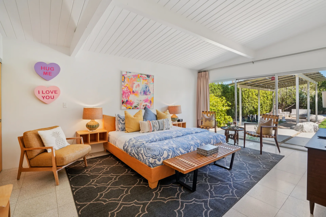 The iconic Big Boy Estate offers a rare opportunity to experience the quintessential Palm Springs lifestyle in one of the citys most celebrated architectural neighborhoods. Designed by renowned architect William Krisel and built in 1958 by the Alexander Company for Bob Wian, founder of the Bobs Big Boy burger chain, this historic mid-century property blends architectural pedigree, celebrity provenance, and effortless indoor-outdoor living. Located in the prestigious and historic Vista Las Palmas community, the home sits among some of Palm Springs most famous examples of mid-century modern design. The neighborhood is known for its iconic architecture, stunning mountain backdrops, and storied celebrity past. With 3,076 sq ft of living space, the Big Boy Estate represents one of the larger Alexander floor plans. The property features 3 spacious bedrooms and 2 baths in the main house, along with 3 separate casitas-each with its own en suite bath and private entrance. Furnished with wonderful art and period-correct pieces throughout, the home offers an authentic mid-century atmosphere. Upon entering the front door, the view opens straight through to the garden and pool, immediately announcing relaxation and fun. Set on a generous 16,988 sq ft lot, the estates house and casitas create a magical setting that easily accommodates multi-generational living, large gatherings, or intimate stays. The Big Boy Estate has also been an award-winning, personally managed active short-term rental, helping offset family use, with the opportunity to continue this currently in place. The property is within easy biking distance of lively downtown Palm Springs. Behind the walled and beautifully landscaped grounds lie a sparkling saltwater pool, spa, putting green, and expansive gardens. Towering palms frame breathtaking panoramic mountain views while birdsong fills the quiet morning air. The open floor plan features terrazzo stone floors, glass sliders, and a central stone fireplace, while clerestory transom windows create beautiful light and sightlines throughout the home. Turnkey furnished in classic Mid-Century style, every detail of this property has been meticulously cared for. Since purchasing the home in 2017, the current owners have completed multiple upgrades to thoughtfully preserve the Krisel vision while adding modern comforts. The Big Boy Estate seamlessly combines the charm and character of classic modernist architecture with todays high-tech conveniences.
