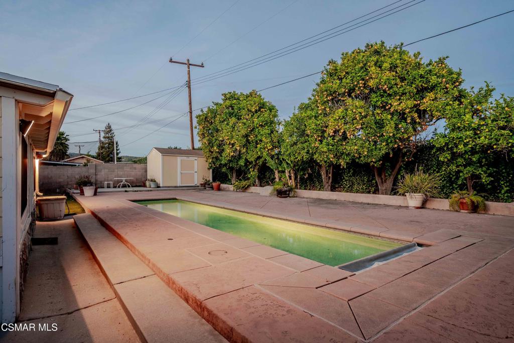 Welcome home to this lovely single story with PAID SOLAR, NO HOA, and a LAP POOL! Charming curb appeal with artificial turf, stamped concrete walkway, and mature trees await your arrival. Once you enter the home you will find all new fresh light and bright interior paint and brand new carpet throughout. Cozy brick fireplace in the family room and sliders out to the enclosed sunroom to enjoy entertaining. There is a nice addition with built-ins off of the family room which is perfect for a bedroom or office space. The kitchen is large with loads of warm wood cabinetry with modern hardware, wood like flooring, and breakfast nook looking out to the charming front yard. Down the hall, you will find linen storage cabinets and 4 bedrooms. The primary has views of the backyard and pool, an ensuite bath with tile floor, and wood vanity. The guest bath was remodeled with tile flooring, walk-in shower, and wood vanity. In the backyard, there is a refreshing pebble tec lap pool, custom TUFF SHED, covered patio off to the side, grapefruit, banana, lemon, and dragon fruit trees, stamped concrete around pool, grassy area, and many separate seating areas and shed. 2 car garage offers and electric car charger, laundry and is attached to the home off of the large kitchen. ADDITIONAL FEATURES INCLUDE: newer AC and furnace, tankless water heater, Anderson and Milgard windows, and 2 car garage with ELECTRIC CAR CHARGER! . This home is a real charm and is waiting for it's next lucky owner! Close to shops, dining, schools, parks, and local transit.