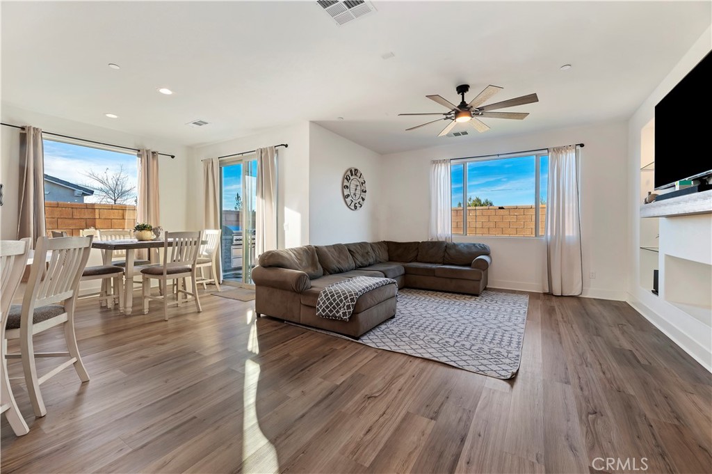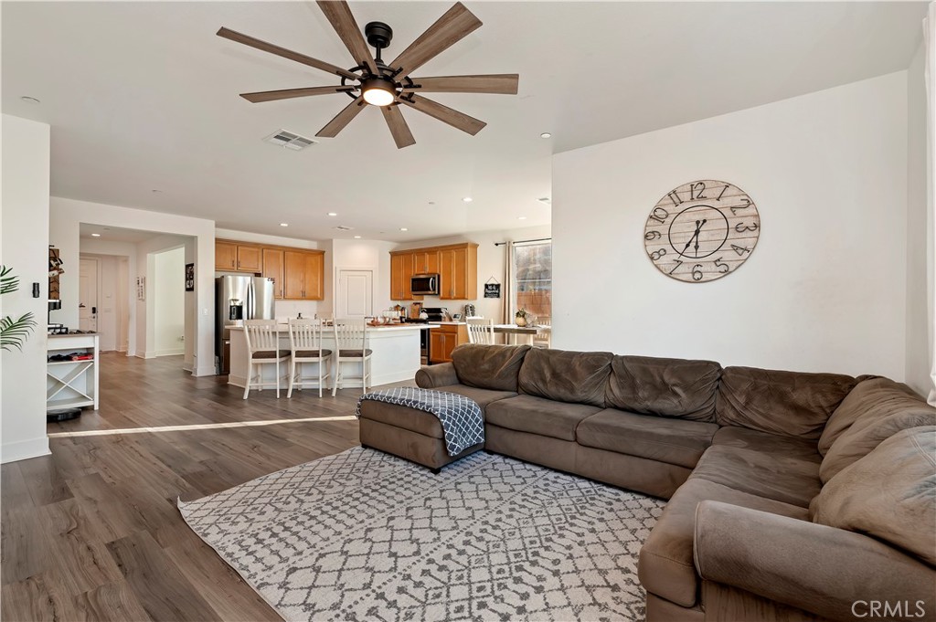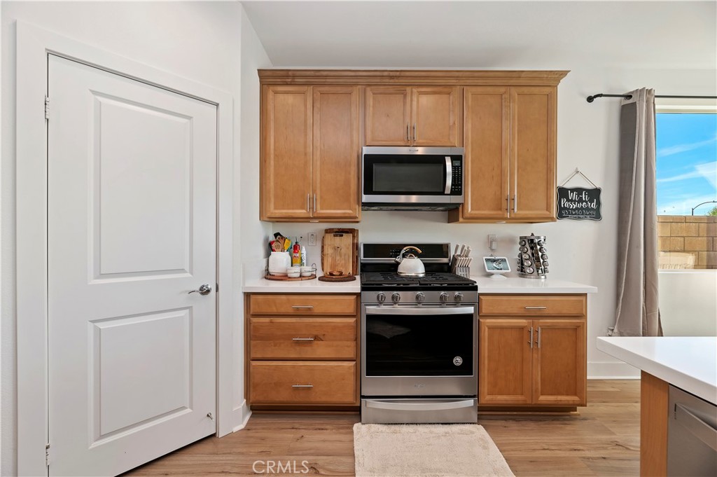 New Listing Alert!!! This Stunning single-story home with great curb appeal in the highly sought-after Spencer's Crossing community, located within one of Riverside County's top-rated school districts. This bright, open-concept floor plan features beautiful flooring and upgraded baseboards throughout, spacious bedrooms with ceiling fans, and a flexible den ideal for a home office or optional bedroom. The chef's kitchen offers a large island, rich cabinetry, walk-in pantry, five-burner stove, and stainless steel appliances, opening to inviting living and dining spaces perfect for entertaining and everyday living. The private primary suite is filled with natural light and feels like a true retreat. The primary bathroom feels like a private spa, featuring dual vanities, an oversized mirror, a deep soaking tub, a walk-in shower, and a spacious walk-in wardrobe with custom built-ins. Enjoy outdoor living under the covered patio, plus a side yard ideal for a dog run. Additional highlights include a tankless water heater, smart thermostat, pre-wired Wi-Fi extender, and pre-wired for security cameras. Ideally located near freeway access, scenic hiking and mountain biking trails, and just minutes from Temecula Wine Country, top-rated restaurants, and premier shopping. With resort-style amenities including pools, parks, and trails, this exceptional home is truly a must-see.