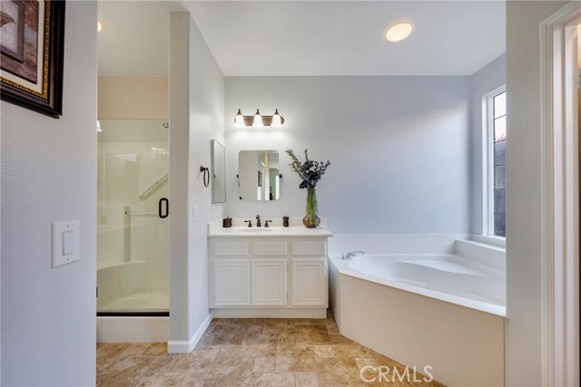 Welcome to Four Seasons, a premier 55 resort-style community! If you're looking for perfection, this is the house for you. This popular floor plan - Craftsman 2, features 3 bedrooms (one is currently being used as an office), 2 baths and a sizeable living room. This home is a showstopper and has been beautifully maintained down to the last detail. With newer Luxury Vinyl Plank flooring throughout, newer electric window blinds, freshly painted throughout, newer base boards throughout, beautiful shelving in front bedroom, newer Alumawood patio cover, new garage door opener, new Samsung washer, the list goes on. The kitchen offers granite counters, tile flooring, pull-out drawers in kitchen and bathrooms, all appliances have been updated. Kitchen offers an open concept looking out onto the family room with a separate formal dining room that connects seamlessly to the kitchen. The master suite features jetted corner tub, two closets, dual sinks and separate walk-in shower. Enjoy the spacious indoor laundry room which provides plenty of storage cabinets. The backyard offers amazingly low maintenance complete with solid Alumawood patio cover and fan w/ light, stamped concrete patio, artificial turf, beautiful yet low-maintenance landscaping with drip system out back and sprinklers in front. This peaceful setting creates the perfect place for relaxation and a cup of java. Save big on your electric bill with solar panels that offer a low monthly lease (under 90/mo). This is truly a turn-key home! The Lodge Clubhouse offers a 10-acre recreational facility that includes a wide variety of amenities from art classes to yoga, bridge, billiards, and more. Outdoor amenities include a large pool, spa, BBQ/picnic area, putting green, golf practice area, horseshoes, shuffleboard, bocce ball, basketball, and lighted tennis courts, pickleball, and badminton. Indoors, you can take advantage of the gym, library, billiards and card room, craft room, and a large ballroom for events. Nearby, you'll find a major shopping mall with excellent restaurants and movie theaters. Stroll through Old Town Temecula, with its charming downtown as well as award-winning wineries, all just a few miles away. Come and discover the active, enjoyable lifestyle waiting for you at Four Seasons Murrieta!