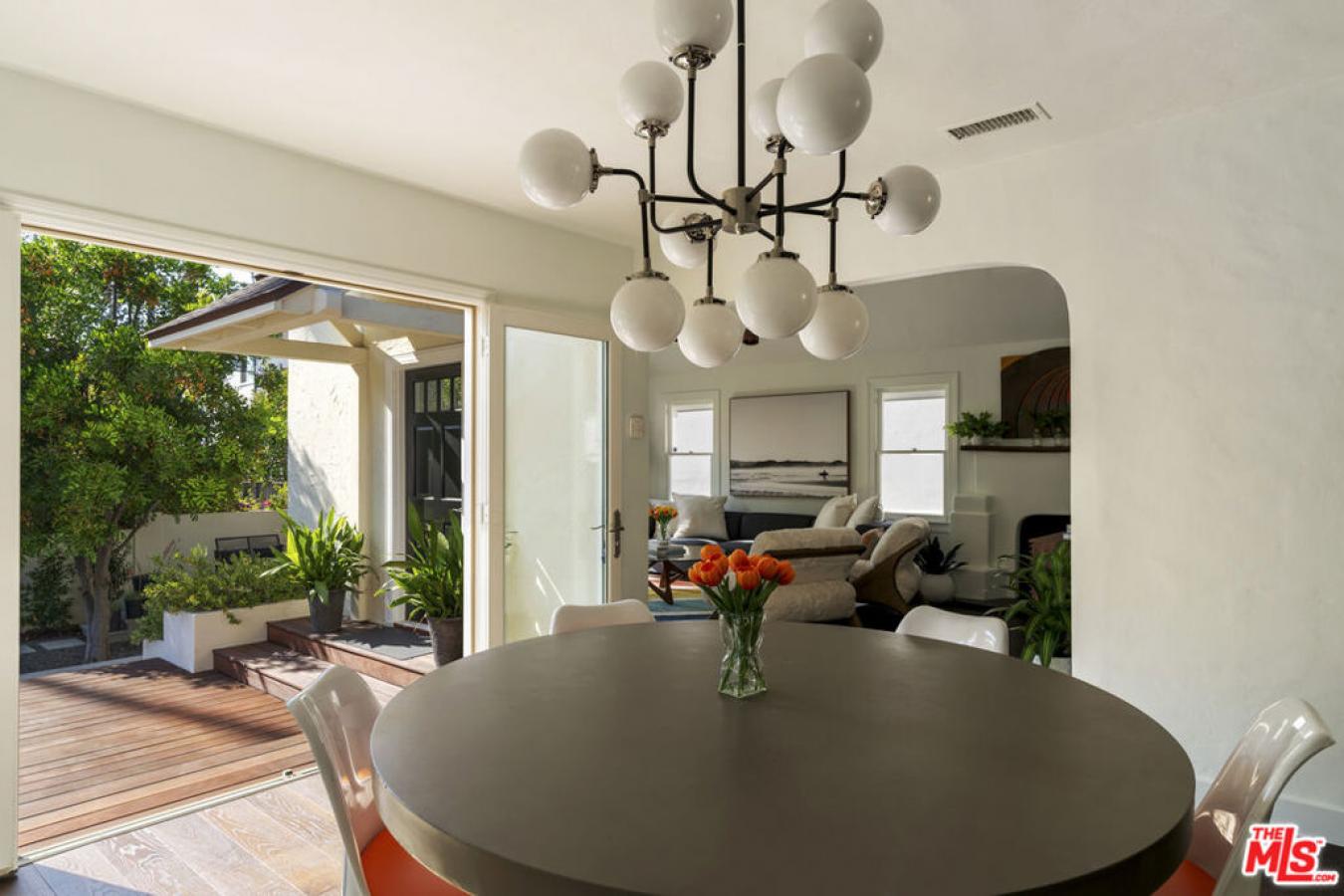Reimagined and expanded, this 1920 California bungalow sits gracefully in the coveted Sunset Square HPOZ. A brand-new 2026 ADU and versatile bonus room complete this private mini compound, nestled on a generous gated lot surrounded by mature landscaping, offering serenity and seclusion in the center of Hollywood. The main residence features 3 bedrooms and 2 bathrooms, blending original architectural details such as coved ceilings, double-hung windows, and arched doorways with fresh modern updates, including new wood floors and thoughtfully redesigned bathrooms. Abundant natural light pours through the glass walls, creating a seamless flow between the indoor and outdoor living spaces. The chefs kitchen, equipped with a Viking range, opens onto an expansive ip deck that wraps the home, featuring multiple outdoor living and dining areas, ideal for entertaining or relaxed California living. The newly constructed ADU mirrors the homes classic arched design and features a fully detached bedroom and bath with city light views. Perfect as a guest suite, studio, or potential rental, it adds exceptional flexibility. Below the ADU is a bonus space with a half bath and a wet bar, currently styled as a home gym, that faces the yard and the main house. Completing this unique sanctuary are an outdoor kitchen, a tranquil fountain, and beautifully cultivated gardens that blur the lines between indoor comfort and outdoor luxury, embodying the quintessential California lifestyle.