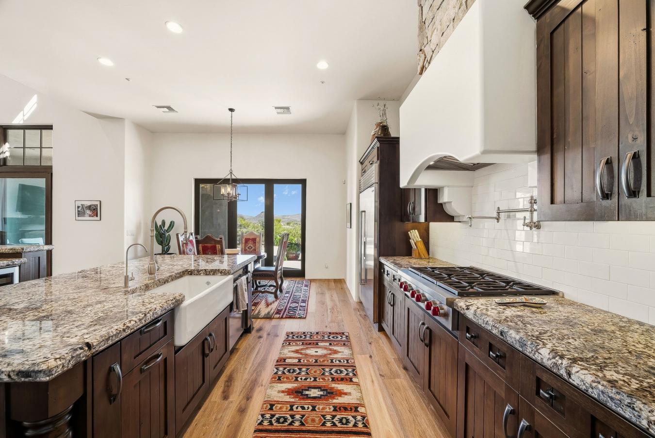 Nestled within the prestigious gated community of Troon, this beautifully remodeled home offers refined desert living with high-end finishes throughout. The chefs kitchen features striking quartzite countertops, custom cabinetry, and premium Monogram appliances, including a six-burner gas range and double ovens-perfect for entertaining. Rich wood flooring flows through the home, while spa-inspired bathrooms showcase elegant marble and natural stone finishes. Enjoy cozy evenings by the beautifully updated fireplaces or unwind in the privacy of your peaceful desert surroundings. Additional highlights include a 3-car garage with EV (electric vehicle) charging and quality upgrades throughout. Experience the beauty, tranquility, and elevated lifestyle that Troon living is known for.