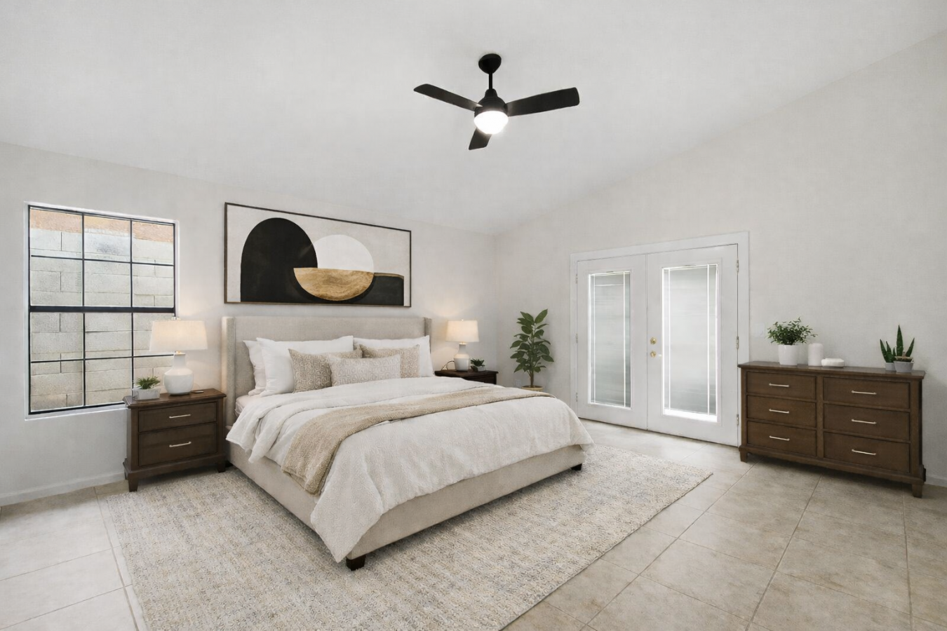 Prepare to be amazed! This fantastic 4 bedroom, 3 bathroom residence with owned solar is now available in the gated community of Encanto Norte! A stunning facade with tasteful stone accents, a manicured desert landscape, a 3-car garage with built-in cabinets, and a paver driveway are just the beginning.