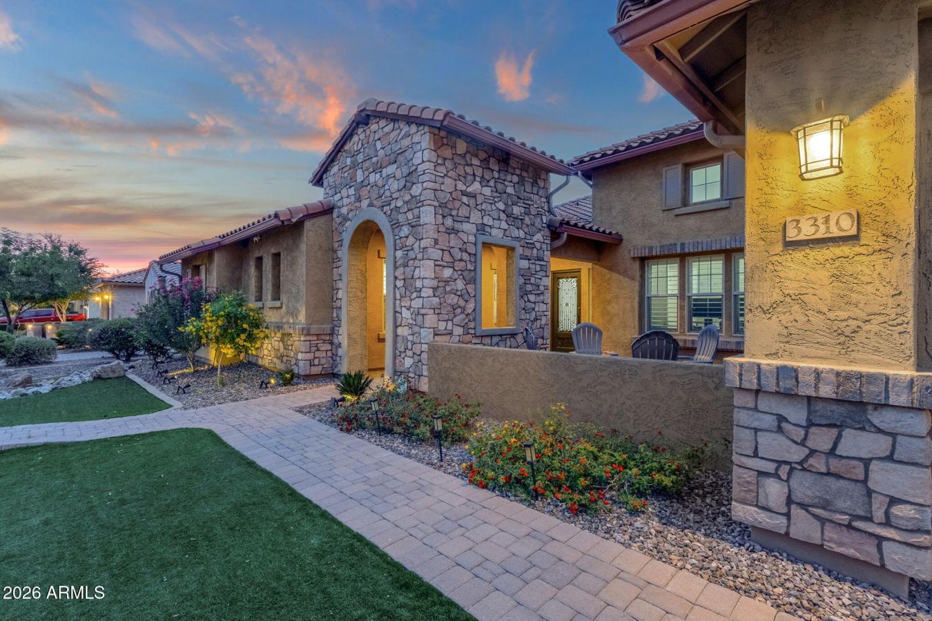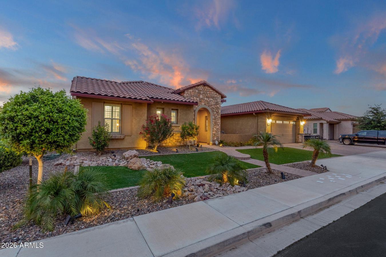 Wake up every day in your DREAM home in the heart of Gilbert Commons, minutes from parks, shopping, and the Downtown Gilbert Heritage District. Set on a quiet cul-de-sac, this oversized corner lot offers rare privacy and standout curb appeal that turns heads. A circular drive, large courtyard, mature landscaping, and tranquil fountain create a memorable arrival. Inside, enjoy soaring 12 ft tray ceilings, abundant natural light, and refined designer finishes. The ideal layout features formal living and dining plus a spacious family room with fireplace and French doors to the backyard & pool. A split 3 car garage includes a 1 car garage with direct access, perfect for guest quarters, multi gen living, or a private studio with its own kitchenette and living area. This home truly has it all. The gourmet kitchen boasts granite counters, mosaic tile backsplash, a walk-in pantry, a 2-tier island, a plethora of cabinetry, and high-end SS appliances w/cooktop gas & double wall ovens. The cozy breakfast nook creates the perfect spot for casual mornings! The double-door den offers flexibility as a private office, media room, or additional bedroom. Youll love the large main bedroom with a double-door entry & backyard access! Its spa-like ensuite includes two vanities, a walk-in closet, a separate shower, a jetted tub, & a decorative fireplace. Laundry room with a sink & ample cabinetry. Adding tremendous value and versatility is the private CASITA! Designed with a desirable great room layout, kitchenette, bedroom, bathroom, separate entrance, and direct access to a single-bay garage - ideal for guests, extended living, or multigenerational needs. Outdoors, the resort-style backyard invites relaxation and entertainment alike! Enjoy a covered patio, lush green lawn, built-in BBQ grill, and a fenced diving pool - your own private oasis perfect for year-round enjoyment. Whats not to like? This beauty will not disappoint!