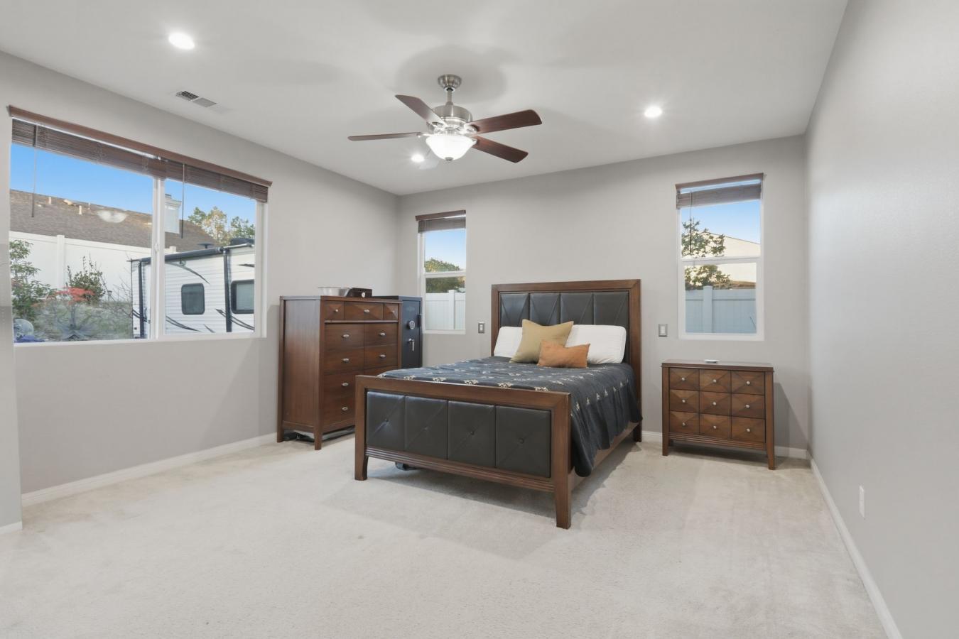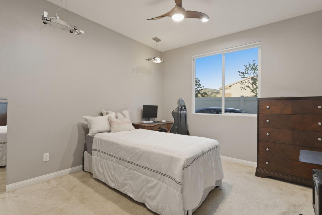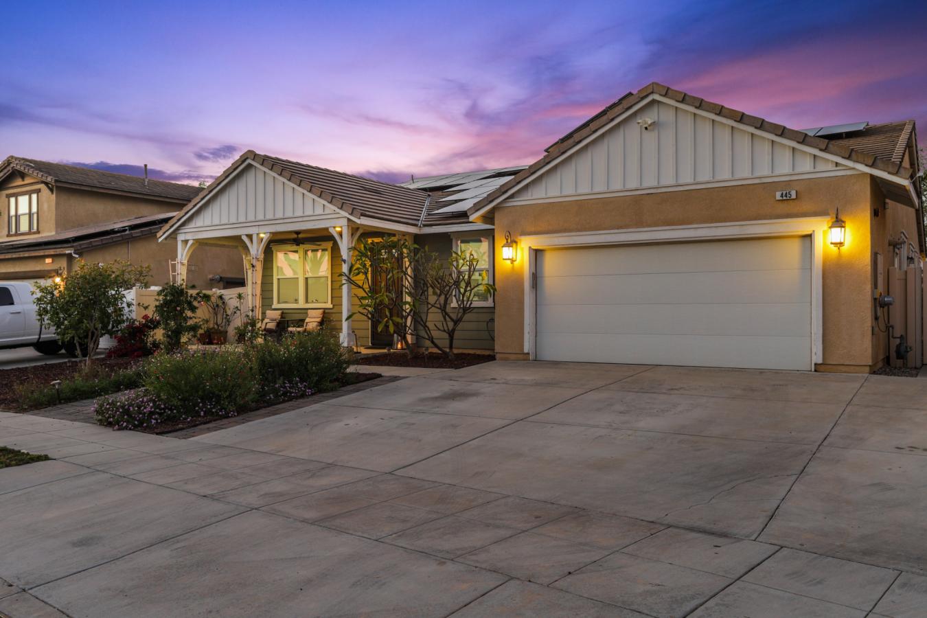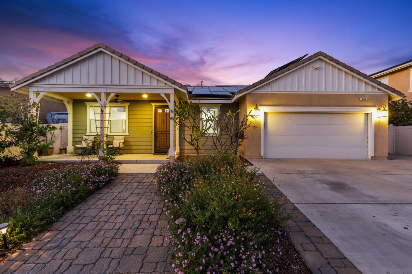 Welcome to 445 Edgewood Dr. This single-story home is an exceptional 4-bedroom, 2.5-bath, built in 2014, offering comfort, efficiency, and elevated living. This home features an inviting open floor plan and abundant natural light. The kitchen features a granite countertop, stainless steel appliances, a pantry, & a center island. The spacious primary suite & bath includes dual sinks, a separate shower, and a soaking tub. Tranquil setting. Situated on one of the largest lots in the Bridges Community, the property provides ample space for RV parking & more. Upgraded with 28 solar panels & 2 Tesla systems for full-home backup, this home blends sustainability with convenience. A Tuff Shed adds valuable space. Most appliances were newly purchased in 2024, with a newer refrigerator & a wine/beverage fridge included. Ideally located near El Pescador Restaurant, scenic trails on the Sespe Creek Trail, & Fillmore Unified School District.
