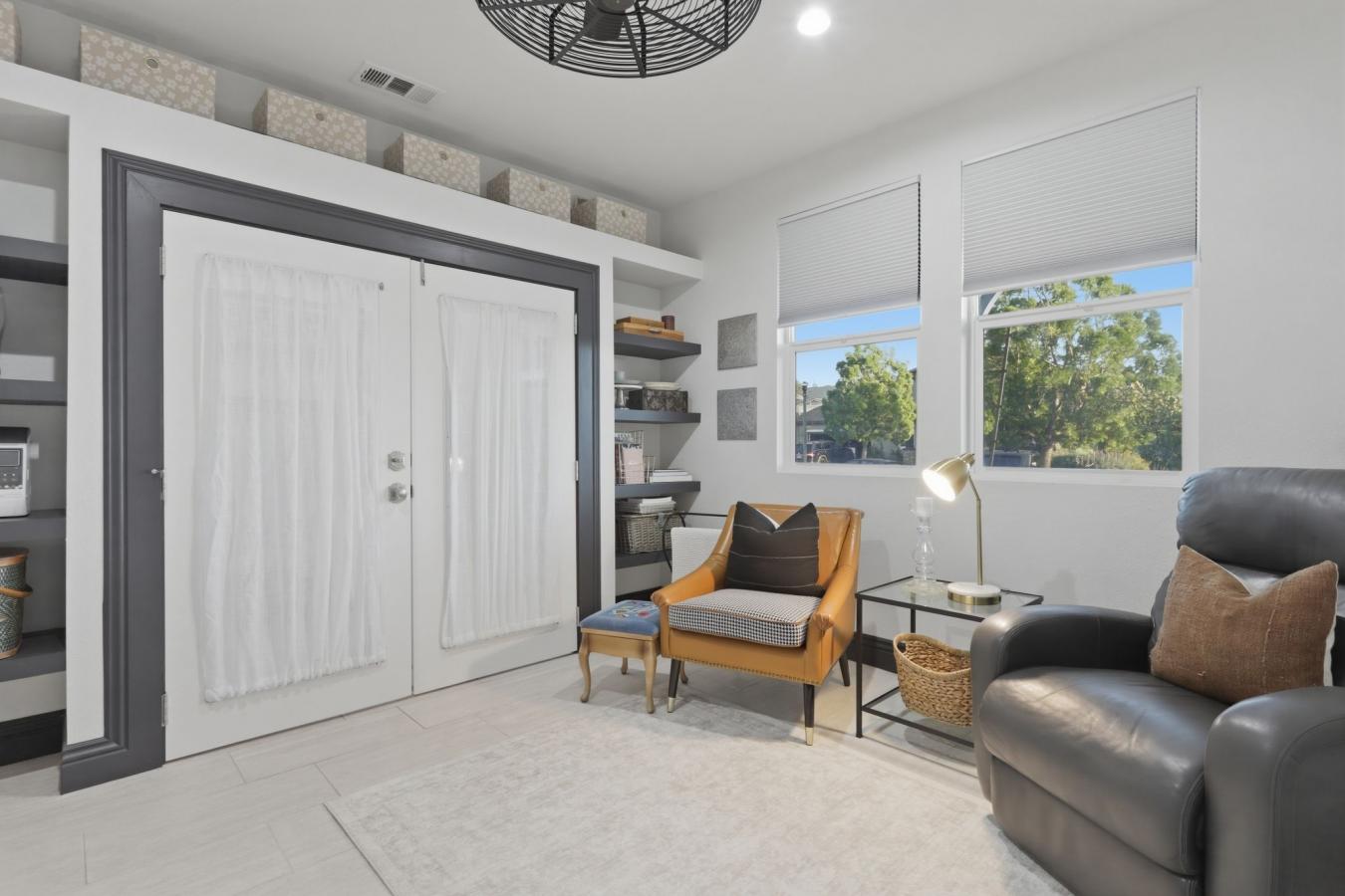 Lovely Single story view home in the ''North View'' neighborhood in Moorpark. This property sits up from the street offering stunning mountain views. Enter to find an inviting interior with fresh paint and high ceilings. Large living room with adjoining dining area and cozy family room with fireplace. Updated windows and doors throughout for energy efficiency. The open living areas flow seamlessly with porcelain tile flooring that extends through the living room, kitchen, and hallways. The kitchen offers white painted cabinets, granite counters and a variety of contemporary smart appliances including: a new Wi-Fi-enabled dishwasher, high-quality drinking water filter, smart Wi-Fi gas range and oven, full-size smart Wi-Fi microwave with hood fan, and a sleek refrigerator-freezer featuring InstaView(r). Down the hallways, find smart Wi-Fi power switches and dimmers in bedrooms and common areas. Full-house smart Wi-Fi lighting with automatic scheduling keeps everything perfectly illuminated, and a smart Wi-Fi deadbolt and palm-scanning entry for added convenience and peace of mind. Auxiliary whole-house generator wiring ensures reliability during any outage. The bedrooms offer comfort with warm laminated wood flooring and new closet sliding doors in every room. The primary bedroom has vaulted ceilings and views to the back garden. The primary bath has a new stone-top vanity, porcelain tile shower with frameless glass door, and new porcelain tile flooring. Laundry is a breeze with a top-load washer and gas dryer. Before heading outside, step into the 2 car garage with epoxy and metal-infused flooring that resists oil stains and tire marks while staying easy to clean. Duall240V charging ports (40A and 16A) support convenient Level II electric vehicle charging. Hands-free motion-controlled lighting illuminates every area, with smart programmable lights at the entrance and backyard access. Practical additions include an energy efficient 21-cubic-foot standalone freezer, and a high-efficiency new furnace with variable-speed blower for quiet, effective heating. Outside, the front and backyard have been designed for beauty and low maintenance. Relax and entertain family and friends on your back patio. Smart Wi-Fi sprinkler system adjusts watering intelligently based on real-time weather data. A delightful variety of fruit trees: two each of red and yellow pomegranates, black and red mulberries, and bitter/sour oranges, Alder Meyer lemon, prickly pear, white-flesh nectarine, and Saturn-donut peach. The well-maintained roof, with regular inspections, fortified bars for enhanced tile support, replaced underlayment and reset tiles as needed, promises lasting durability. This thoughtfully upgraded residence blends smart technology, premium finishes, and inviting outdoor spaces into an exceptional, move-in-ready home ready for its next owners.