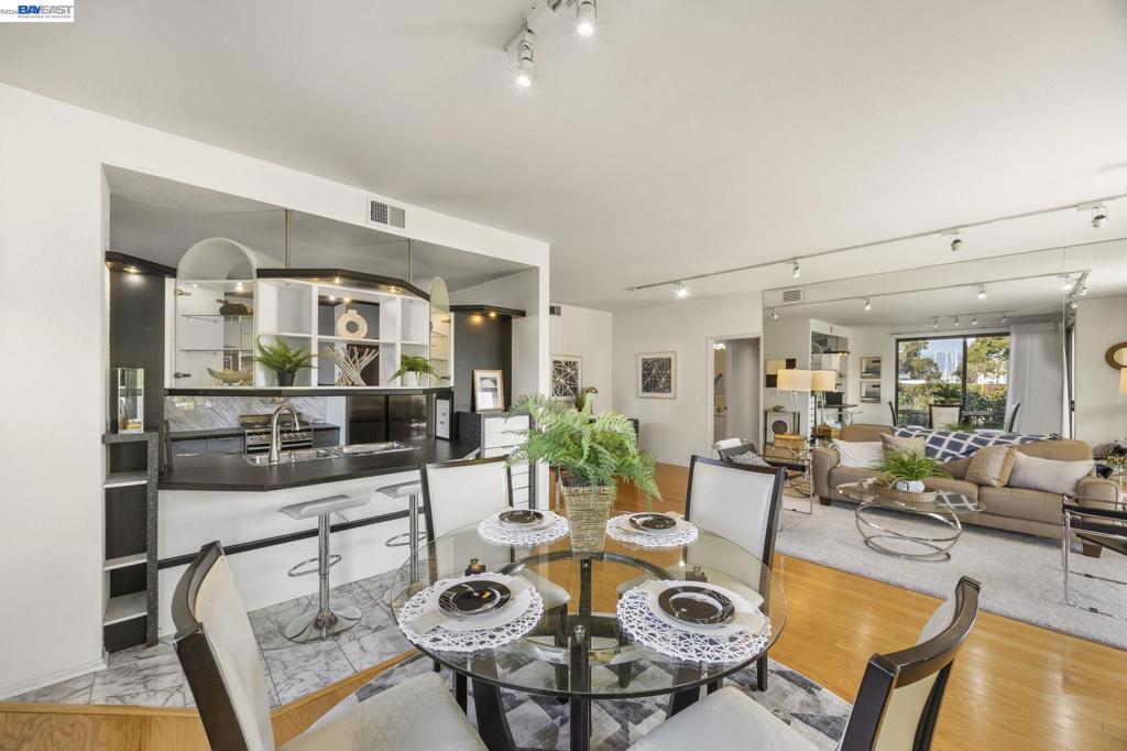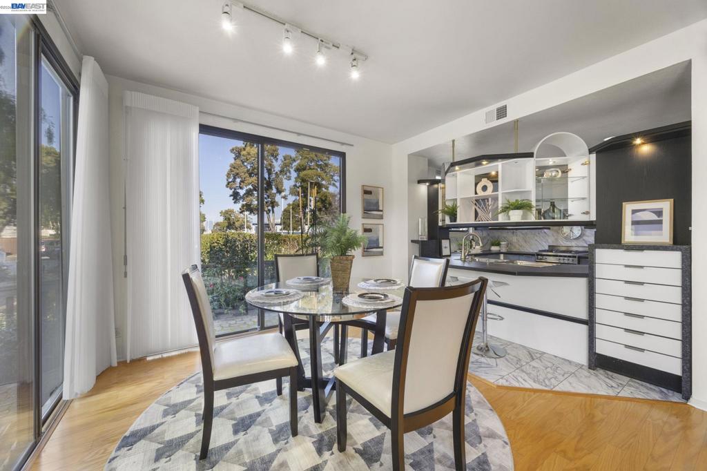 Serenity and city living await you at 3009 Triumph Drive, nestled in the highly desirable Marina Village community of Alameda. This beautifully appointed 2-bedroom, 2-bath ground-floor condo offers the perfect blend of tranquil waterfront lifestyle and effortless access to the vibrant East Bay. Wake up to sparkling lagoon views from your spacious primary suite and second bedroom, both thoughtfully positioned to capture the peaceful setting. Timeless plantation shutters allow an abundance of natural light inside and seamless indoor-outdoor flow to your private deck— ideal for morning coffee, sunset dinners, or simply soaking in the moment. Inside, you'll fall in love with the updated European designer kitchen, elegant flooring, and a romantic fireplace that anchors the living space with warmth and charm. Every detail feels refined yet comfortable. Practicality meets convenience with a single-car attached garage offering interior access. Steps from: â Shoreline Park for scenic waterfront walks and biking â Encinal Yacht Club and Oakland Yacht Club for boating enthusiasts â Marina Village Shopping Center for everyday convenience â Quick tunnel access for an easy commute to Oakland, San Francisco, and beyond