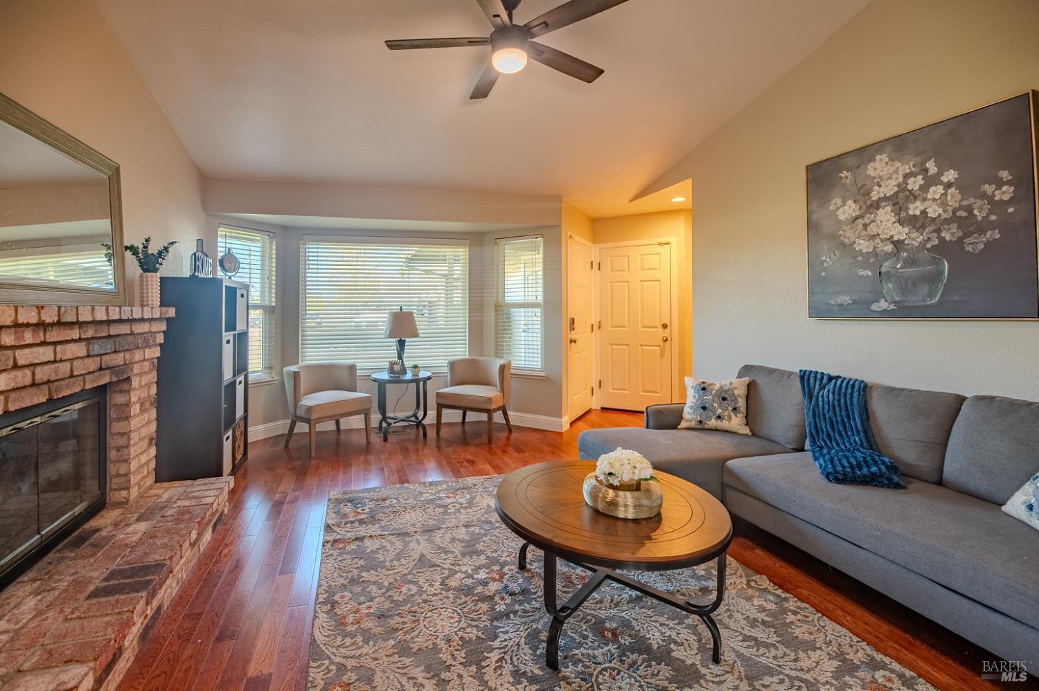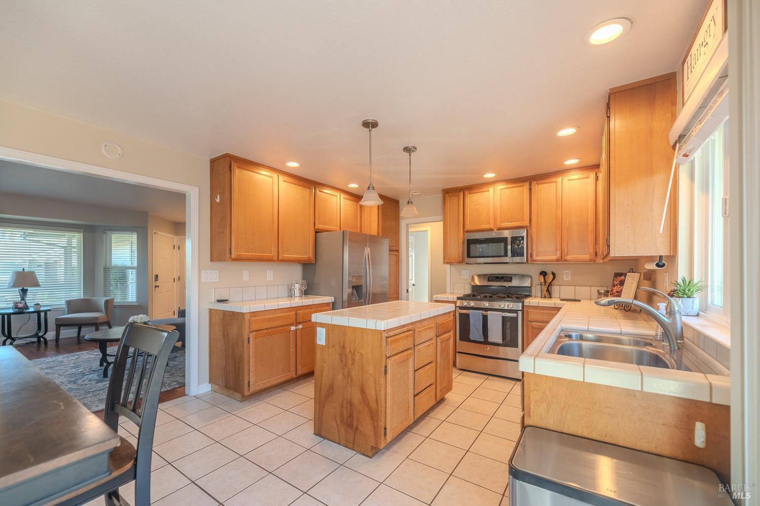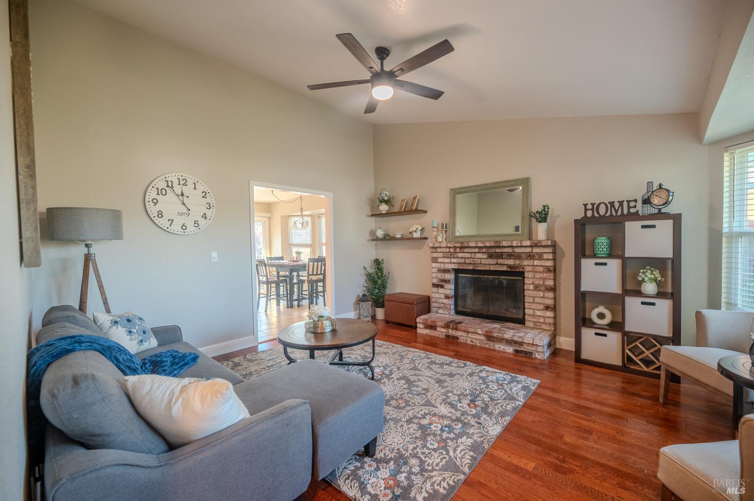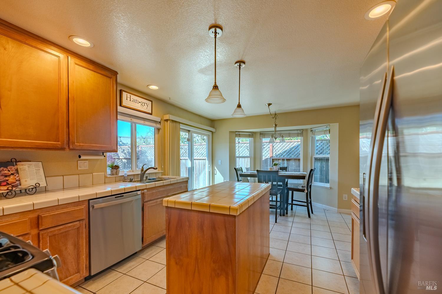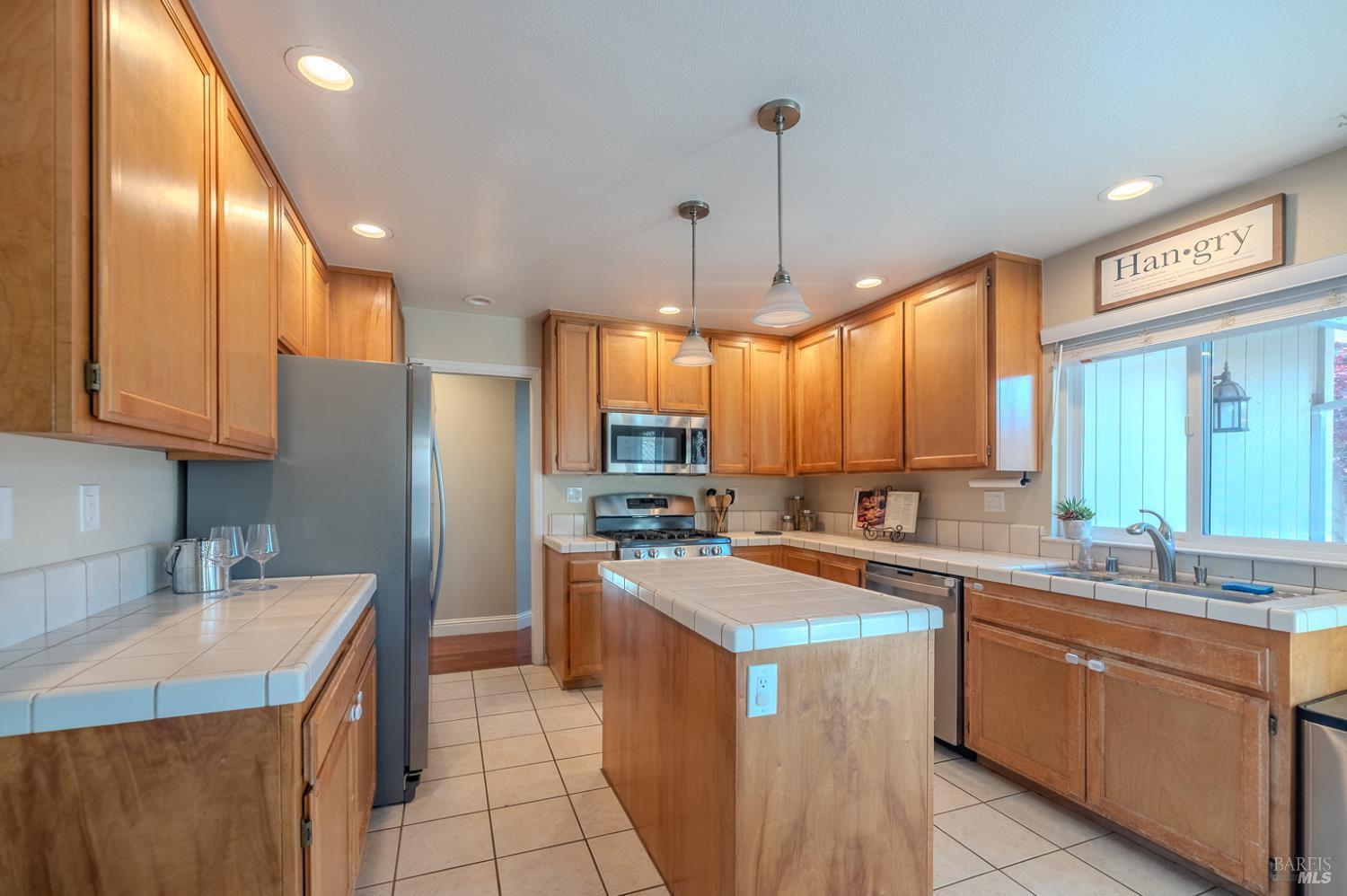 Charming 3-bedroom, 2-bath home offering approximately 1,227 sq. ft. of comfortable living space in a mature established neighborhood. The inviting living room features a cozy fireplace, creating a warm and welcoming atmosphere. The kitchen includes stainless steel appliances, including a refrigerator, a small island for additional prep space, and a dining area perfect for everyday meals.