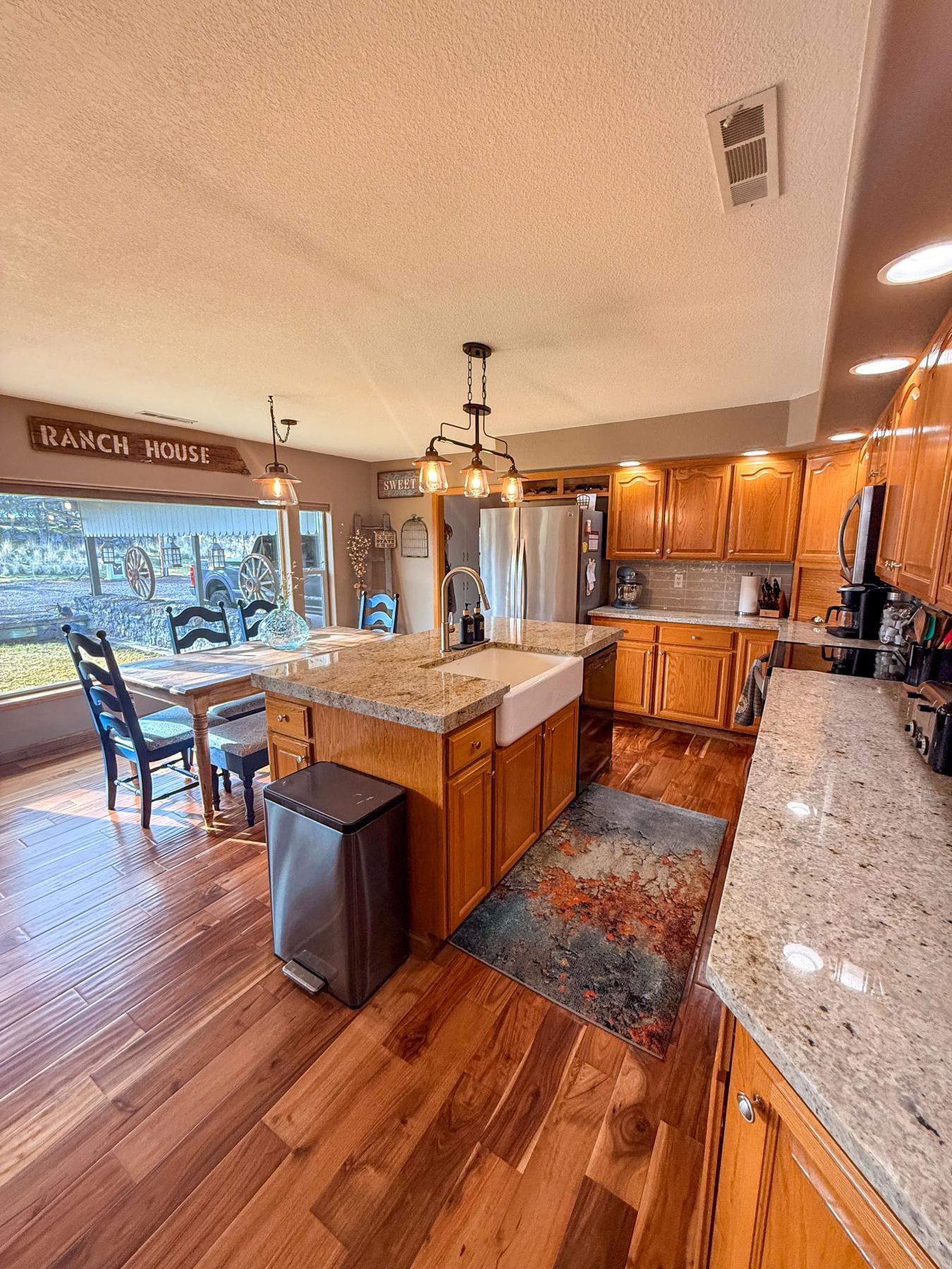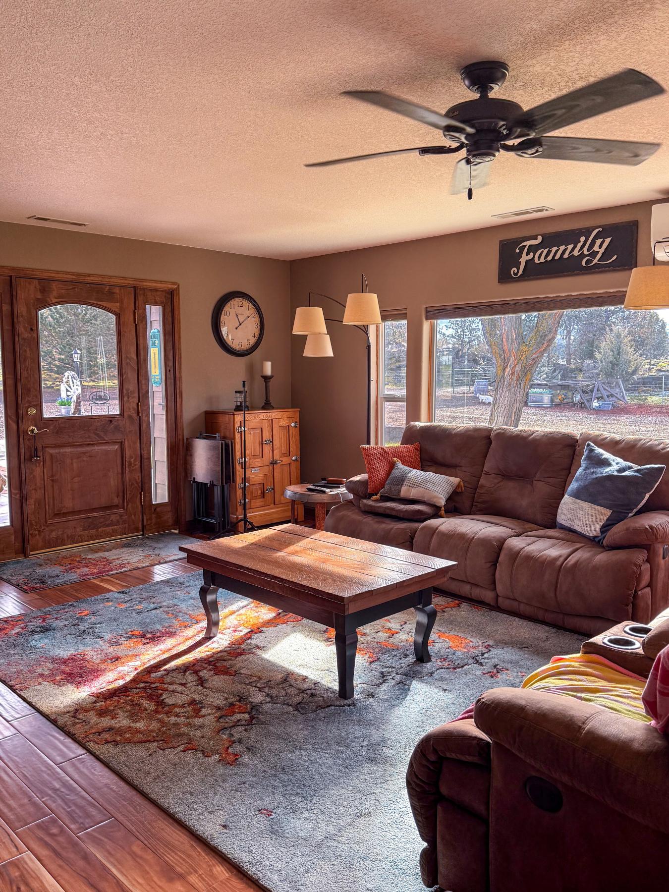 Set on 23 fully fenced and cross-fenced acres in Montague, this private 3-bedroom, 2-bath ranch is well suited for a hobby ranch or equestrian lifestyle. The home sits well back from the road, offering a quiet, secluded setting with usable land laid out for animals and daily function. The residence has been fully updated with durable, elevated finishes. An open kitchen and living area feature hardwood flooring, granite countertops, a farmhouse sink, and roll-out cabinetry. Energy-efficient mini-split systems provide zoned heating and cooling, while new carpet finishes the bedrooms. The primary suite includes a private sunroom overlooking the acreage. Major upgrades include energy-efficient windows throughout and a new roof installed in 2020. The yard surrounding the home is landscaped, creating a clean transition from living space to working land. The property is set up for livestock and equipment, with perimeter and cross fencing, a large hay barn, and a hog pen that can be adapted for other animal uses. A 920-sq-ft workshop with full electrical, built-ins, and a wood stove supports year-round use, while the 560-sq-ft double-height garage offers excellent storage. Three carports, including two sized for RV or trailer parking, provide additional covered space. A well-improved, turn-key acreage offering privacy, functionality, and the flexibility to support a refined hobby ranch or equestrian operation.