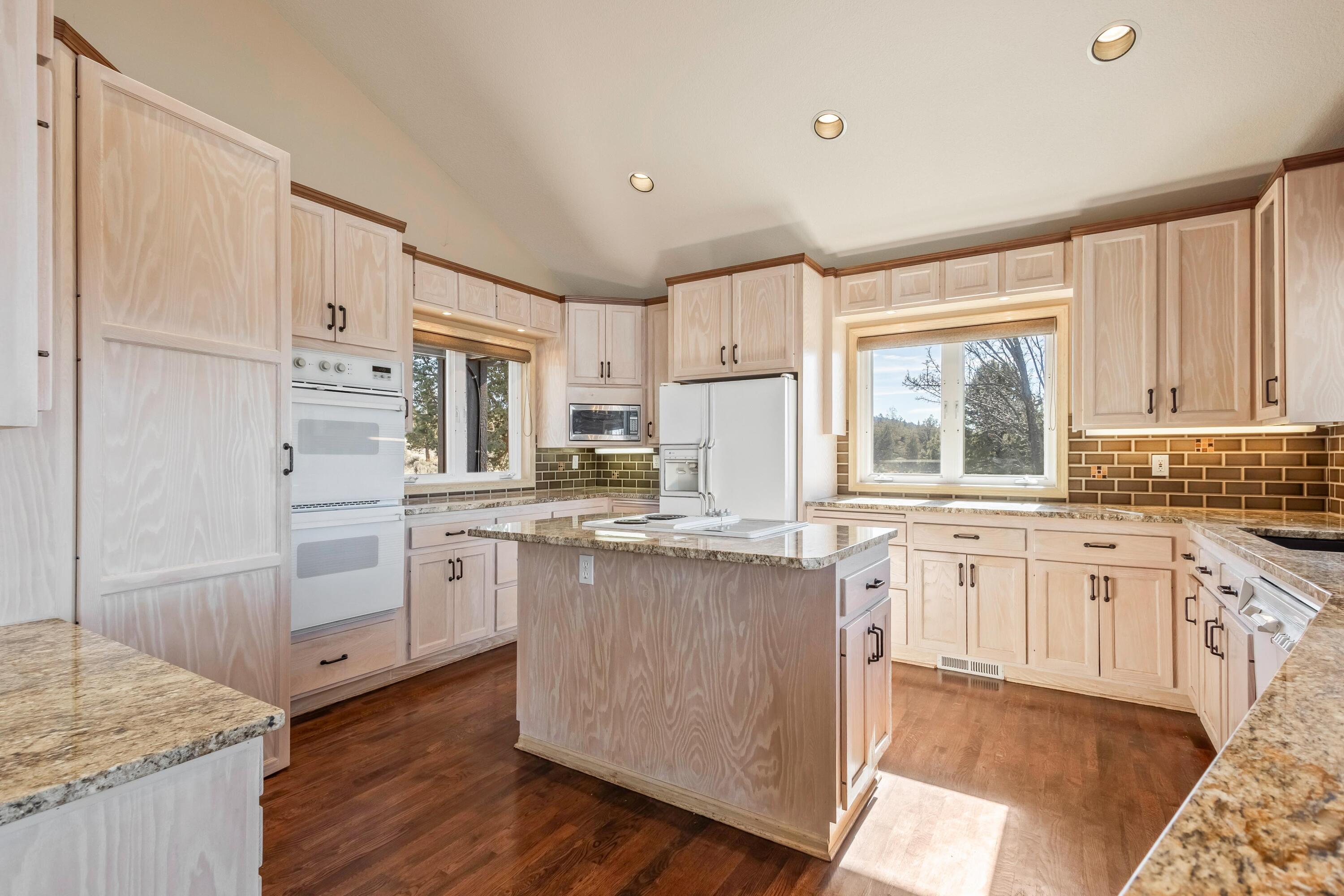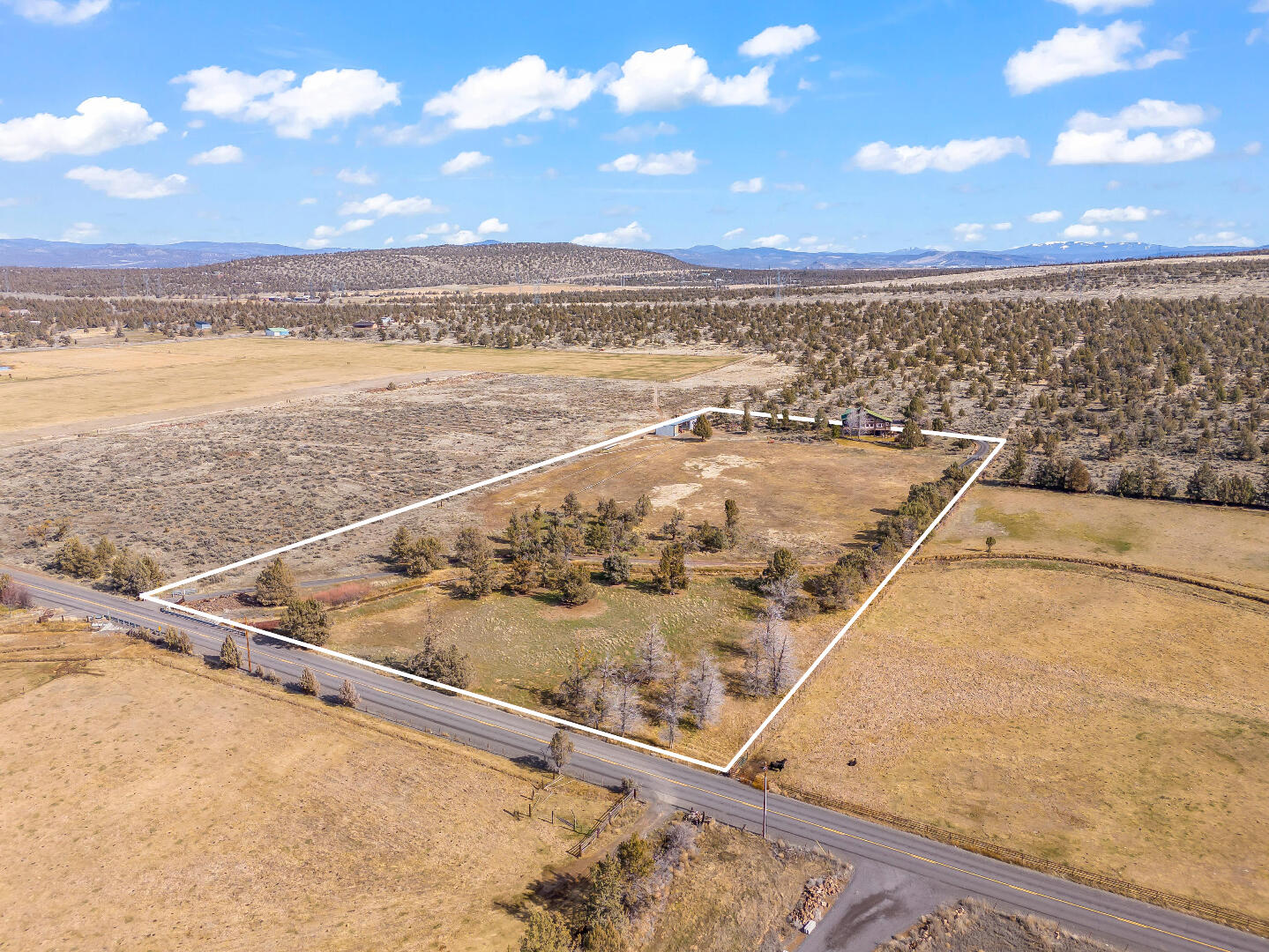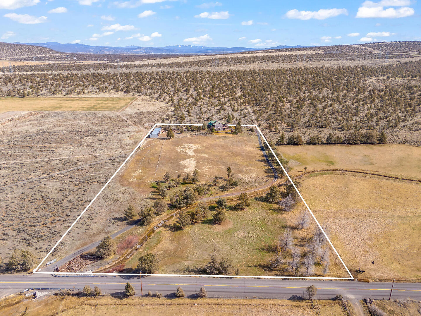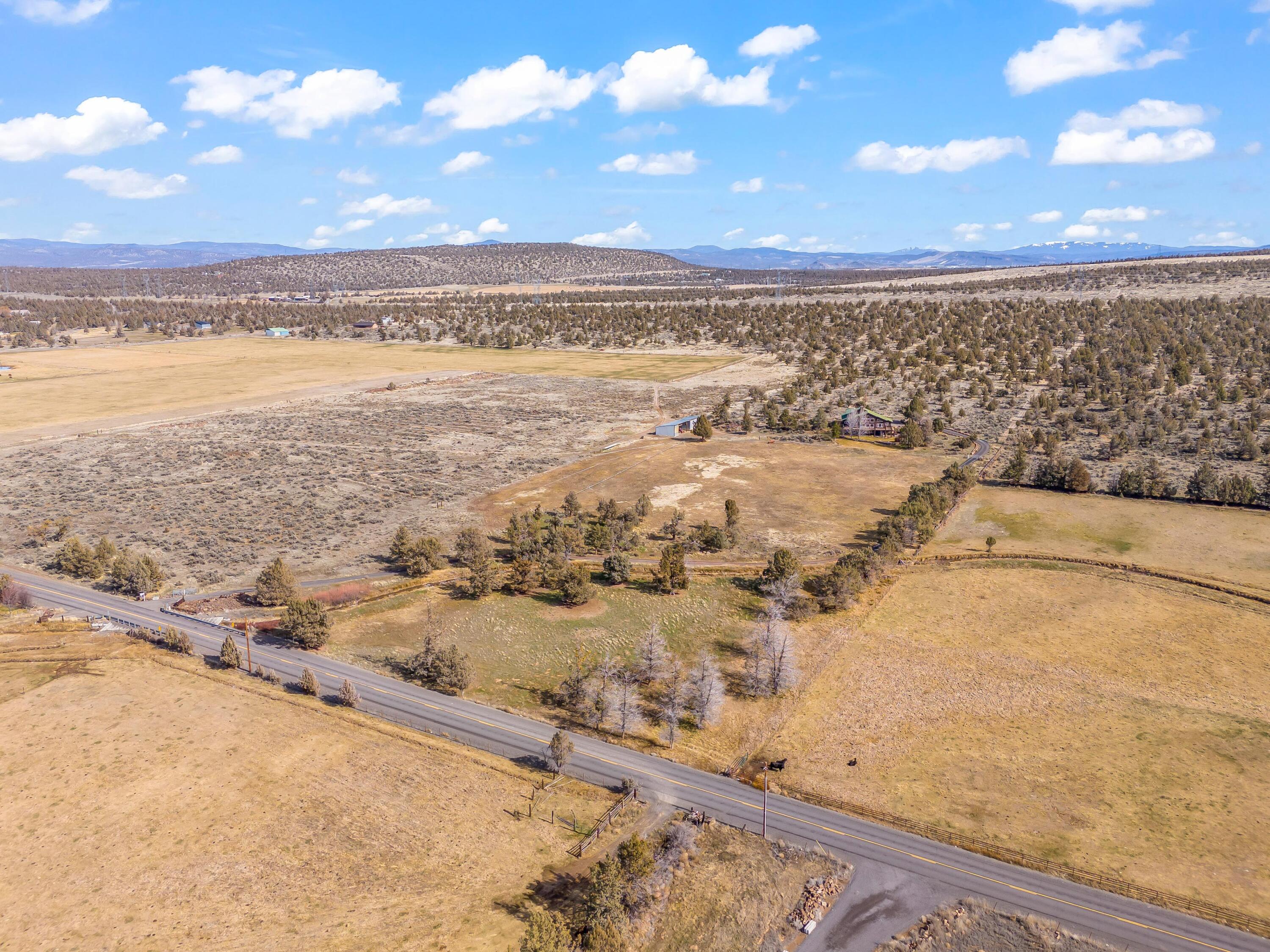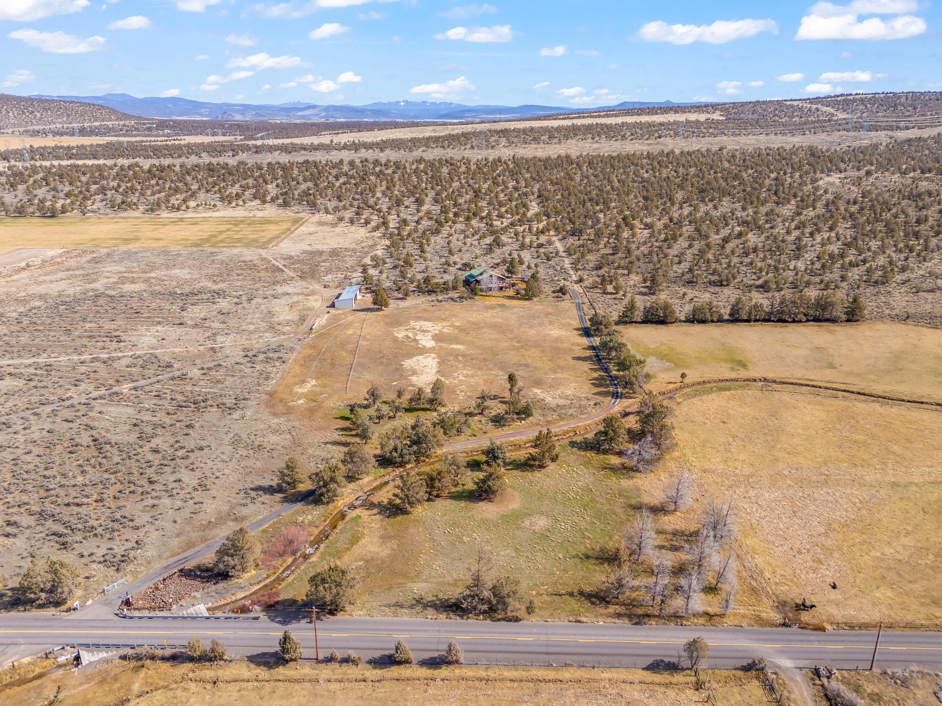 Extremely peaceful & private country setting offering stunning sunsets just minutes from Prineville! Discover a perfect blend of comfort, privacy, & practicality in this well-maintained home sitting on 10 fenced low-maintenance acres. Fresh interior & exterior paint, new hot water heater, & brand-new roof means all the hard work is done—just move in & enjoy! Step inside to find vaulted ceilings, hardwood floors, all appliances included, & a spacious kitchen w/ample storage and island seating—ideal for entertaining or everyday living. Large windows frame the beautiful views, while the wraparound deck invites you to relax & soak in the serene, tree-studded surroundings. Bring your hobbies & projects—this property features multiple outbuildings, including a great versatile shop w/concrete floors, & detached garage. Enjoy peace, privacy, & room to roam. The included 5-acre parcel to the West is a separate tax lot & is buildable, perfect for family compounds or a bonus investment property