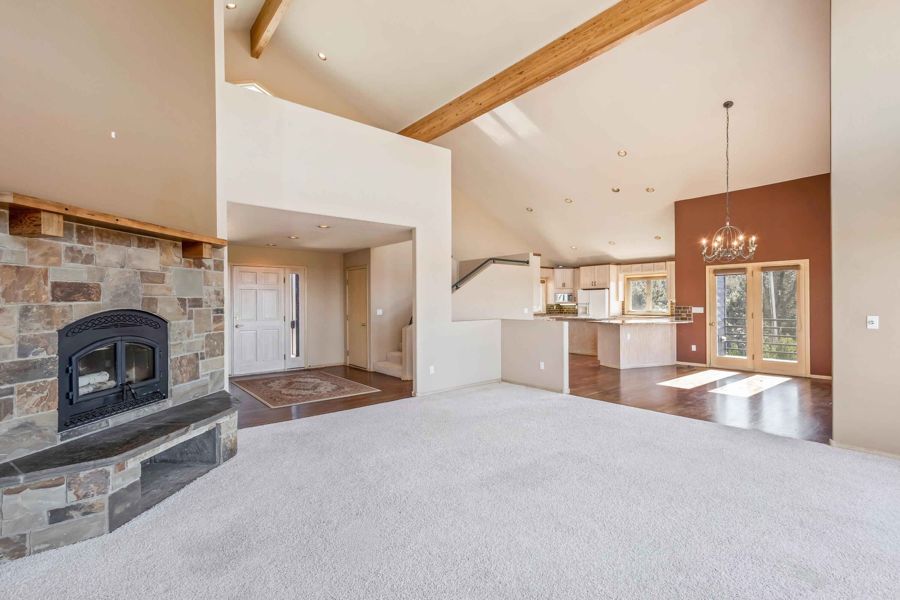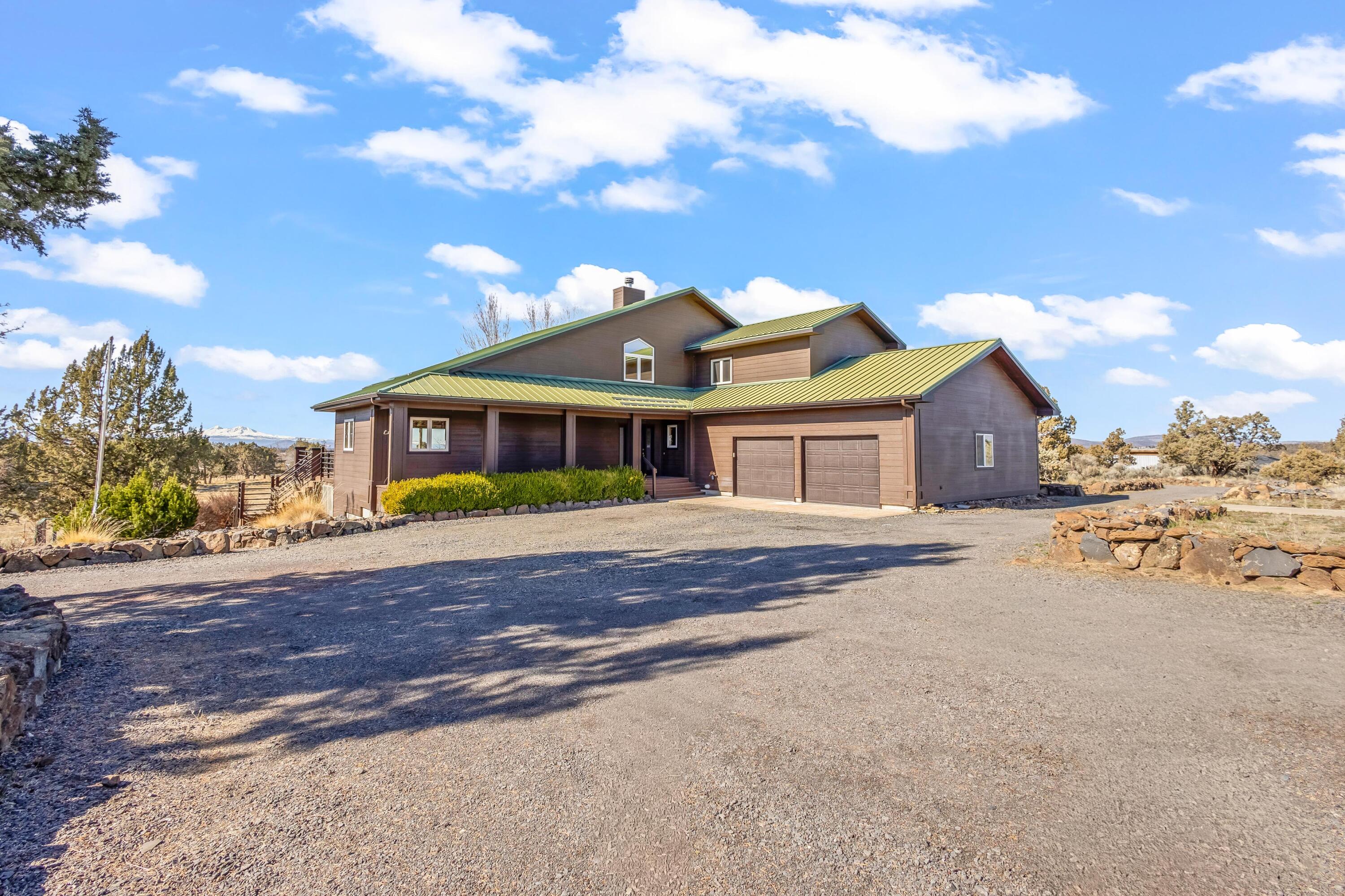 Experience Central Oregon living in this custom 3,776 SF home on 40 acres in Powell Butte, featuring 3.4 acres of adjudicated COI water rights. This three-level residence offers 4 bedrooms and 3 full bathrooms, designed with upscale finishes that complement its rural setting. Vaulted living spaces frame expansive Cascade Mountain views, while an enclosed wood-burning fireplace adds warmth and character. A rare blend of privacy, craftsmanship, and wide-open scenery creates a truly exceptional property.