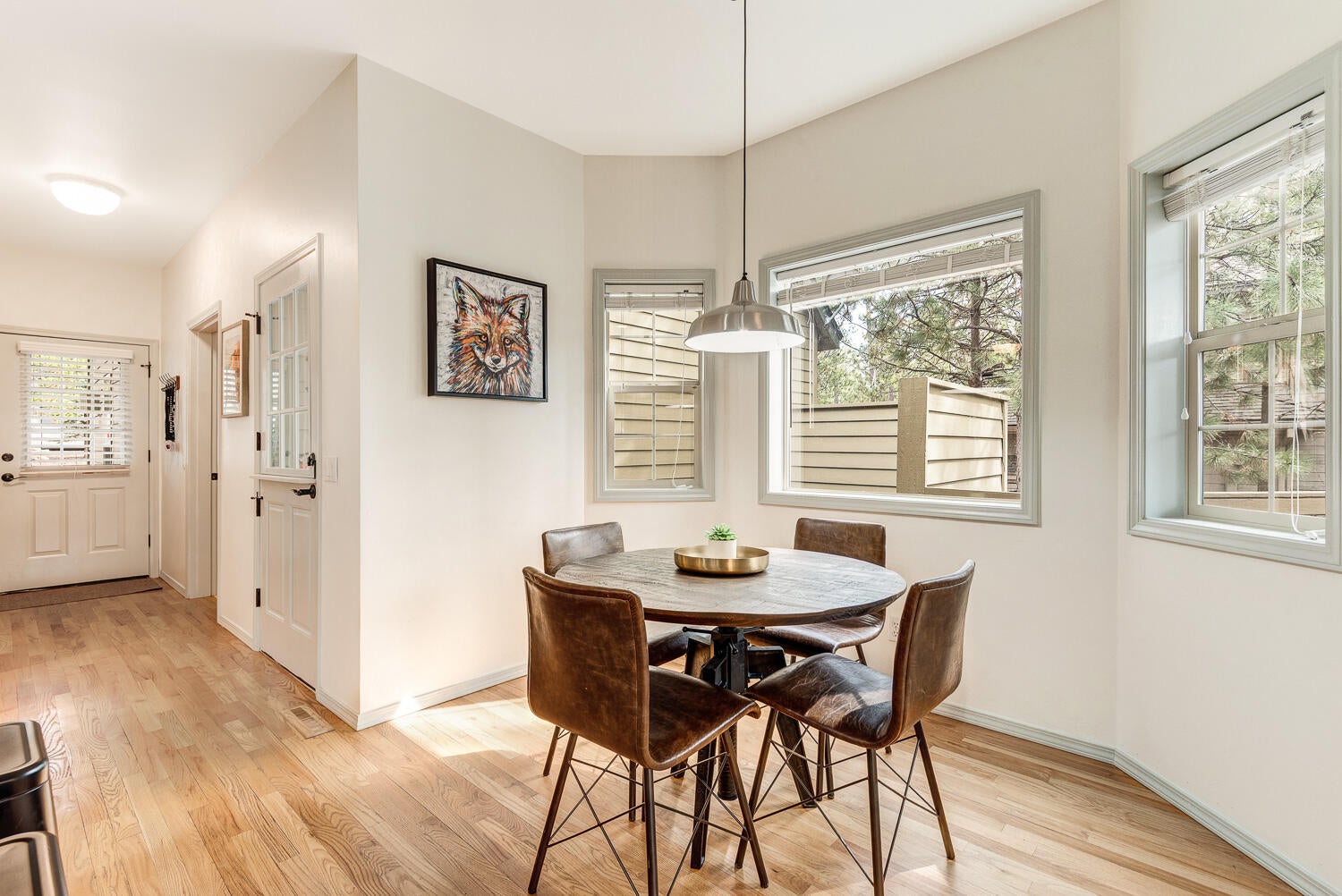 Charming, well-maintained home with a wraparound porch, ideally situated on a spacious, beautifully landscaped corner lot in Sunriver. The inviting living room features a cozy wood-burning fireplace and hardwood floors that extend through the living, kitchen and dining areas. The nicely remodeled kitchen offers a breakfast bar and sunny nook with bay window.