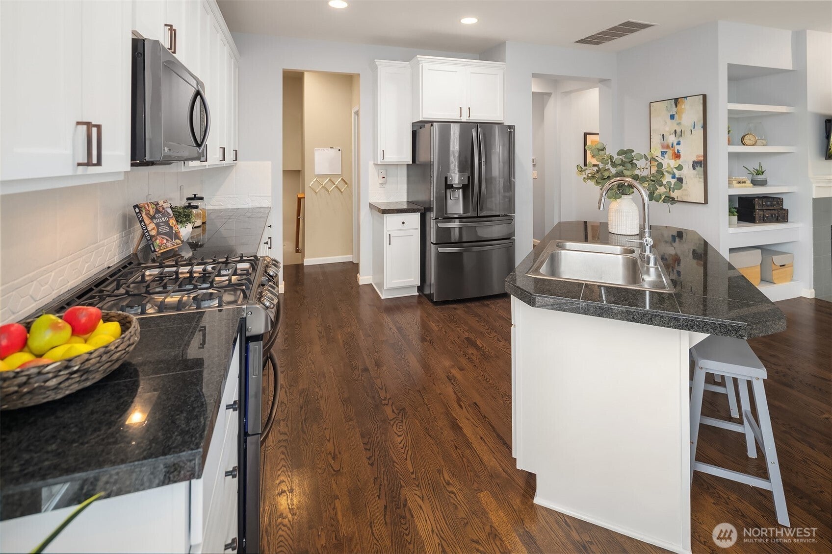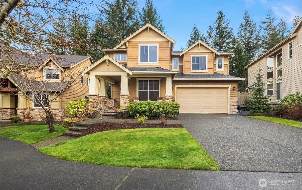A rare find! This quality Murray Franklin built home in coveted Snoqualmie Ridge, perfectly positioned on a tranquil greenbelt at the end of a cul-de-sac. This 5-bedroom, 2.75-bath original-owner residence showcases timeless craftsmanship and thoughtful upgrades. A flexible main-floor bedroom with adjacent bath serves as a guest suite, office, or playroom, plus a second den for added versatility. Upstairs, an oversized bonus room adapts for media, work, or fitness. Each bedroom offers a WIC, and the primary retreat features a sitting area, custom built-ins, dual vanities, and a soaking tub. Located in desirable Deer Park near parks, top-rated schools, golf, trails, and I-90.