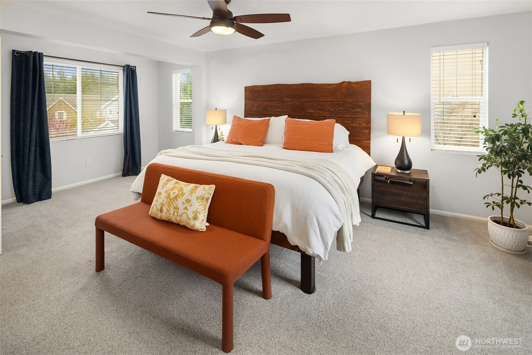 100K Price Improvement! First time on the market, this well-maintained Chaffey-built residence in the coveted Elm Tree community showcases true pride of ownership and timeless design. The thoughtful floor plan offers 4 bedrooms, a private office, and a spacious bonus room ideal for media, recreation, or additional living space. A convenient main-level bedroom with an adjacent bath provides an ideal setup for multigenerational living or guests. The grand entry with vaulted ceilings and expansive windows fills the home with natural light. The primary suite is a true retreat, featuring a spa-inspired bath and large walk-in closet. Designed with both function and entertaining in mind, the kitchen is equipped with newer appliances, a walk-in pantry, and a large island that opens to a 624 SF great room complete with a wet bar, billiards table, and space to gather. Step outside to a private backyard with a sport court ready for pickleball, basketball, and more, as well as mature garden beds surrounding a flagstone patio. Located in the highly sought-after Lake Washington School District and just minutes to Redmond Ridge shopping, dining, scenic trails, and major tech companies. Recent upgrades include a newer 50-year Presidential roof, A/C and furnace, windows, appliances, carpet in living & dining rooms, and upgraded bathrooms.