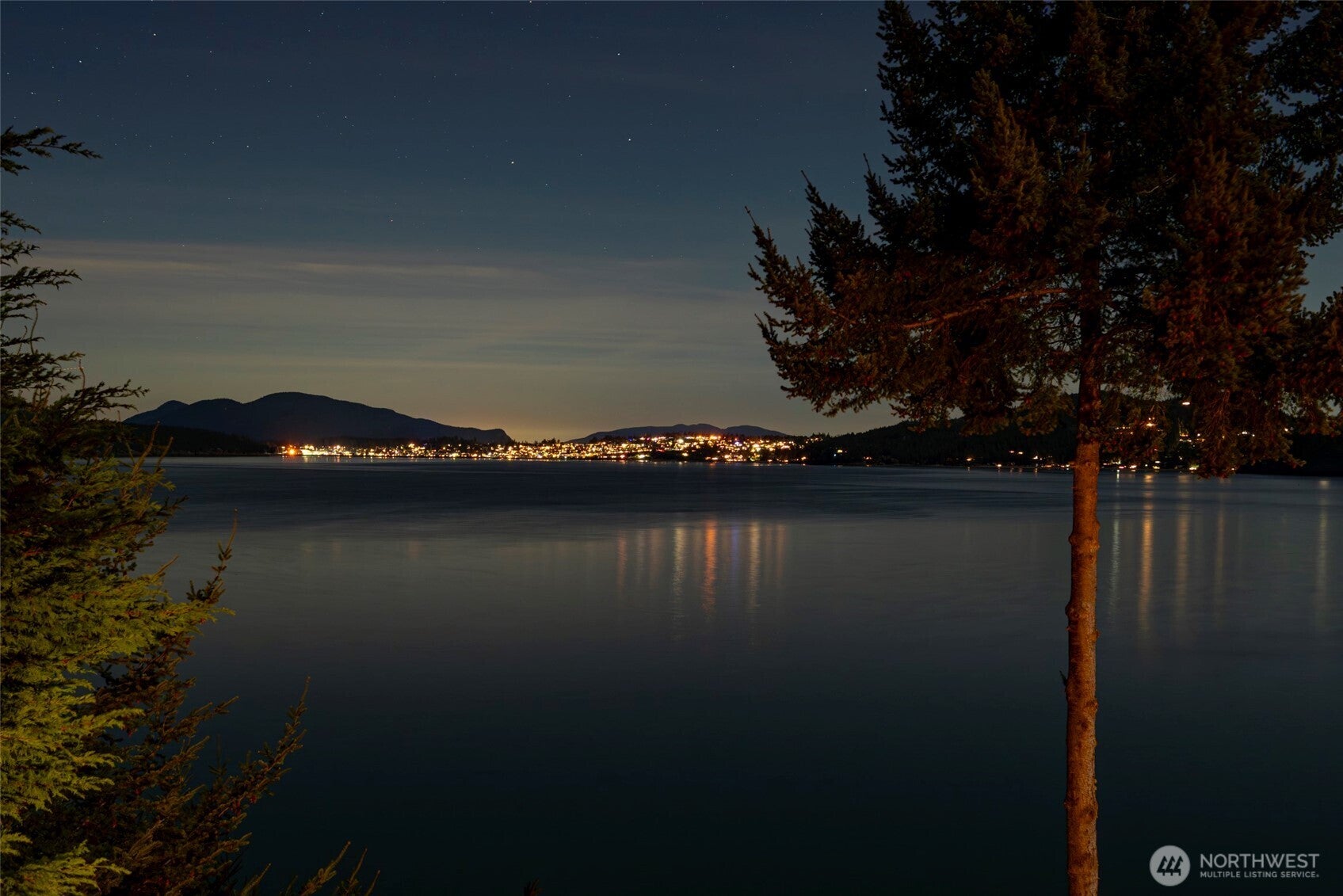 Set on over three private acres, this serene retreat captures sweeping views of the bay, mountains, sound, and strait. The main level welcomes you with a spacious living room anchored by a striking stone fireplace and sliding doors that open to an expansive view deck. The kitchen and dining area are designed to frame the water, featuring an island ideal for gathering and everyday living. The primary suite is a true sanctuary with its own brick fireplace, bay windows, walk-in closet, and spa-inspired ensuite with double vanity, soaking tub, and separate shower. Laundry on both levels adds everyday ease. The lower level offers a second living space that flows seamlessly to a secluded patio, perfect for relaxing or hosting guests. Outside, lush landscaping surrounds the home, while a substantial three-car garage with extra workspace provides room for storage, hobbies, or projects. This is privacy, comfort, and connectionthoughtfully woven into one exceptional property.