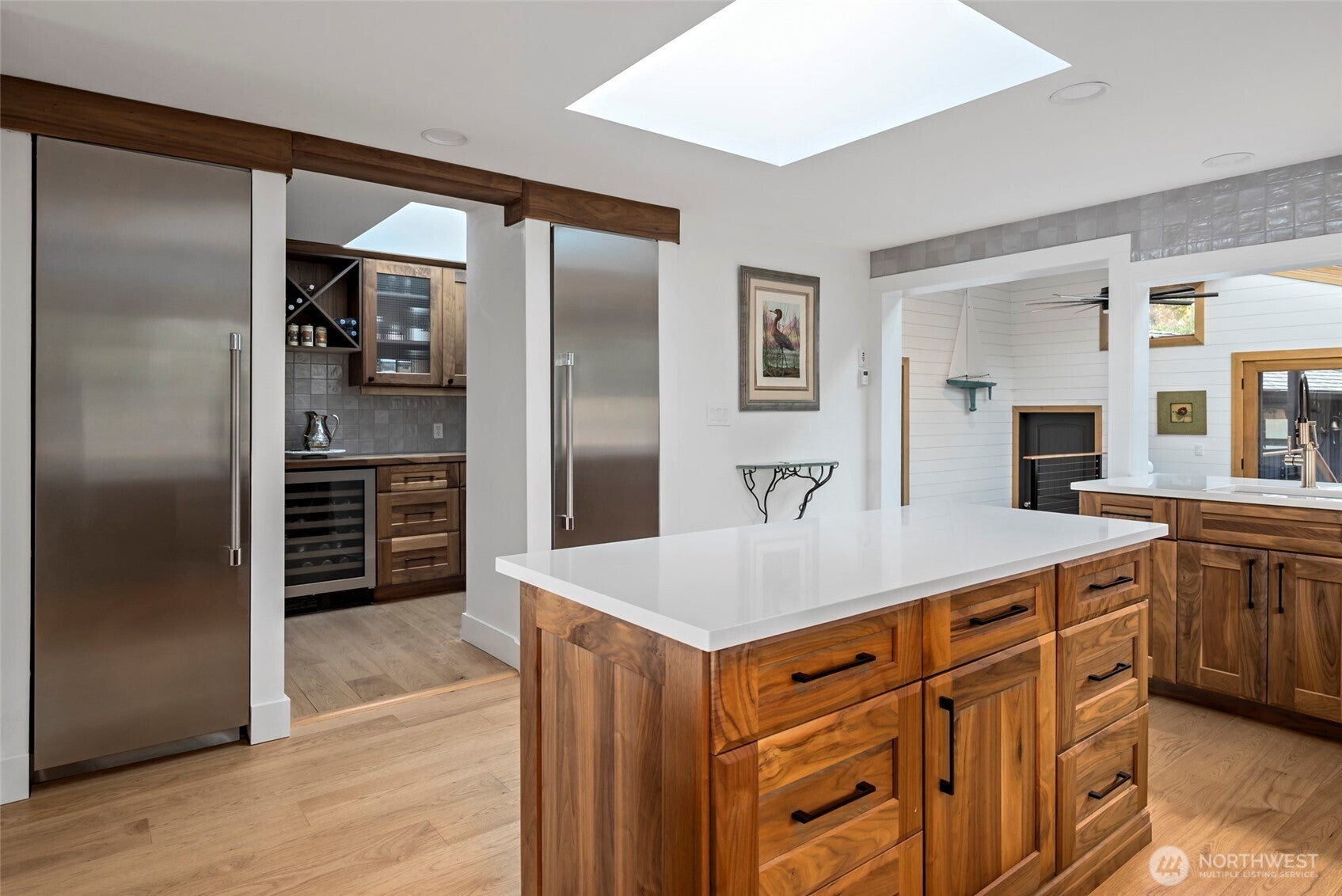 Secluded Custom Retreat on Guemes Island Your Private Wooded Sanctuary Discover this stunning 3-bedroom, 1.5-bath custom home nestled on 5.4 acres, just minutes from the ferry landing. Over 100,000 in thoughtful recent updates make this home move-in ready and energy-efficient, including a full kitchen remodel, primary bath renovation, new whole-house generator system, advanced water filtration system, new furnace and heat pump, plus an enclosed garden featuring raised beds and more. The heart of the home is the gourmet kitchen, boasting a premium Blue Star gas stove, generous island, and sleek granite countersperfect for the home chef who loves to entertain. Elegant Sucupira hardwood flooring flows through the common areas, while the primary bathroom impresses with luxurious custom marble flooring and spa-like finishes. An enclosed sunroom beautifully connects the primary bedroom and living room, seamlessly extending to an inviting deckideal for year-round relaxation and indoor-outdoor living. Practical features abound: an attached 2-car garage, plus a large detached garage with a spacious shop, RV/boat bay, and space for a 432 sq ft ADU (roughed-in and ready for your vision). Theres even an RV cleanup station for added convenience. Wander your own private trail that winds through the lush woods. This rare Guemes Island gem combines custom craftsmanship, modern upgrades, and abundant outdoor spaceperfect for those seeking seclusion without sacrificing convenience.