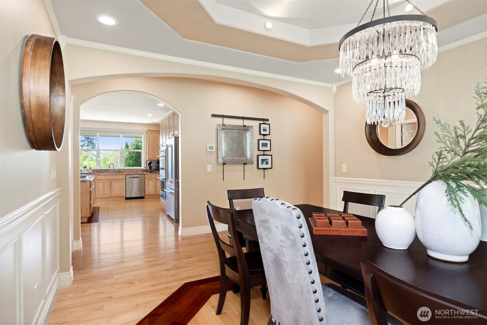 Discover your dream sanctuary in this exquisite 5-acre estate at the foot of the Cascade Mountains where you'll enjoy the peace, tranquility & breathtaking views of the Olympic Mountains. This beautifully crafted ranch home boasts over 2,700 square feet of living space adorned with rustic charm, featuring stunning fir floors & soaring vaulted ceilings.