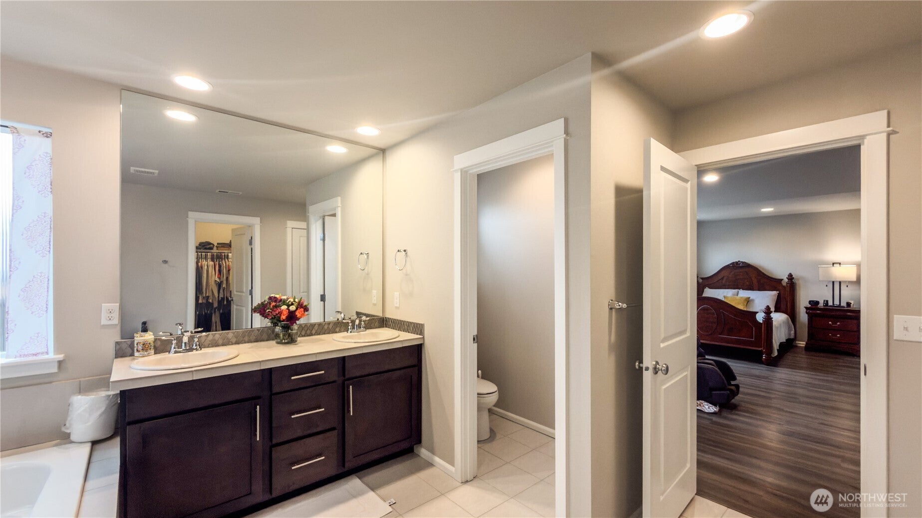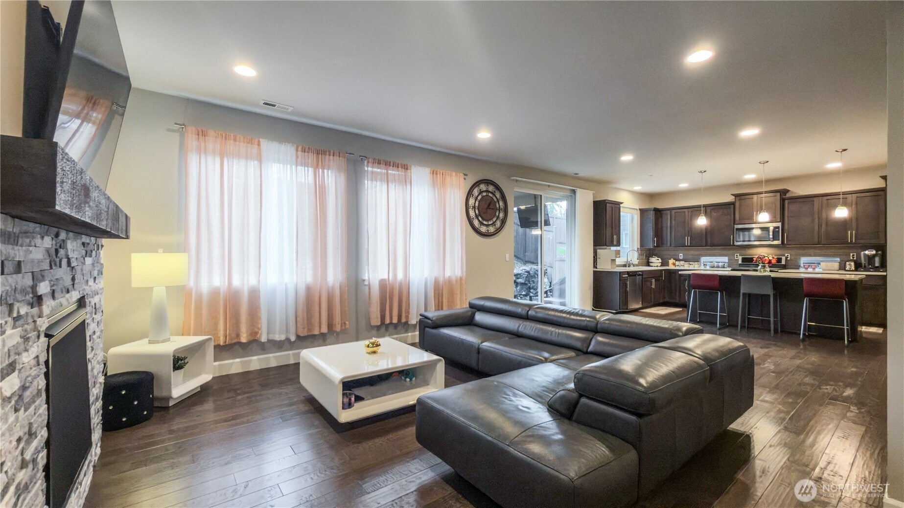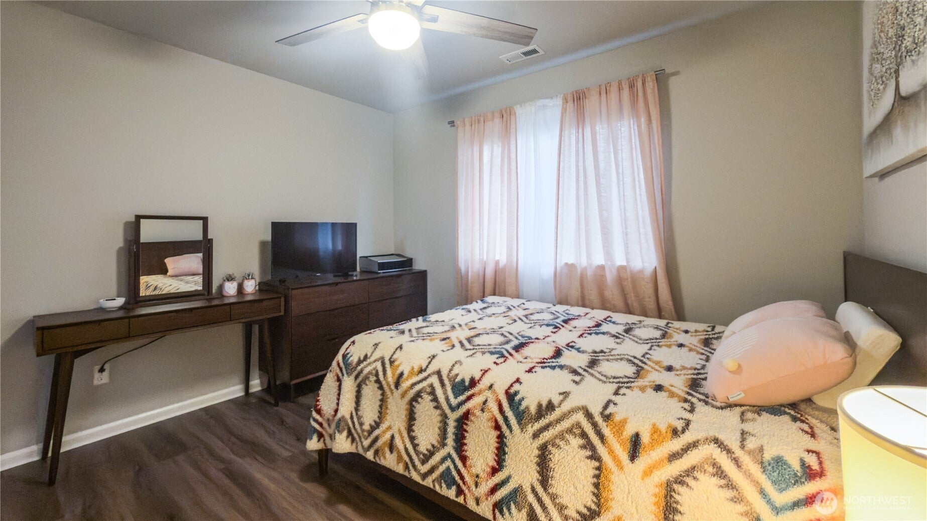 Well established 4 bedroom home in Rock Creek Estate. Main level bedroom with 3/4 bath. Open concept floor plan with spacious kitchen area and huge center island with quartz countertop. Seller installed central A/C, LVP on 2nd floor. Stone back yard with gravel on the sides. Wood ceiling fan in every room. There is a Walmart within 2 miles and Route 9 is connected above Walmart. There is a large shopping center and Costco within 4 miles and I-5 is also easily accessible. You can enjoy a direct view of the snow-capped mountain from both the first and second floors. In autumn you can enjoy the vibrant foliage and the snowy mountain simultaneously.