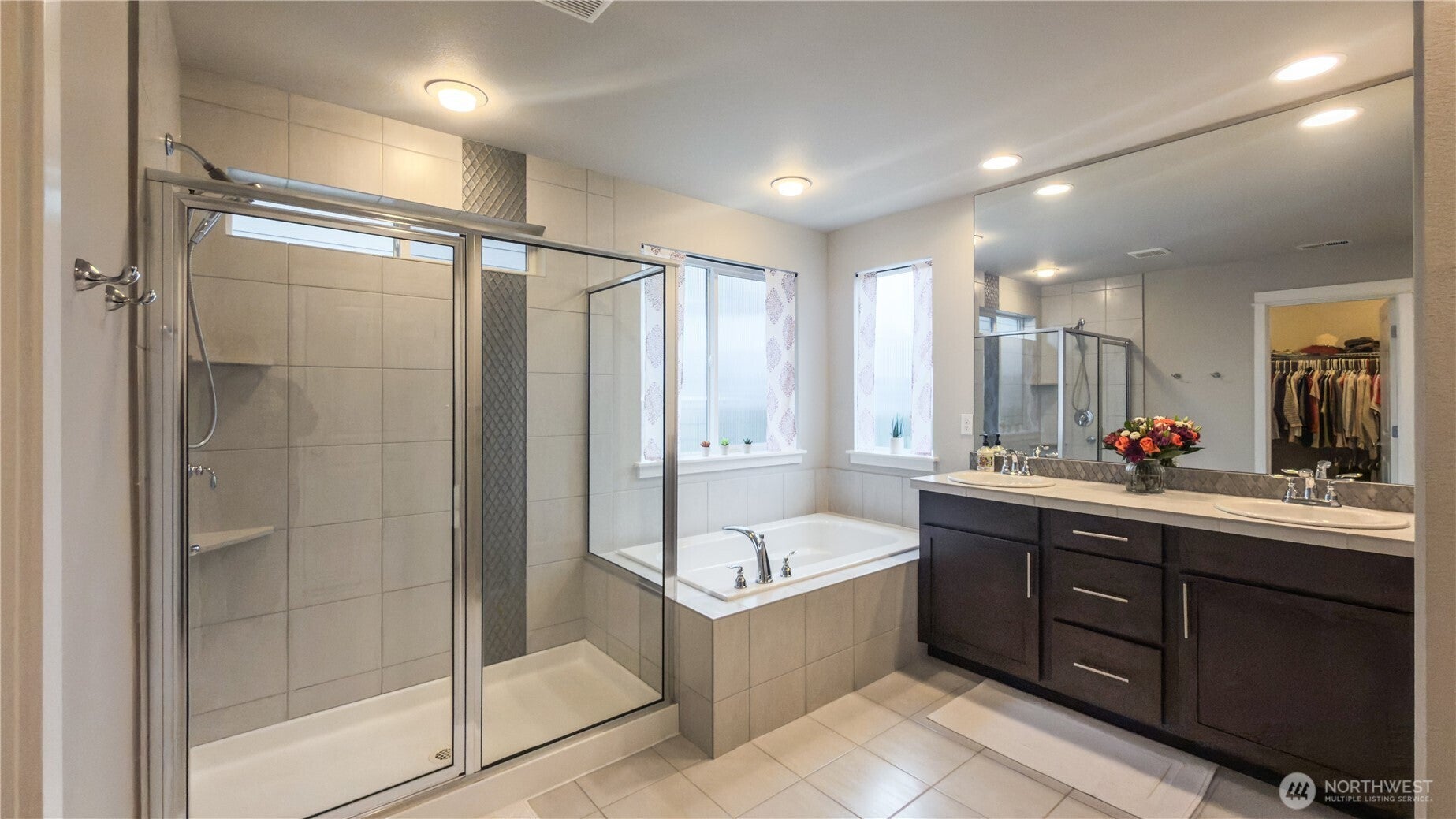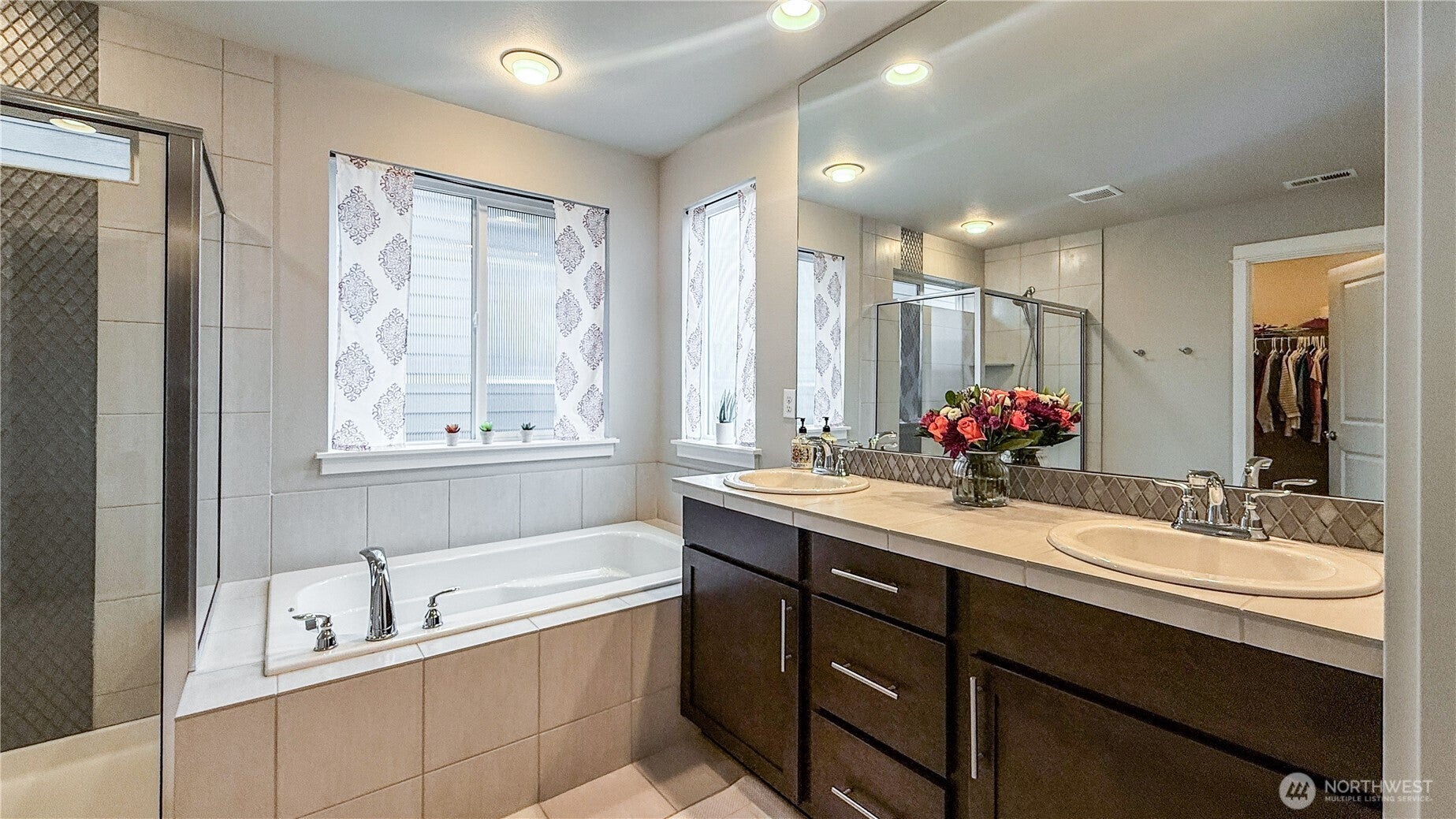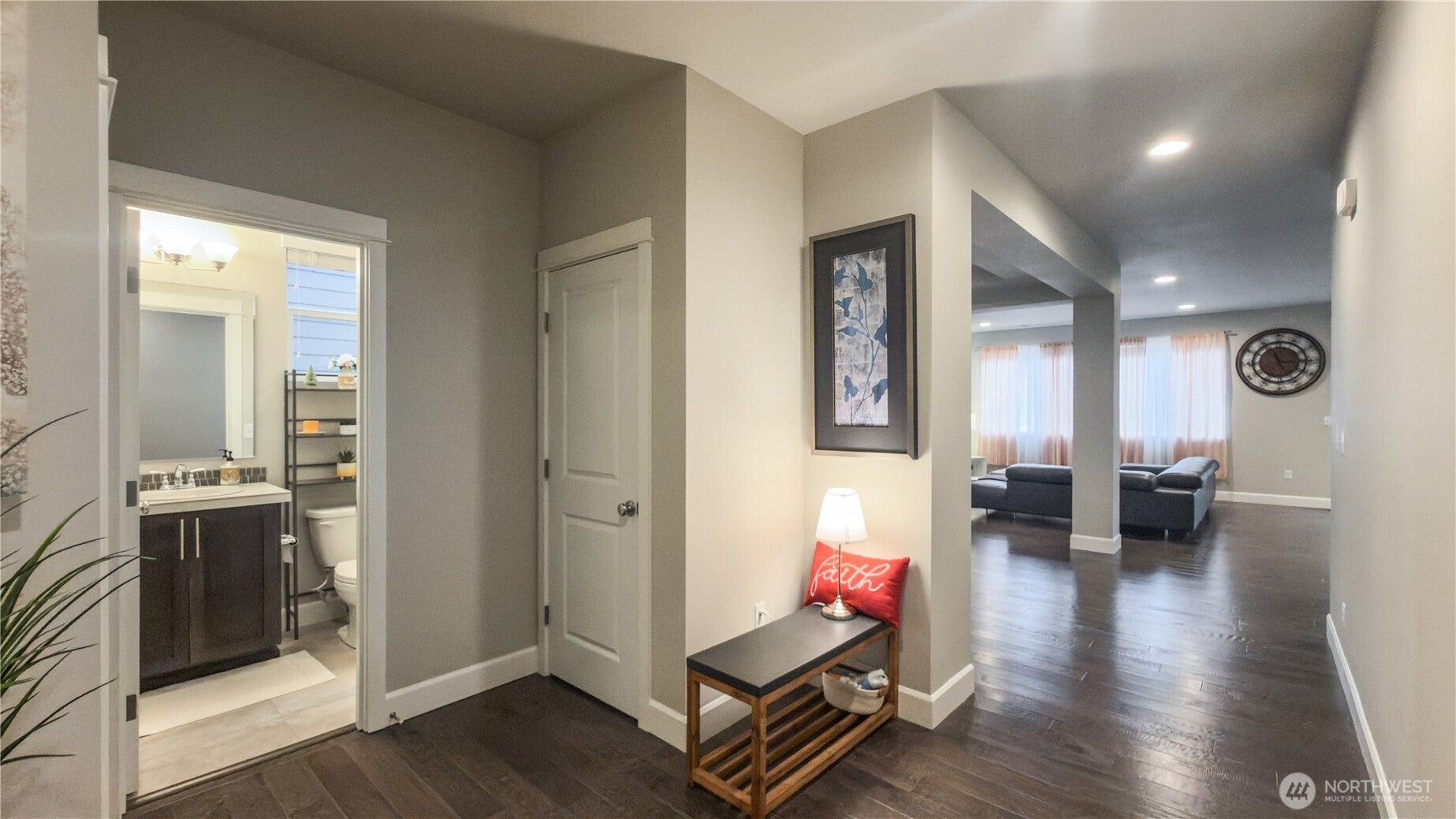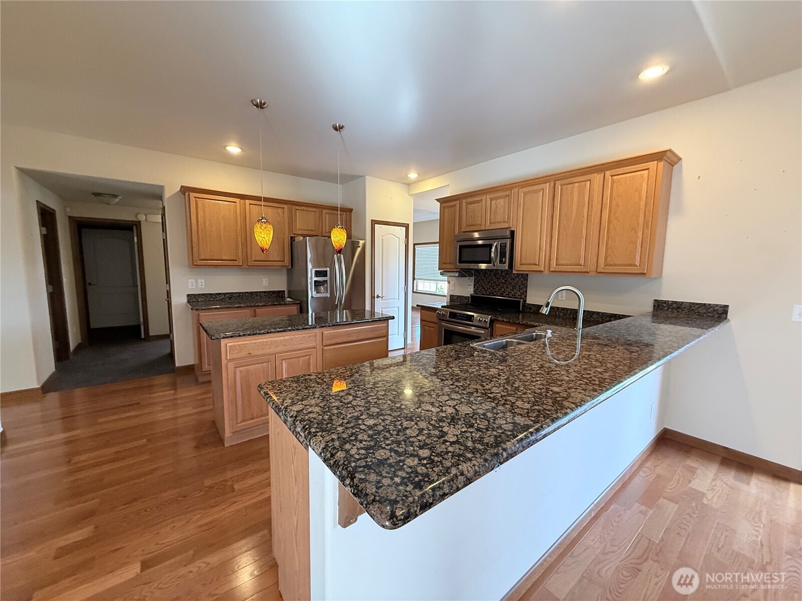 Well established 4 bedroom home in Rock Creek Estate. Main level bedroom with 3/4 bath. Open concept floor plan with spacious kitchen area and huge center island with quartz countertop. Seller installed central A/C, LVP on 2nd floor. Stone back yard with gravel on the sides. Wood ceiling fan in every room. There is a Walmart within 2 miles and Route 9 is connected above Walmart. There is a large shopping center and Costco within 4 miles and I-5 is also easily accessible. You can enjoy a direct view of the snow-capped mountain from both the first and second floors. In autumn you can enjoy the vibrant foliage and the snowy mountain simultaneously.