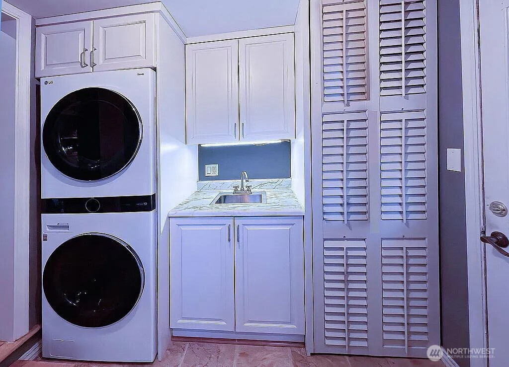 Gorgeous Paradise Setting with 180 Degree Water, Mountain and Glorious Sunset Views Extending from Snow Covered Olympic Mountains to the Canadian Coastal Range of BC. This home features 3 bedrooms, 2 large offices, and 2 full kitchens. The main level offers level entry with water views, a remodeled kitchen with many cabinets, Silestone counters, lower pullout drawers, and walk-in pantry.