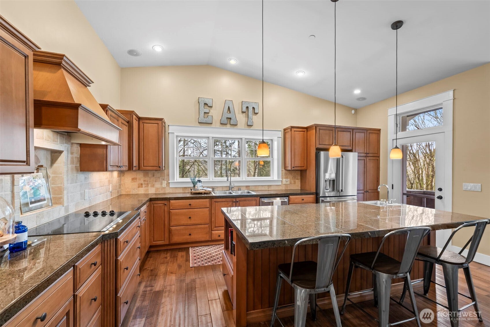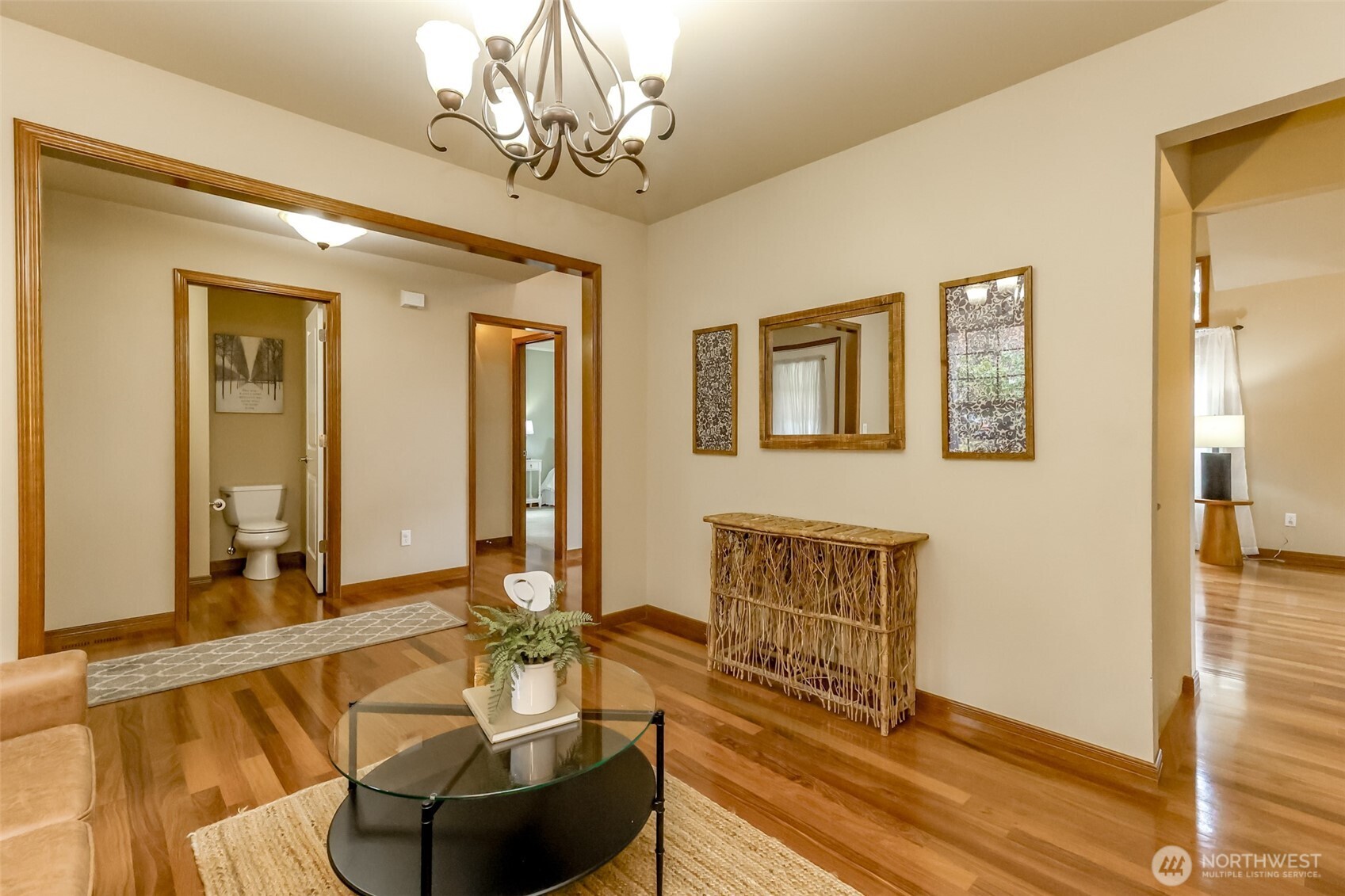 Stunning McCormick Woods 4000 square foot lakefront home. Enjoy 5 full bedrooms and 3.5 baths in this custom construction home with so many possibilities. This 3-level home offers so many features including an additional office, separate entrance off the lower level that could be an MIL unit, ADU, in-law suite, or guest home. Also, you could live on the main level and rent out the lower unit as an Air BNB. So much potential! On the main level enjoy a beautiful chef's kitchen with maple cabinets, formal dining room, and Brazilian teak hardwood flooring throughout. Large deck off of dining room for enjoying meals outside in the summer months. Large primary suite on main level with ornate ceilings and large bath and walk in closet. Upstairs includes two additional bedrooms and a large bonus room that has endless possibilities. Beautifully landscaped back yard with patio for entertaining or just enjoying the serene lake view. Enjoy a large .44-acre lot with 2 car garage and lots of parking spaces on the driveway. Beautiful stone siding accents make this home beautiful as you walk up. And that's just the house. The McCormick Woods community features the Golf Club that is one of the premiere golf courses in the state. There are many parks, trails, and pickleball courts to enjoy in this fine community nestled in Port Orchard with close proximity to both Gig Harbor and all that the Hood Canal and beautiful Northwest Peninsula offer. Welcome home!