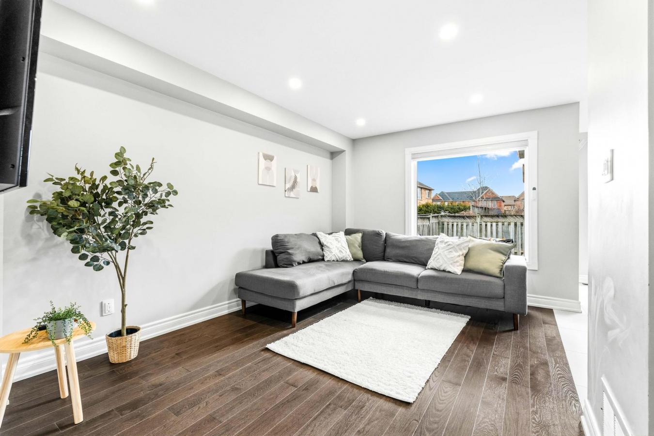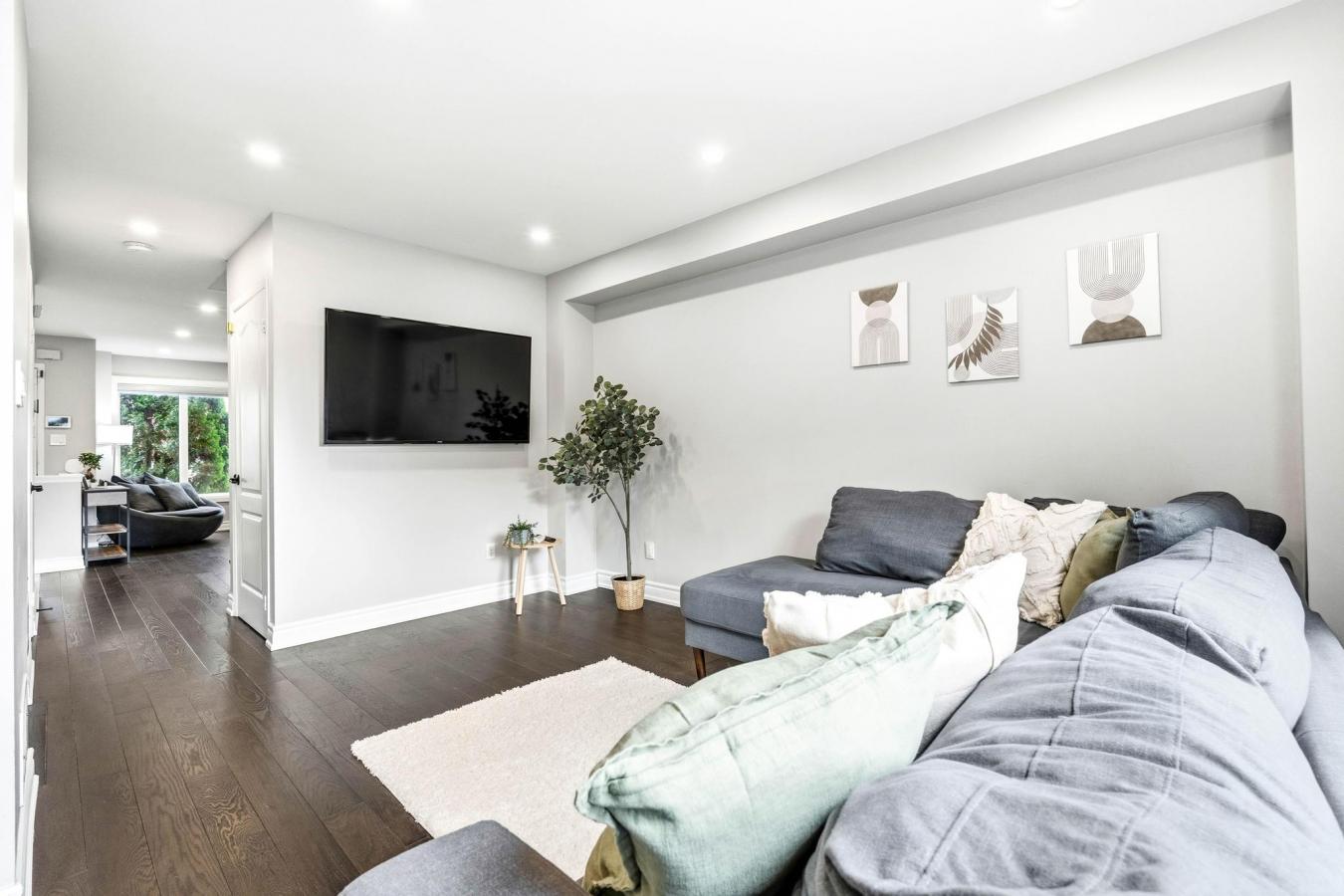 This spectacular 3-bedroom, 3-bathroom townhouse offers a spacious, open-concept living space with bright, clean interiors. Perfect for family living, it features hardwood flooring in the hallway, living, and dining rooms, while the kitchen boast ceramic flooring. The family-sized eat-in kitchen opens up to an extended backyard patio, ideal for outdoor entertaining.