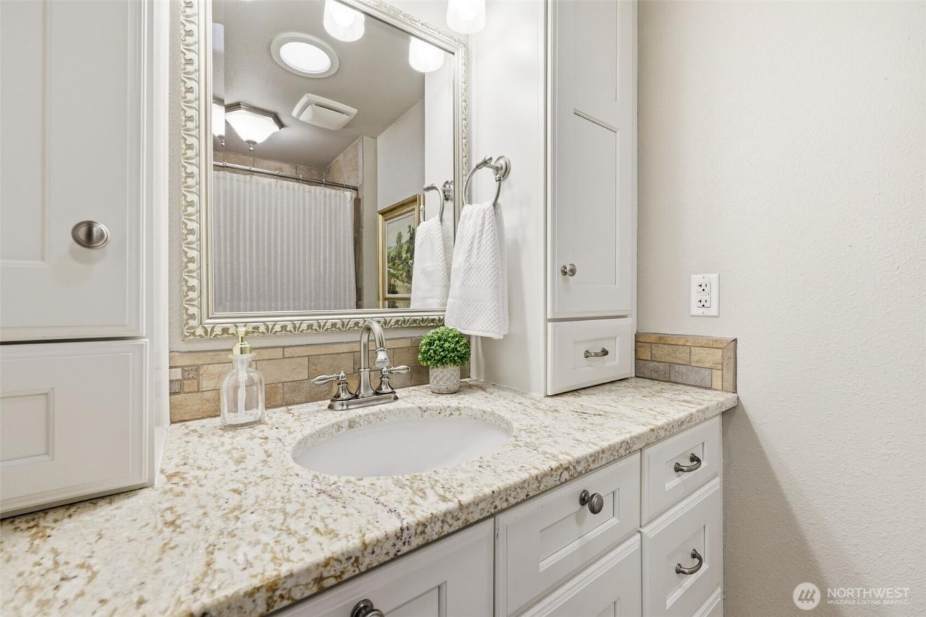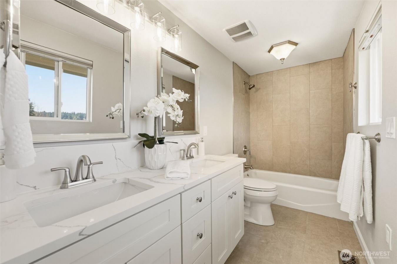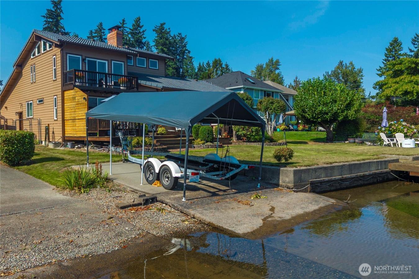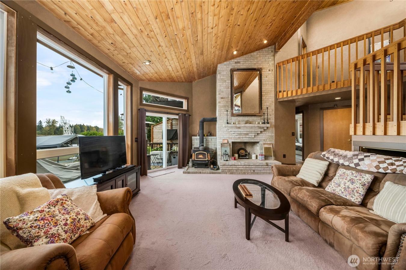Experience refined waterfront living in this fully reimagined Lake Tapps retreat, where high-end design meets effortless indoor-outdoor living. Thoughtfully remodeled throughout, this 3-bedroom, 2.25-bath home showcases exceptional craftsmanship and a layout designed for both everyday comfort and elevated entertaining. The chefs kitchen is a true centerpiece, featuring quartz and granite countertops, an abundance of prep space, and an oversized bar that comfortably seats 6-8, perfect for gathering. KitchenAid and DSC appliances elevate your kitchen prep sink. Formal living and dining spaces offer timeless appeal with a gas fireplace, while the expansive rec room with its own fireplace and game area creates an ideal setting for hosting. Seamless access to covered decks from both levels invites year-round enjoyment, overlooking a professionally manicured lawn and exceptional waterfront setting. The outdoor experience is unmatched, complete with a gazebo featuring a built-in bar, a hot tub, and a concrete dock with a private boat slip designed for unforgettable lake days. The oversized primary suite offers a true retreat with sweeping lake views, a spa-inspired bath, & an oversized walk-in closet. Located in the desirable Jenks Point community with convenient access for commuting, this is a rare opportunity to own a turnkey waterfront home where every detail has been thoughtfully elevated. Sumner-Bonney Lake School District. Access to Jenks Point Park & amenities.