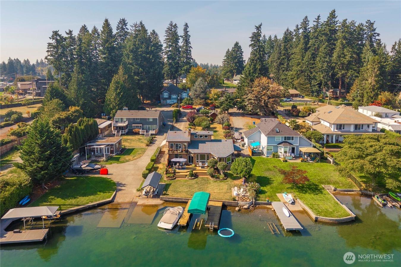 Rarely does an opportunity like this present itself on coveted Lake Tapps. Situated on two tax parcels within the desirable Lakeridge community, this exceptional waterfront homestead offers a rare combination of privacy, protected swimming waters, and expansive lake views. Spanning a combined .61 acres with 120 feet of level, low-bank frontage, the setting is truly unmatched.