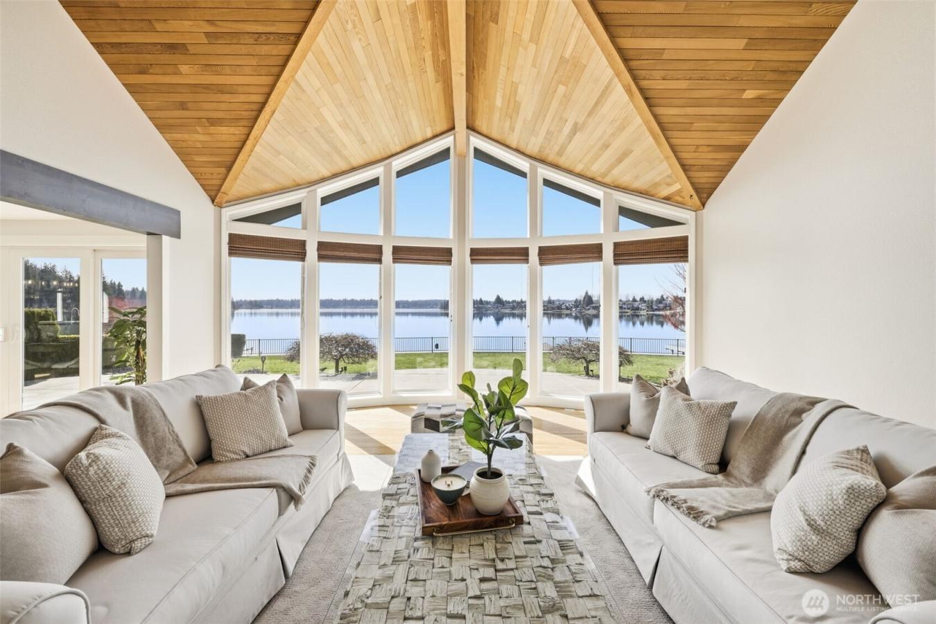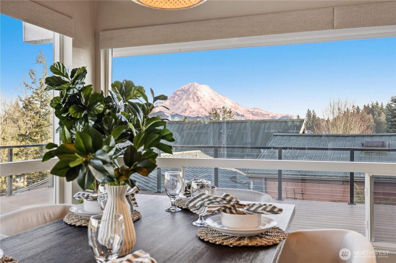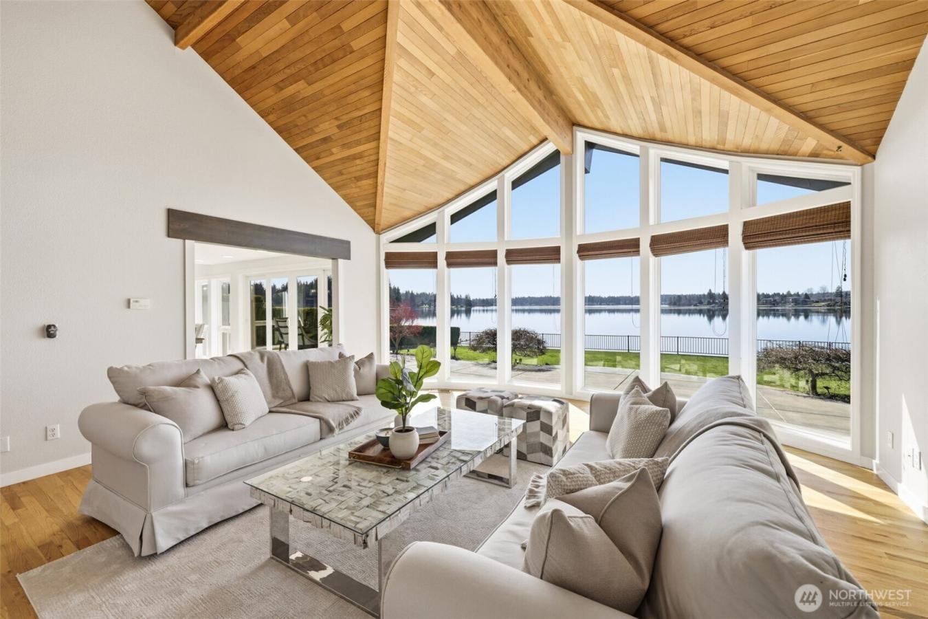 Exceptional Tapps Island waterfront home situated on a rare no-bank lot with 87 feet of pristine Lake Tapps frontage, offering sweeping open-water views and a stunning backdrop of Mt. Rainier. Designed to capture the beauty of the lake, this home offers over 3,064 square feet of living space with dramatic floor-to-ceiling windows showcasing breathtaking lake views throughout.
