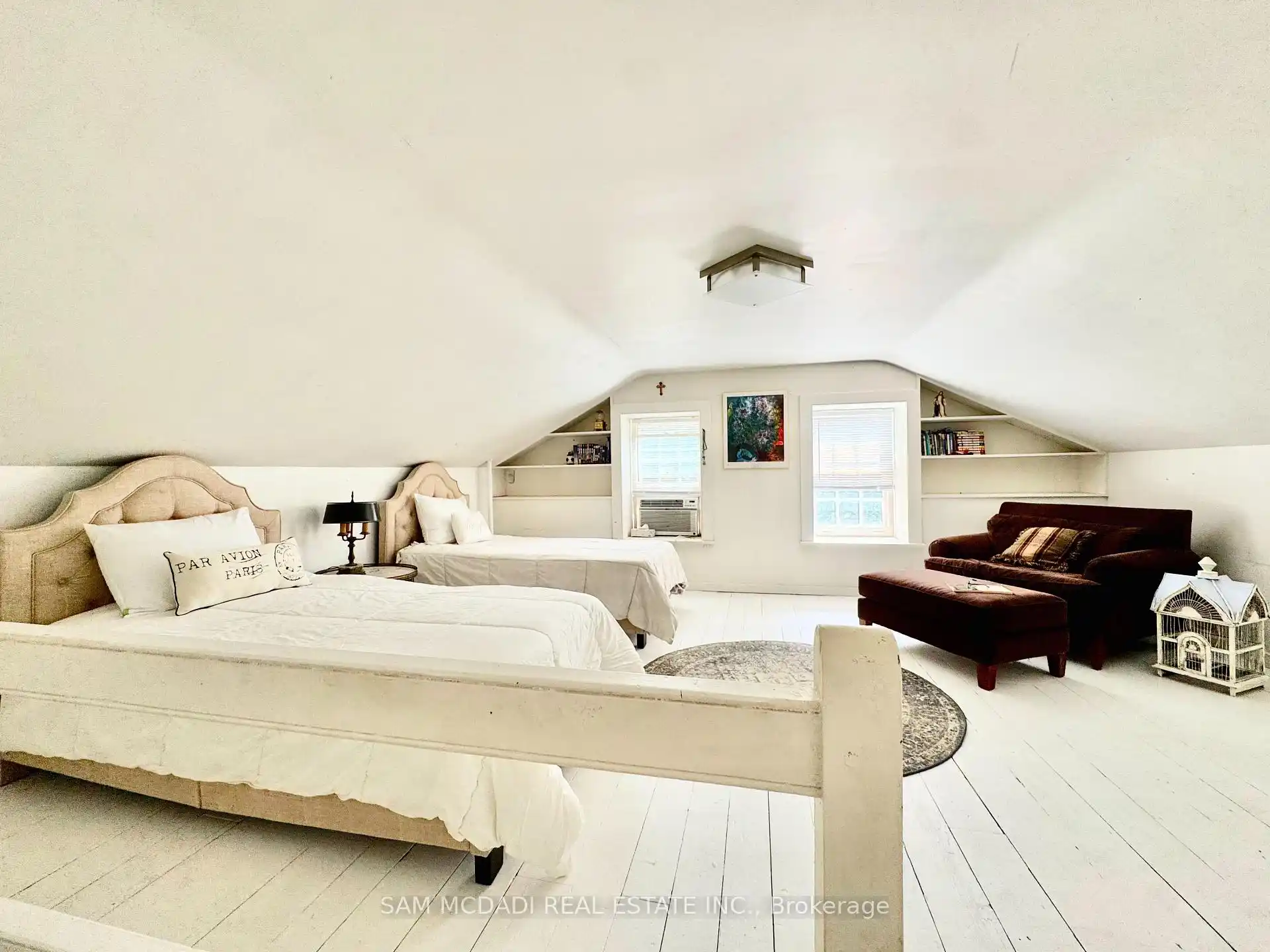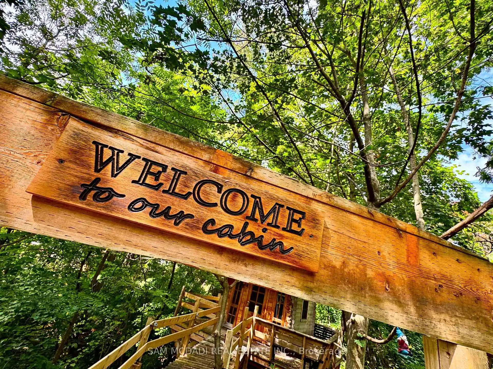 Welcome to 85 Yorkleigh Avenue, a rare offering set on an extraordinary 1.15-acre lot backing onto the Humber Creek ravine. Surrounded by mature trees and complete privacy, this property offers a lifestyle seldom found within the city. The home's stone façade, manicured gardens, and inviting front porch create a setting that feels elegant, character-rich and grounded in nature. Inside, the home unfolds with distinctive timeless charm. The eat-in kitchen is a statement space, featuring exposed wood beams, a wood-burning fireplace, classic checkered flooring, and a seamless walkout to the grounds. The dining room is designed for intimate entertaining, complete with its own fireplace and custom built-ins, while the living room showcases a striking stone hearth and direct access to the sunroom. Wrapped in glass, the sunroom offers a tranquil, light-filled escape, perfect for year-round enjoyment with serene views of the surrounding ravine canopy. The main level features two bedrooms, including a peaceful primary retreat with double closets, alongside a well-appointed 3-piece bath. A vaulted loft above provides a versatile space ideal for guests, a studio, or a private hideaway. The walk-out lower level expands the home's functionality with a third bedroom, an office, 3-piece bath, laundry, and terra cotta stone flooring throughout, well-suited for extended family or flexible living arrangements. Outdoors, the grounds are no thing short of exceptional. Multiple seating areas, curated gardens, and natural pathways lead you through a private, tree-lined setting. Tucked within the ravine, a charming elevated treehouse offers a storybook 1 bedroom with a 3-piece bath retreat, a rare and whimsical feature that captures the essence of this unique property. Ideally positioned near Douglas B. Ford Park and the scenic Humber River Recreational Trail, with convenient access to reputable schools, shopping centres and easy access to Highway 401 and 427.