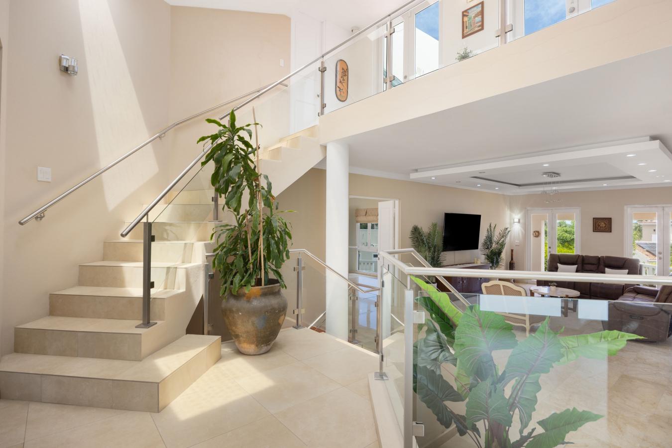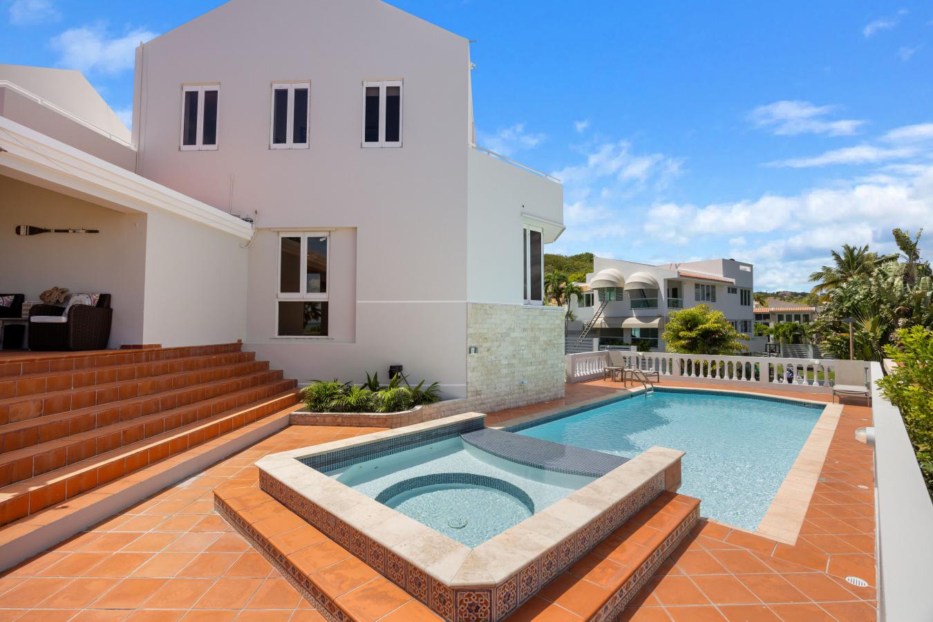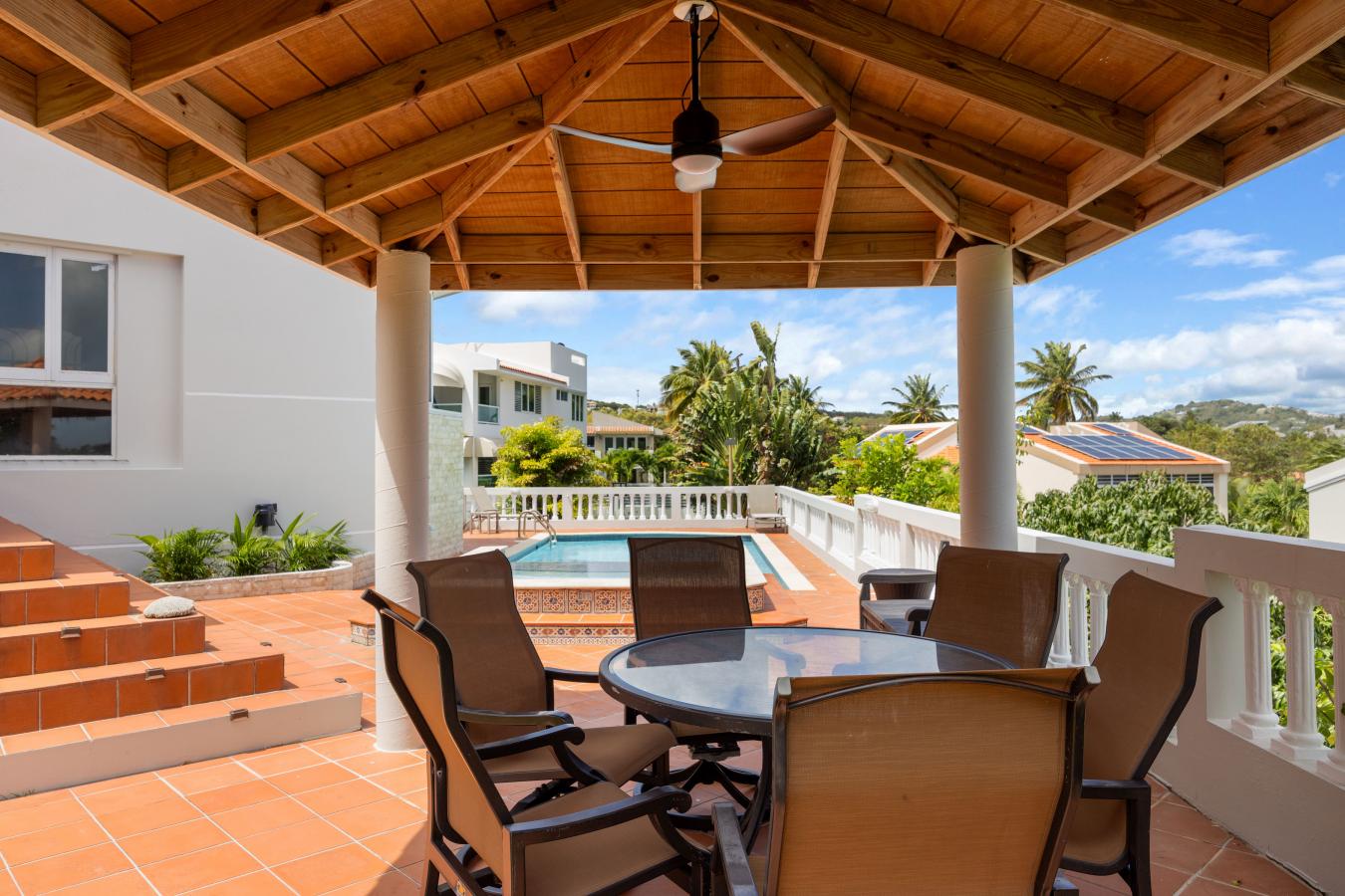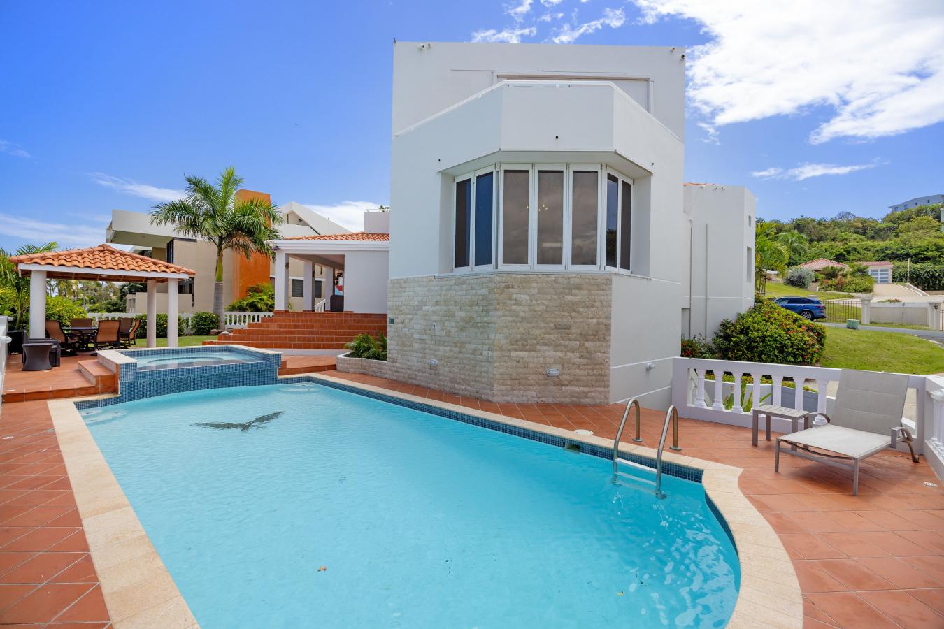 53 Shell Castle , Hillside Oceanview Residence -- Palmas del Mar Perfectly positioned on the scenic hillside of Palmas del Mar, 53 Shell Castle offers an exceptional blend of refined design, thoughtful layout, and sweeping ocean views. This Mediterranean Contemporary residence, completely renovated in 2018, embodies tropical elegance with an emphasis on light, openness, and seamless indoor--outdoor living. Spanning three levels and approximately 4,674 interior square feet, the home features 6 bedrooms, 6 full bathrooms, and 2 half bathrooms, providing ample space for comfortable living and entertaining. The interior is highlighted by double-height ceilings, abundant natural light, and striking architectural details, including a glass wall with eastern exposure at the foyer that frames the ocean beyond. The open-concept main level offers a harmonious flow between the living room, family room, and dining area, complemented by a wet bar ideal for hosting. The chef-grade kitchen is thoughtfully designed with an ocean-facing center island, double built-in ovens, and a 5-burner gas cooktop, making it the heart of the home for gatherings and everyday living. The lower level includes a media room and an adjacent guest bedroom and bath, creating a comfortable retreat for guests or extended stays. Throughout the home, multiple walk-in closets, balconies, and a spacious laundry room enhance functionality and comfort. Outdoors, the property truly shines with an expansive entertainment area featuring a pool and spa, a covered wet bar with BBQ, and a convenient half bath--perfect for enjoying the Caribbean climate year-round. Additional features include golf cart parking, full power generator, and hurricane-resistant windows, providing peace of mind and practicality. Located within the well-established Palmas del Mar community, residents enjoy access to championship golf courses, tennis and pickleball courts, an equestrian center, a Pre-K through 12th grade school, marina, restaurants, shopping venues, and miles of beachfront. Just 40 minutes from San Juan, this home offers resort-style living with convenient access to the metropolitan area. Annual HOA Fee: 1,300 53 Shell Castle presents a rare opportunity to enjoy a truly elevated Caribbean lifestyle in one of Puerto Ricos most desirable resort communities.