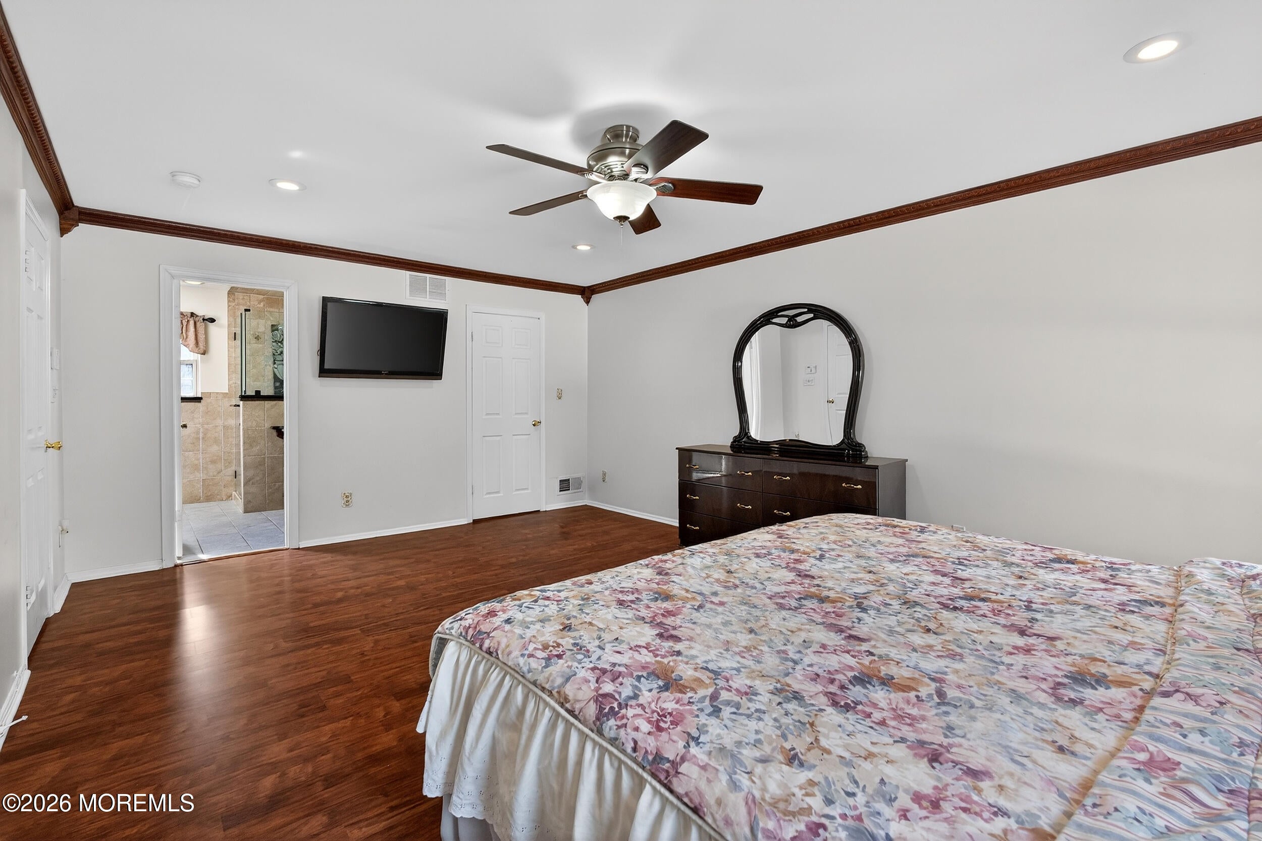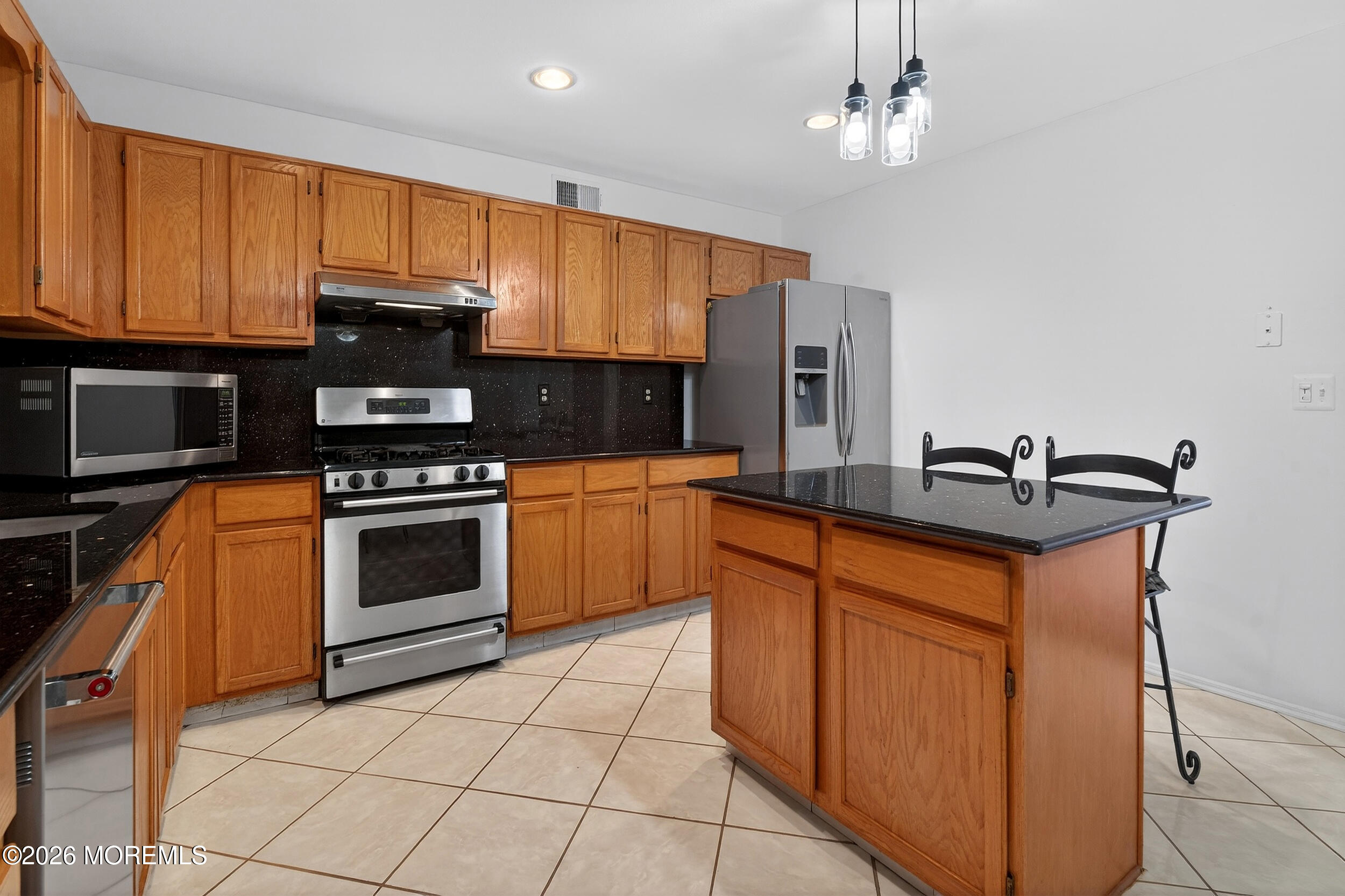 Rare opportunity in Old Bridge! Beautifully renovated 4-sided brick ranch on an oversized 100x300 lot. This home features an open floor plan, hardwood floors, a stunning center island kitchen with granite countertops and commercial-grade vent hood, 3 updated bathrooms, and a full-wall brick wood-burning fireplace. The expansive finished basement offers a huge great room and flexible bonus space for entertaining, recreation, or extended living. Major updates include a Timberline roof, windows, multi-zone heat and central air, whole house generator, sprinkler system, recessed lighting, decorator molding, oversized garage, covered carport, and 2-car-wide concrete driveway. Sliders lead to a large covered patio and deep backyard. Convenient to shopping and NYC transportation, this is a rare find!