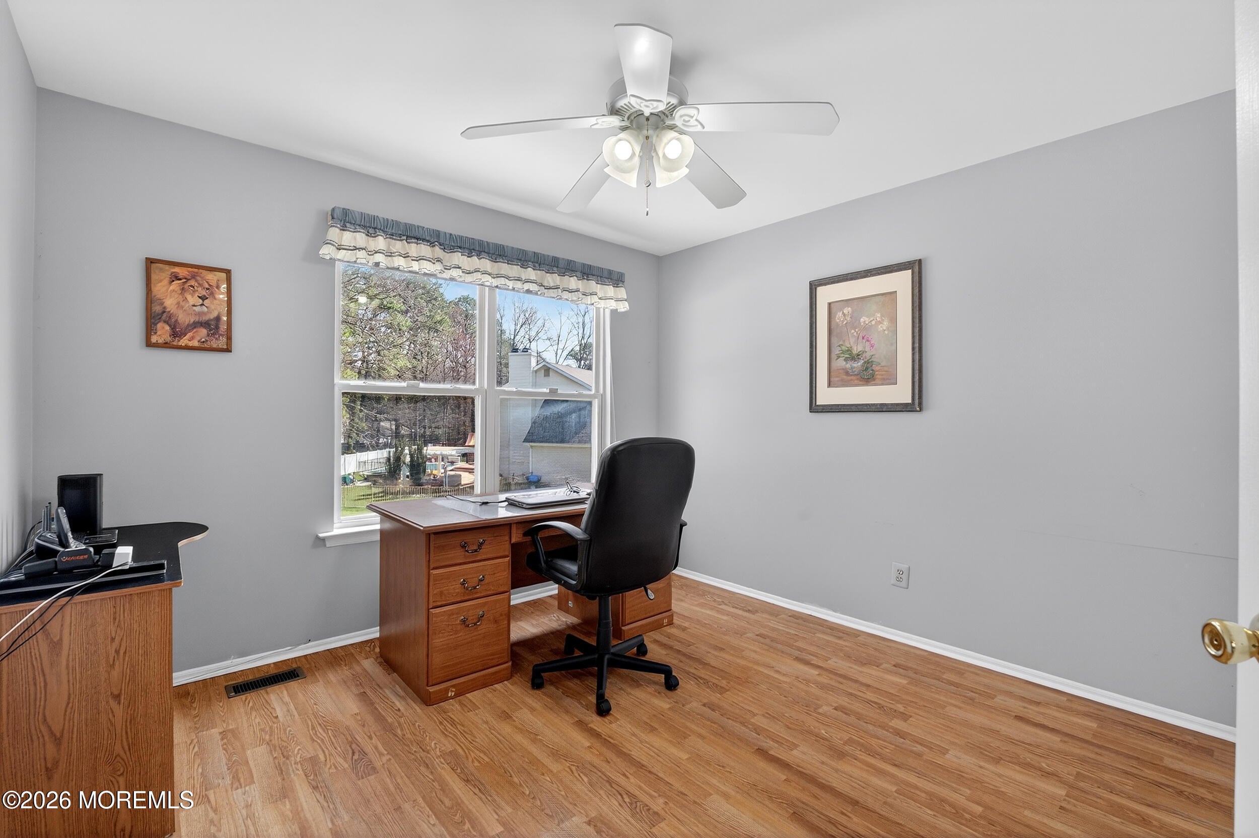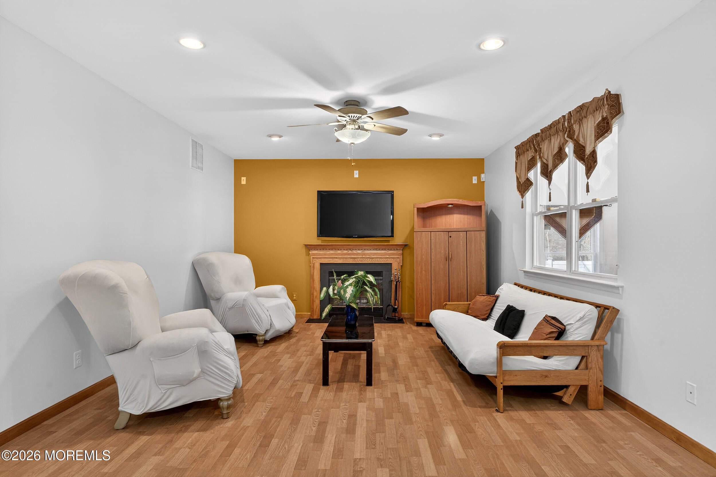 Spotless and move-in ready, this beautifully maintained home welcomes you with a spacious foyer and large closet, opening to an oversized living room with fireplace and a separate formal dining room. Newly refinished hardwood floors and fresh paint throughout create a clean, updated feel from the moment you enter.
